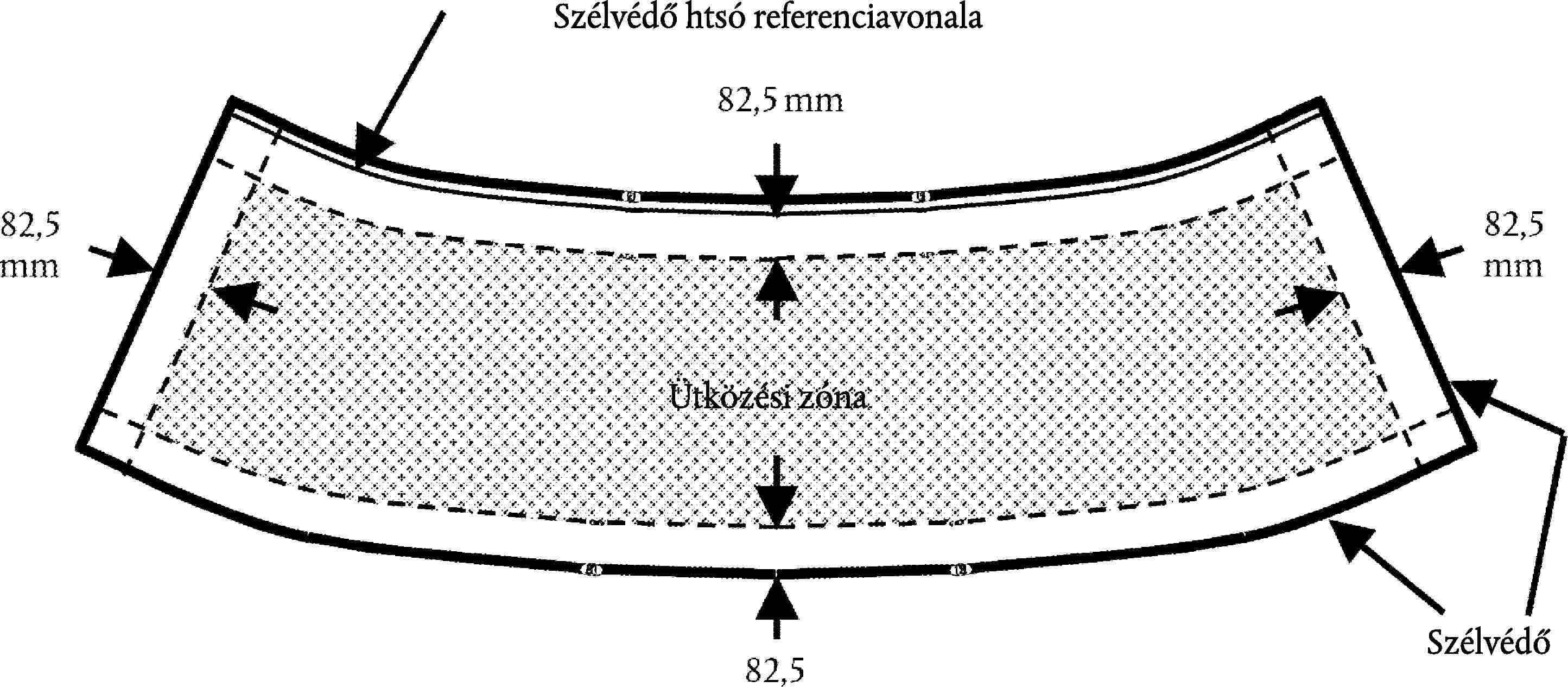 2.11.1. "Szélvédő hátsó referenciavonala": egy gömb és a 2.11. pontban meghatározott szélvédő közötti érintkezési pontok mértani vonala, amikor a 165 mm átmérőjű gömböt keresztirányban végigvezetik a szélvédő felső keretén, beleértve az esetleges díszítőelemet, miközben az végig érintkezik a szélvédővel (lásd a 10. ábrát).