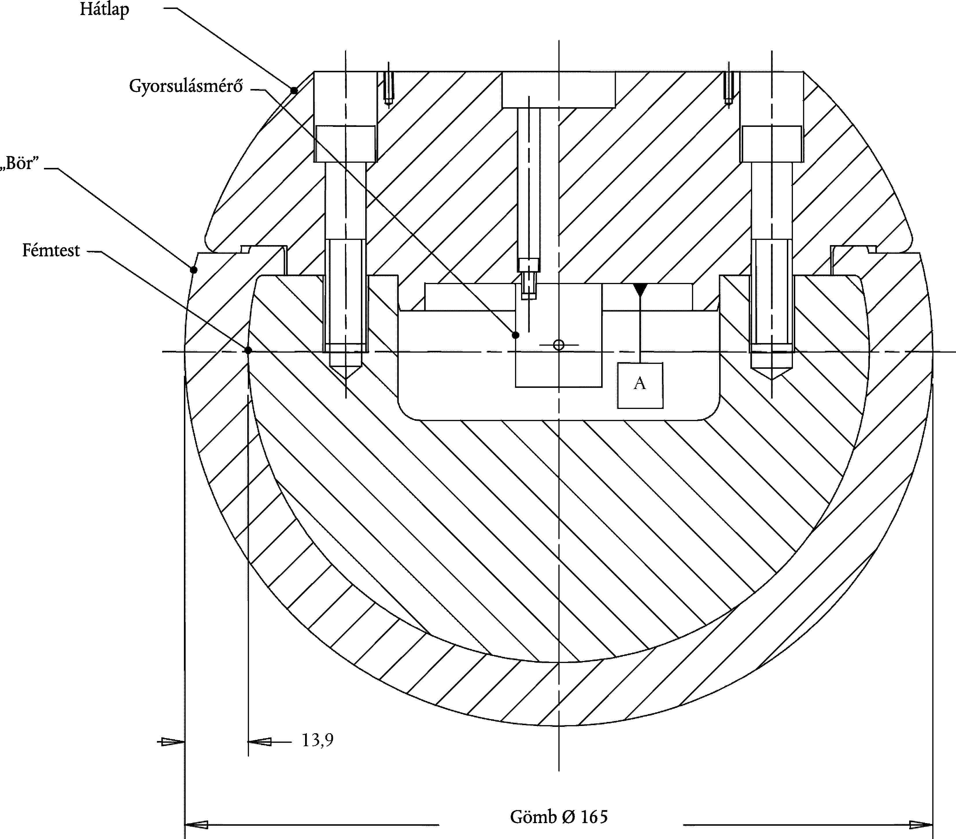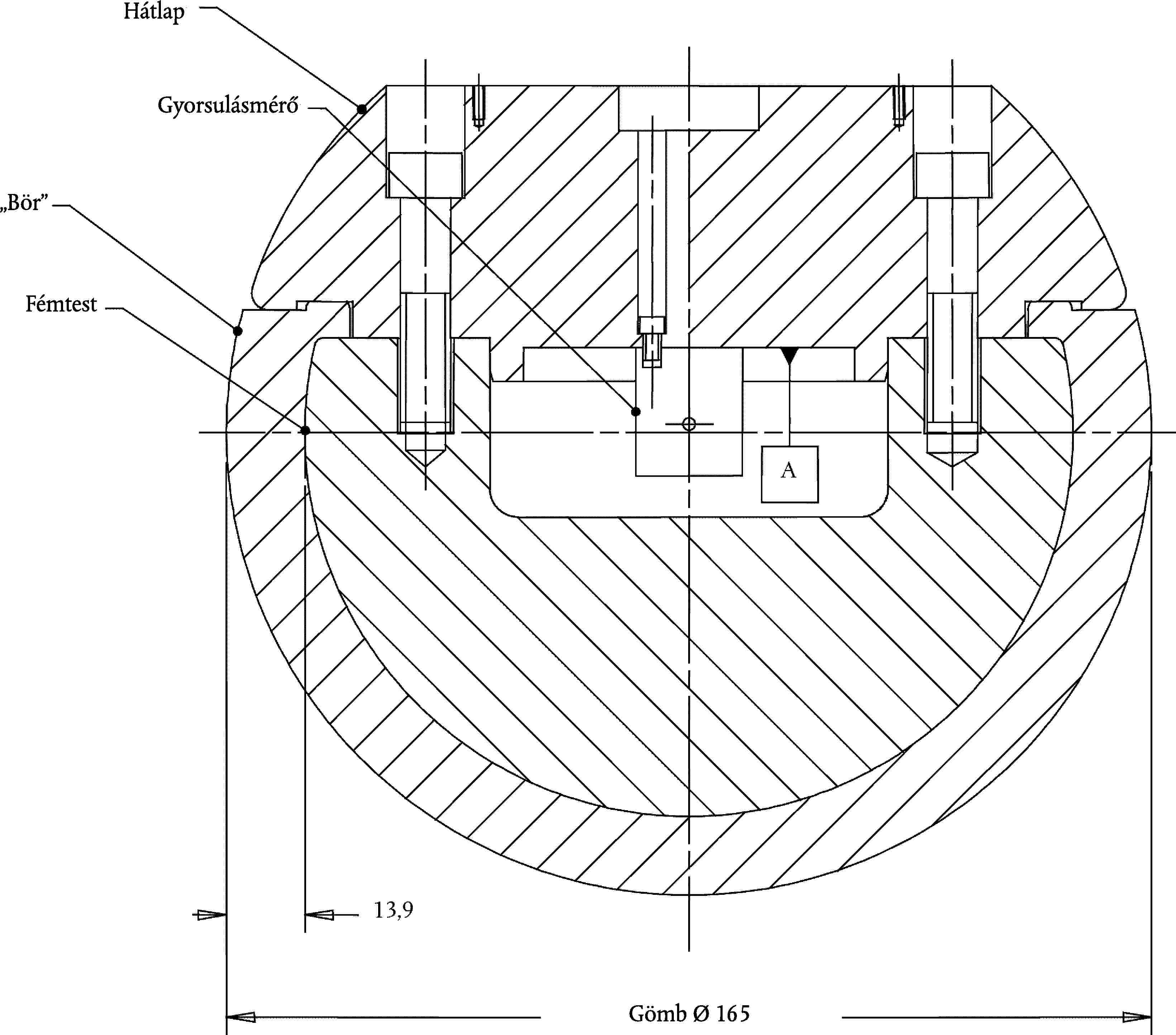 4.1.4. A gömbben egy bemélyítés teszi lehetővé egy háromtengelyű vagy három egytengelyű gyorsulásmérő felszerelését. A gyorsulásmérőket a 4.1.4.1., illetve 4.1.4.2. pontnak megfelelően kell elhelyezni.