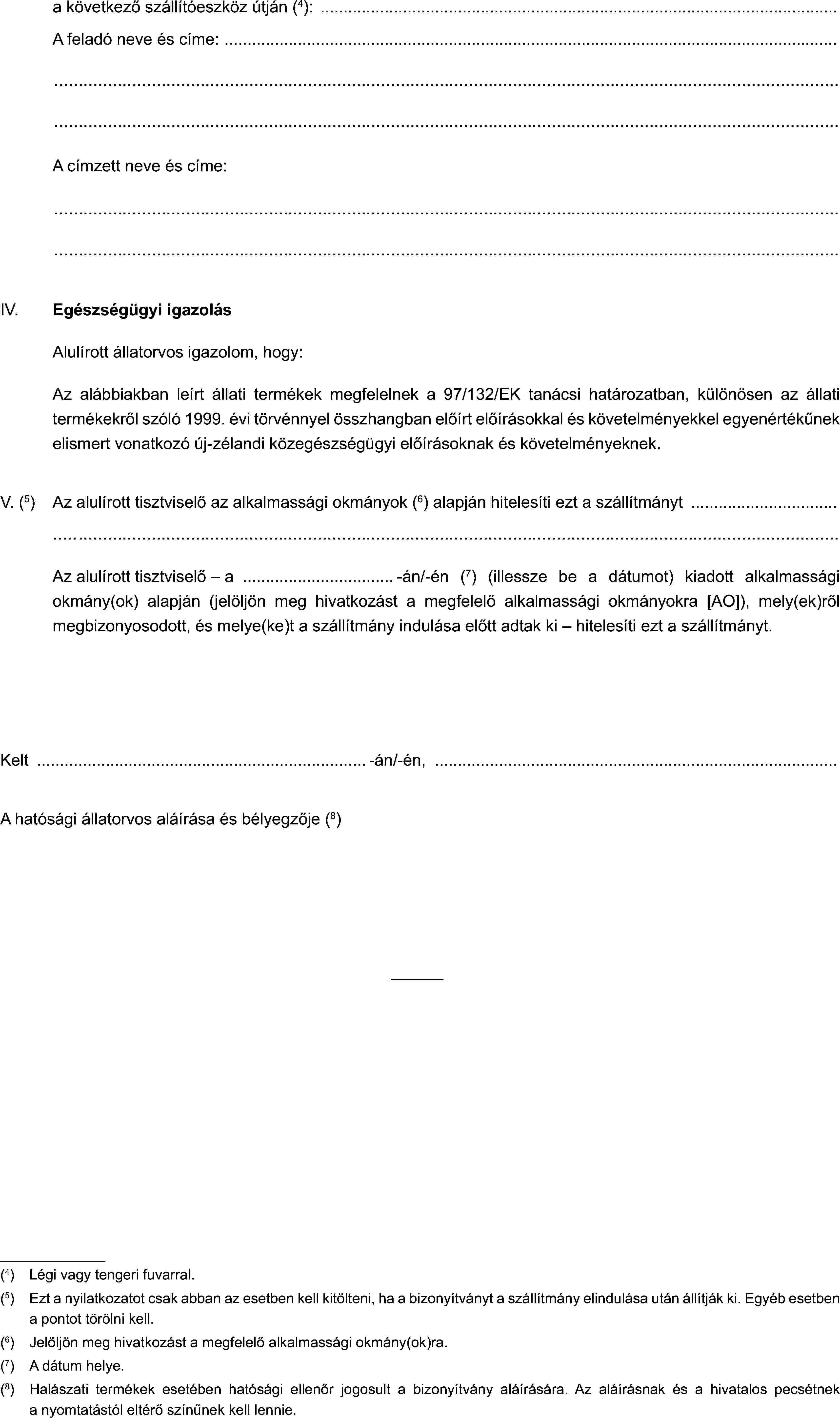 (3) Az (1) bekezdés rendelkezéseitől eltéréssel a II-V. melléklettel összhangban kiállított hivatalos egészségügyi bizonyítványokat a szállítmány Új-Zélandról való elindítása után is ki lehet állítani, feltéve hogy: