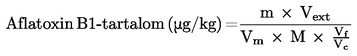 Számítsuk a mintában lévő aflatoxin B1-tartalmat (μg/kg) az alábbi képlettel: