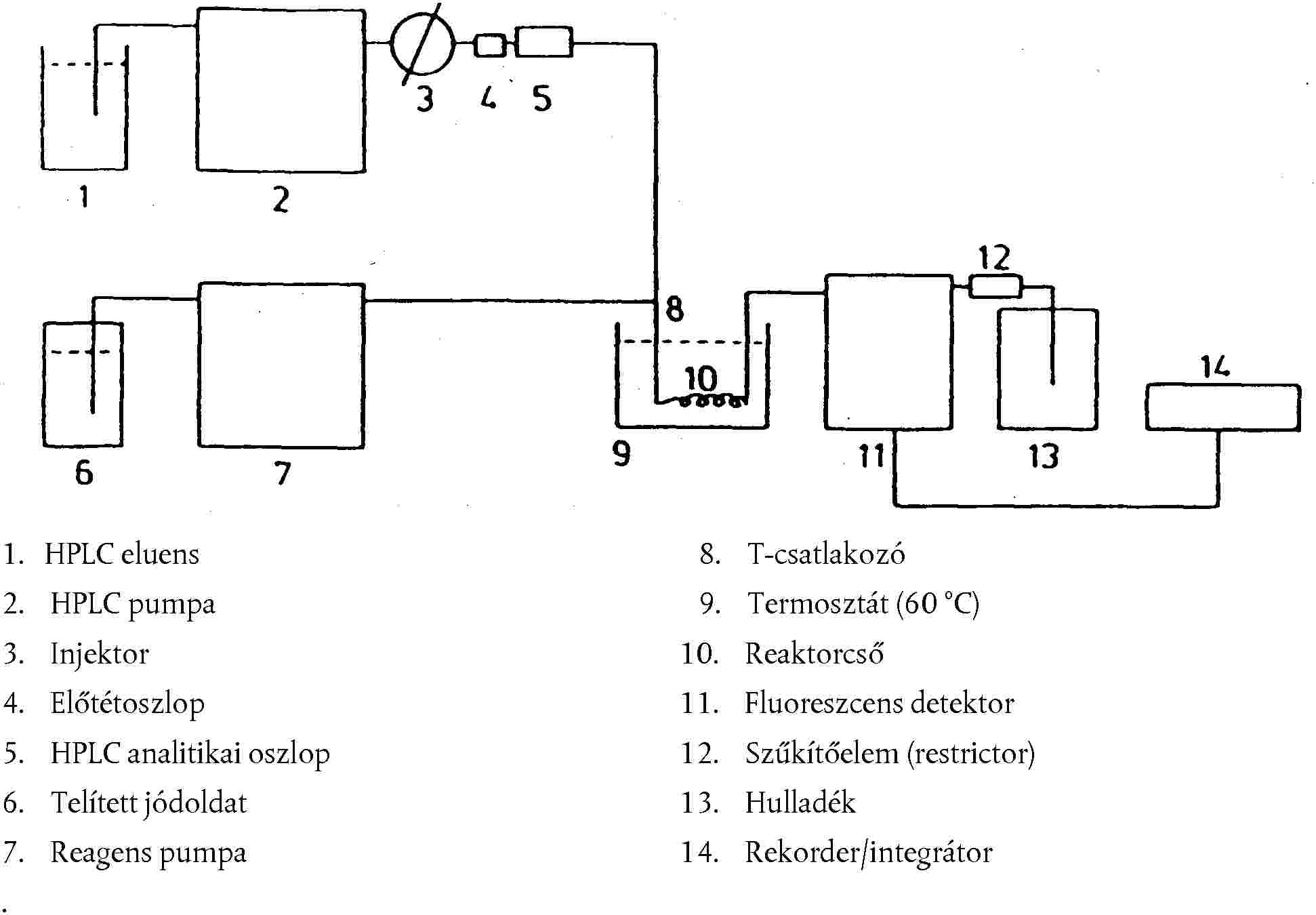 2. ábra: A jóddal végzett származékképzéssel történő folyadékkromatográfiás meghatározás rendszerének folyamatábrája