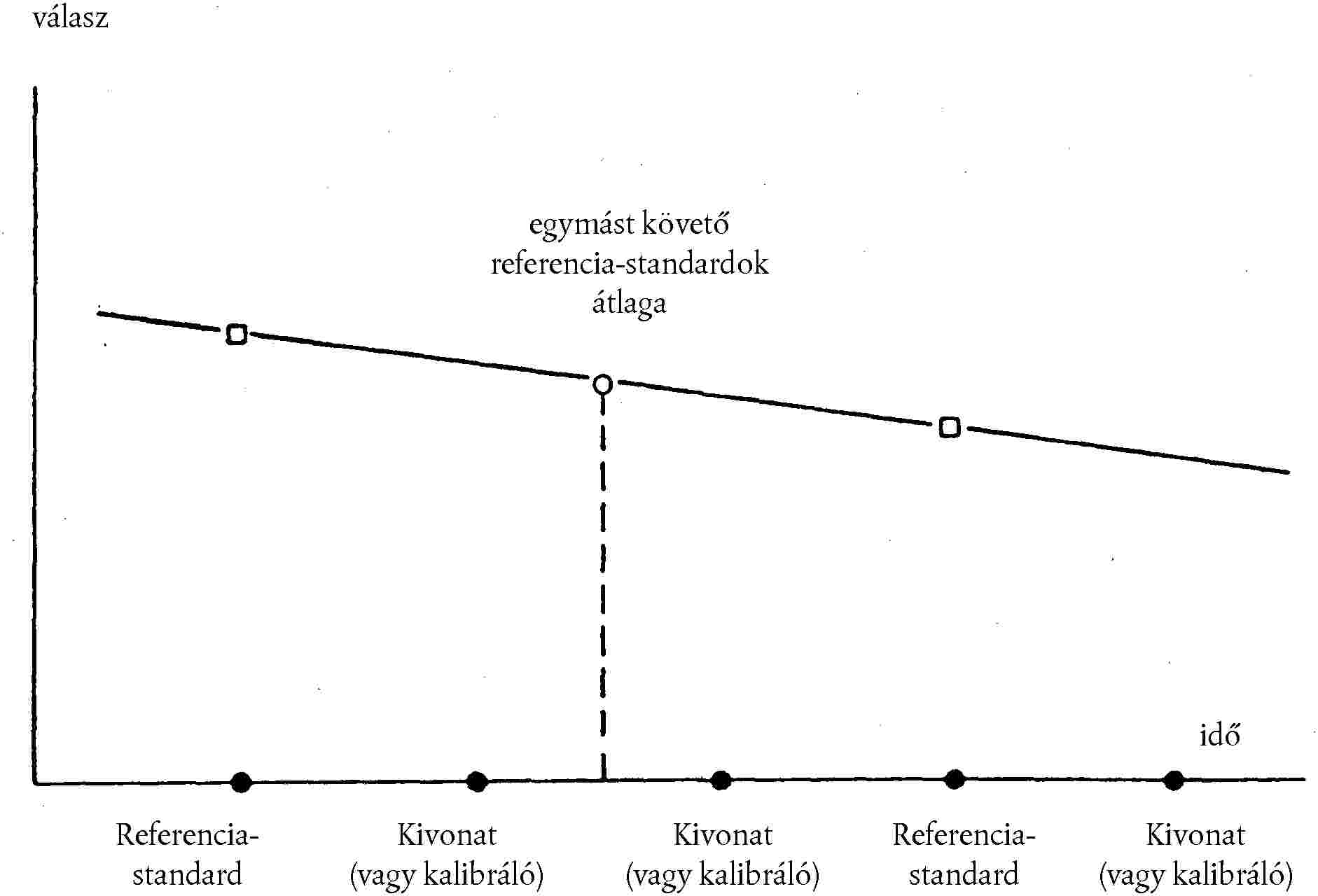 3. ábra: A hőmérséklet-változás figyelembevétele az aflatoxin B1 válaszban referencia kalibrálóoldat (3.13.3.) rendszeres időközönként történő injektálásával