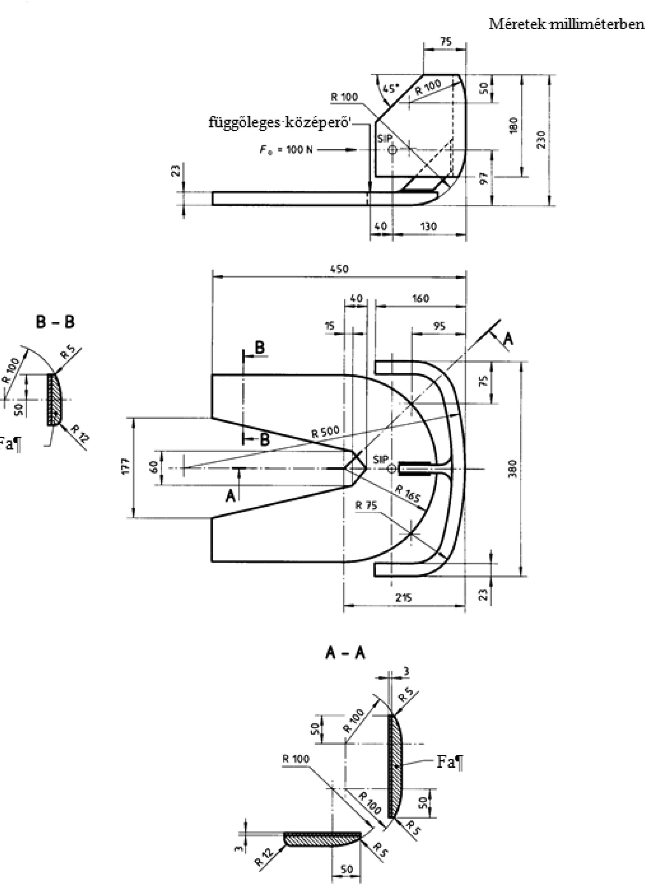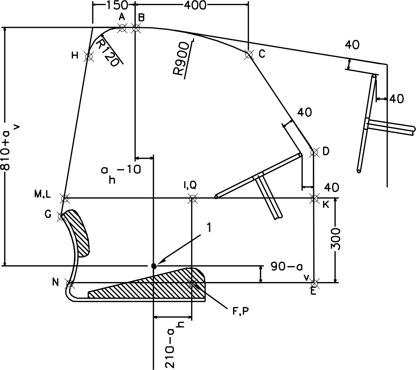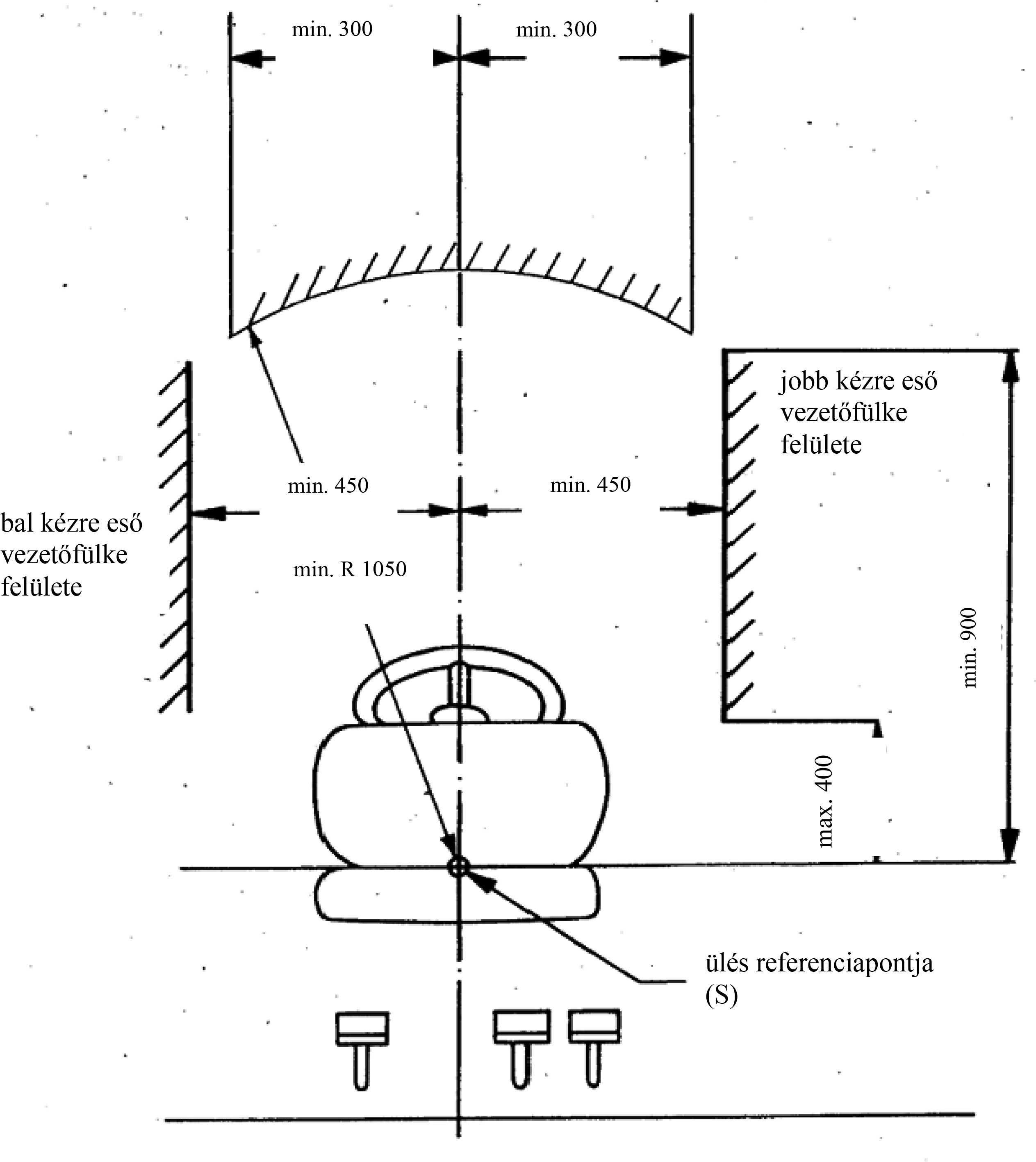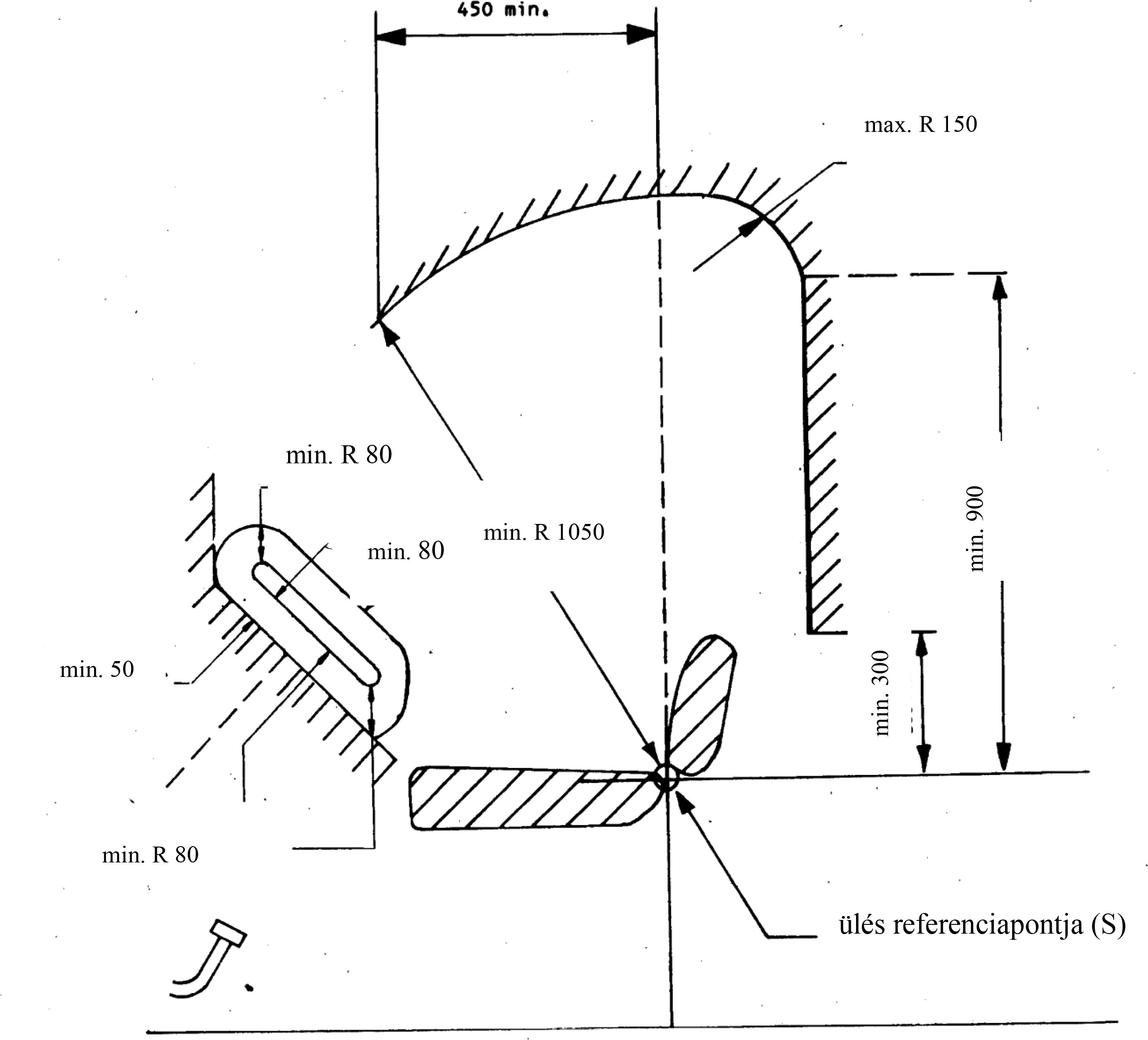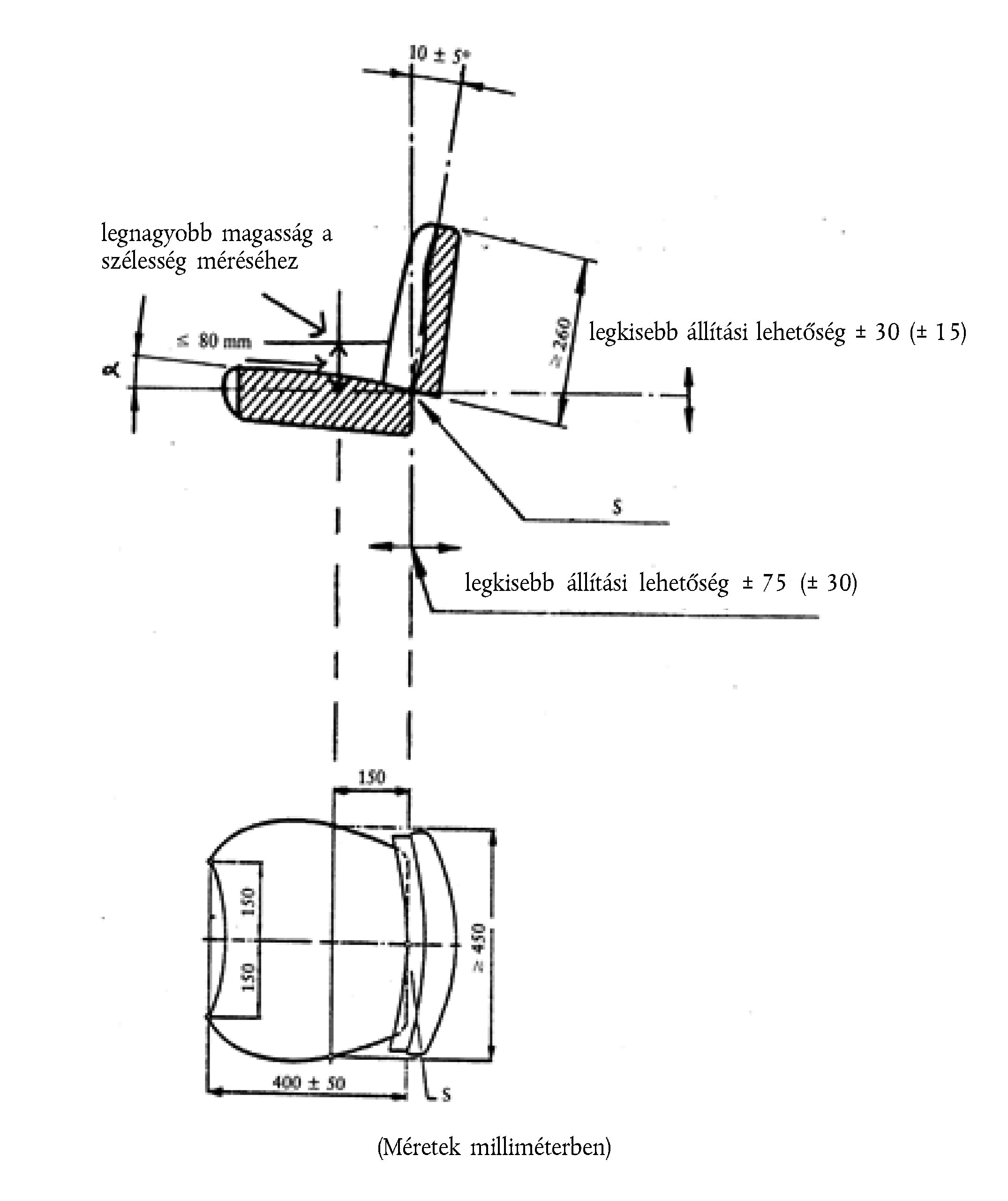 1. "ülés referenciapontja (S)" : az ülés hosszanti középsíkjában az a pont, amelyben a párnázott háttámla alsó részének érintősíkja és egy vízszintes sík az ülés felületén metszi egymást. A vízszintes sík áthalad az ülés alsó felületén 150 mm-rel az ülés referenciapontja (S) előtt, a XIV. melléklet 8. függelékében meghatározottak szerint;