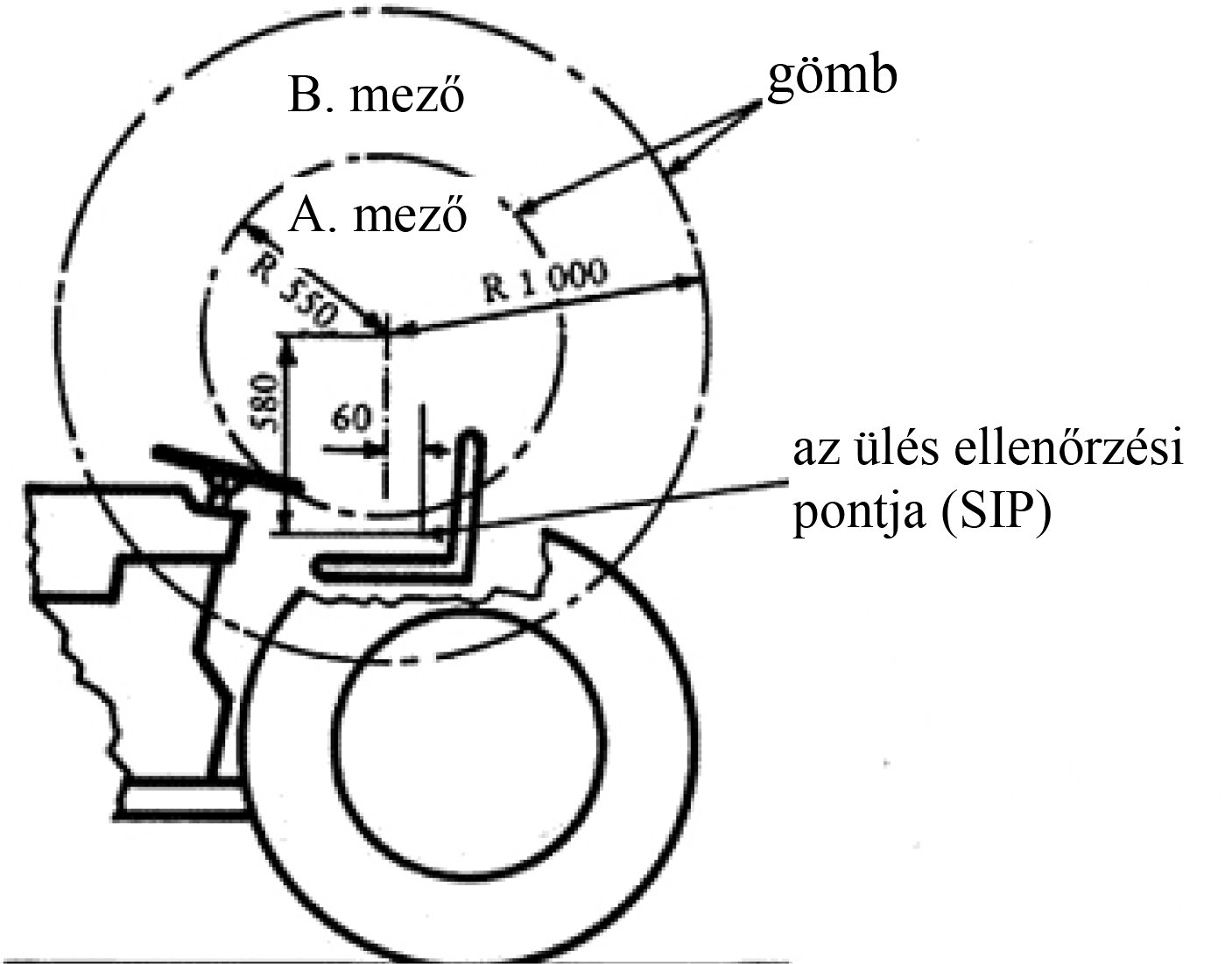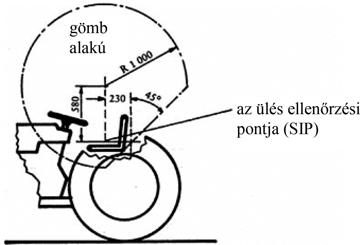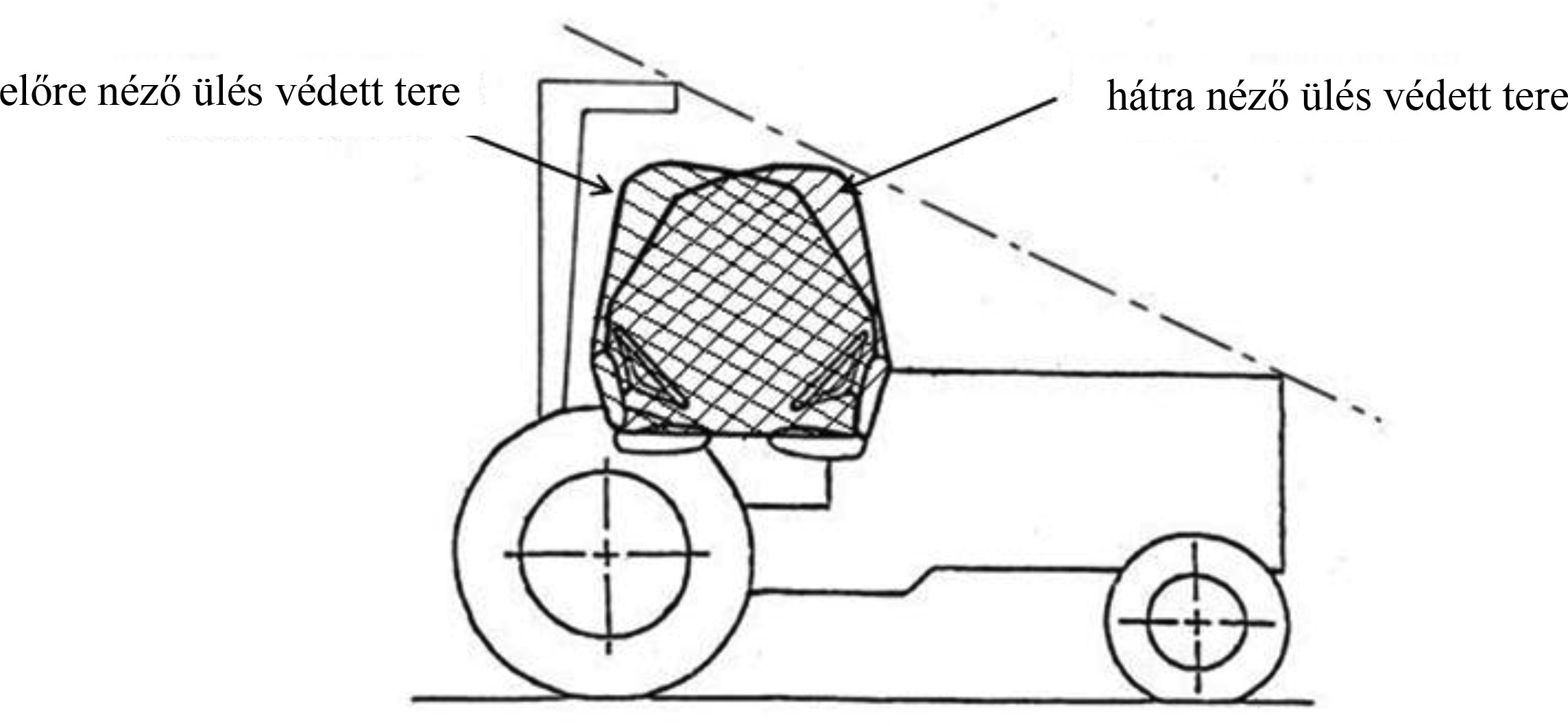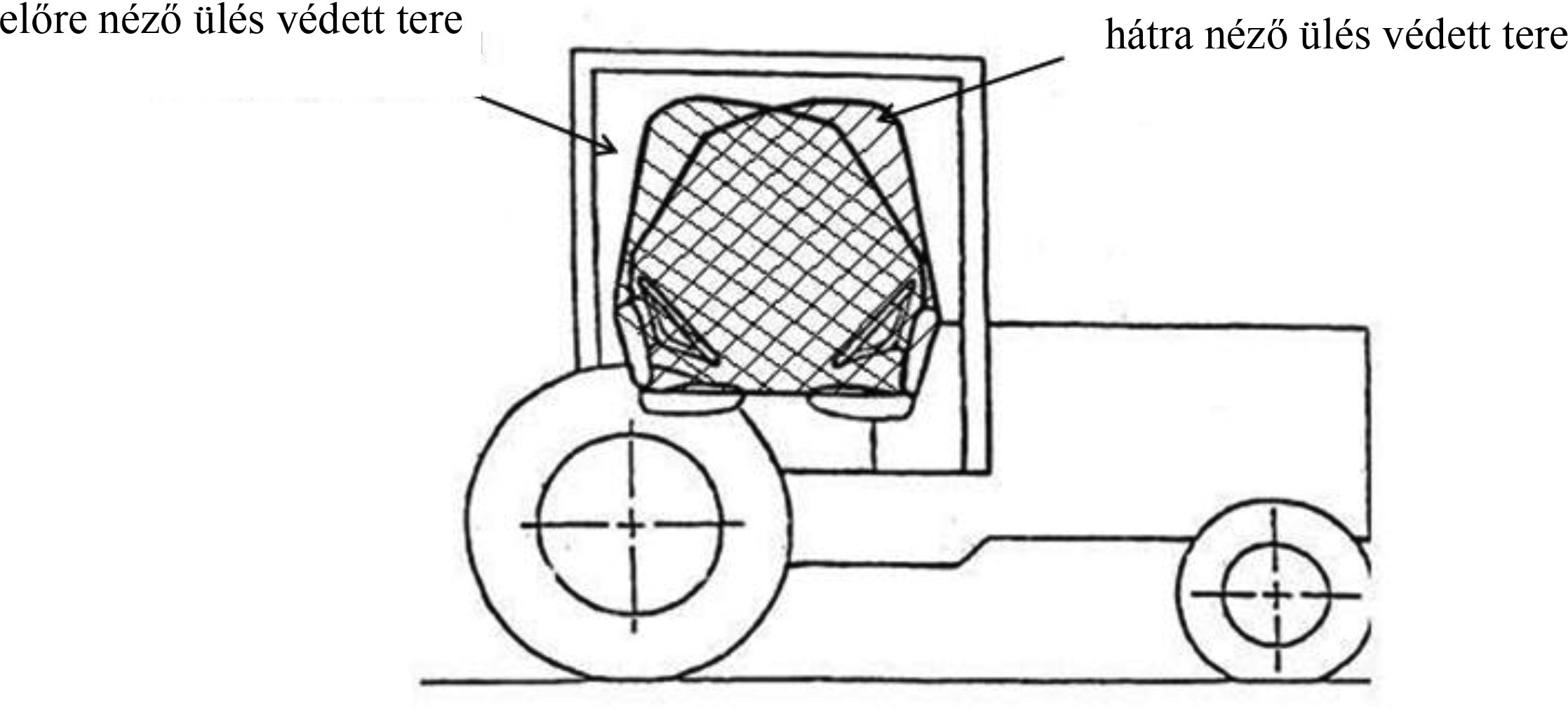 ( 2 ) A felhasználókat emlékeztetjük arra, hogy az ülés ellenőrzési pontjának meghatározása az ISO 5353 szabvány szerint történik, és ez a traktorhoz viszonyítva egy olyan rögzített pont, amely akkor sem mozdul el, ha az ülést elmozdítják a középső helyzetből. A védett tér meghatározásához az ülést a hátsó legfelső helyzetbe kell állítani.