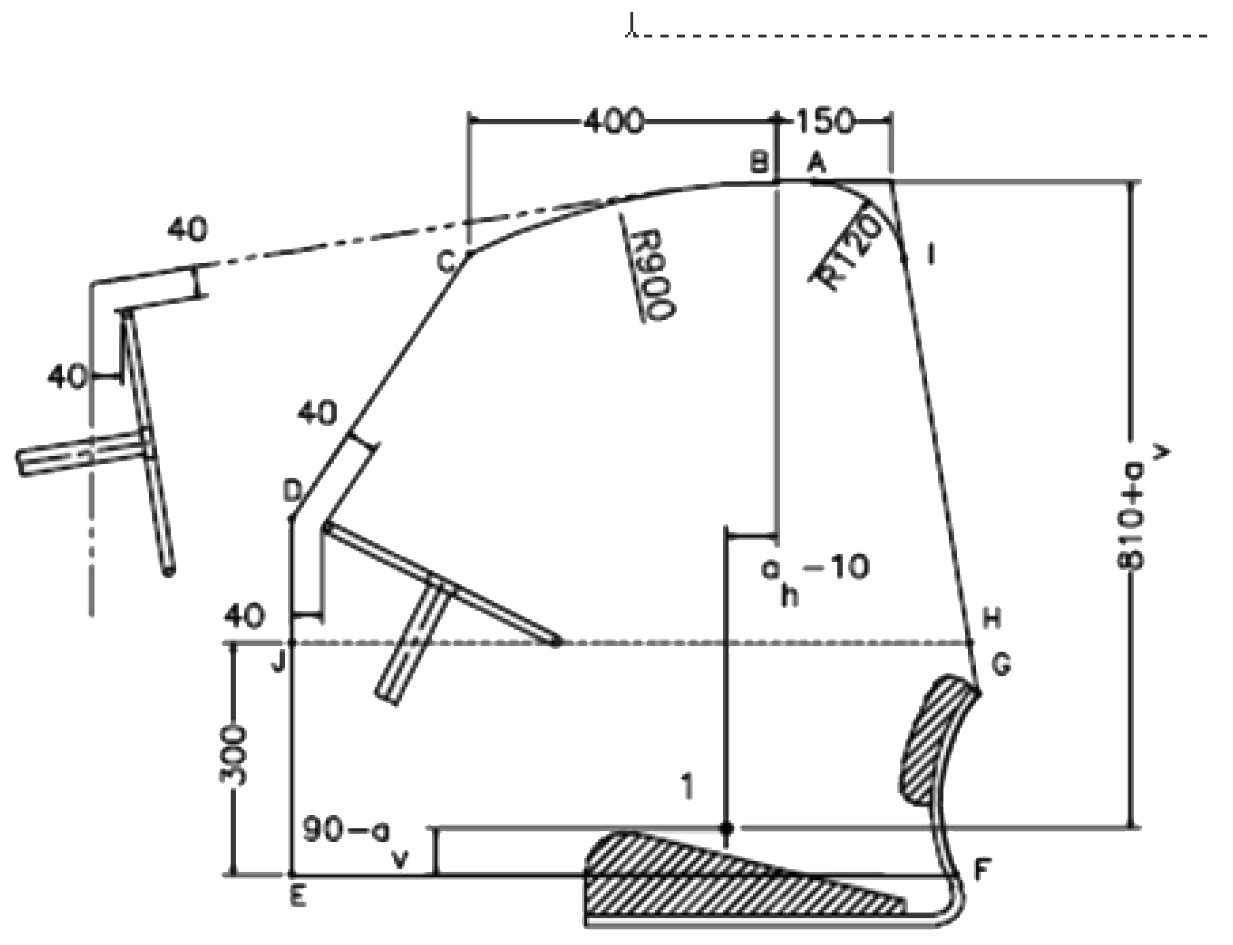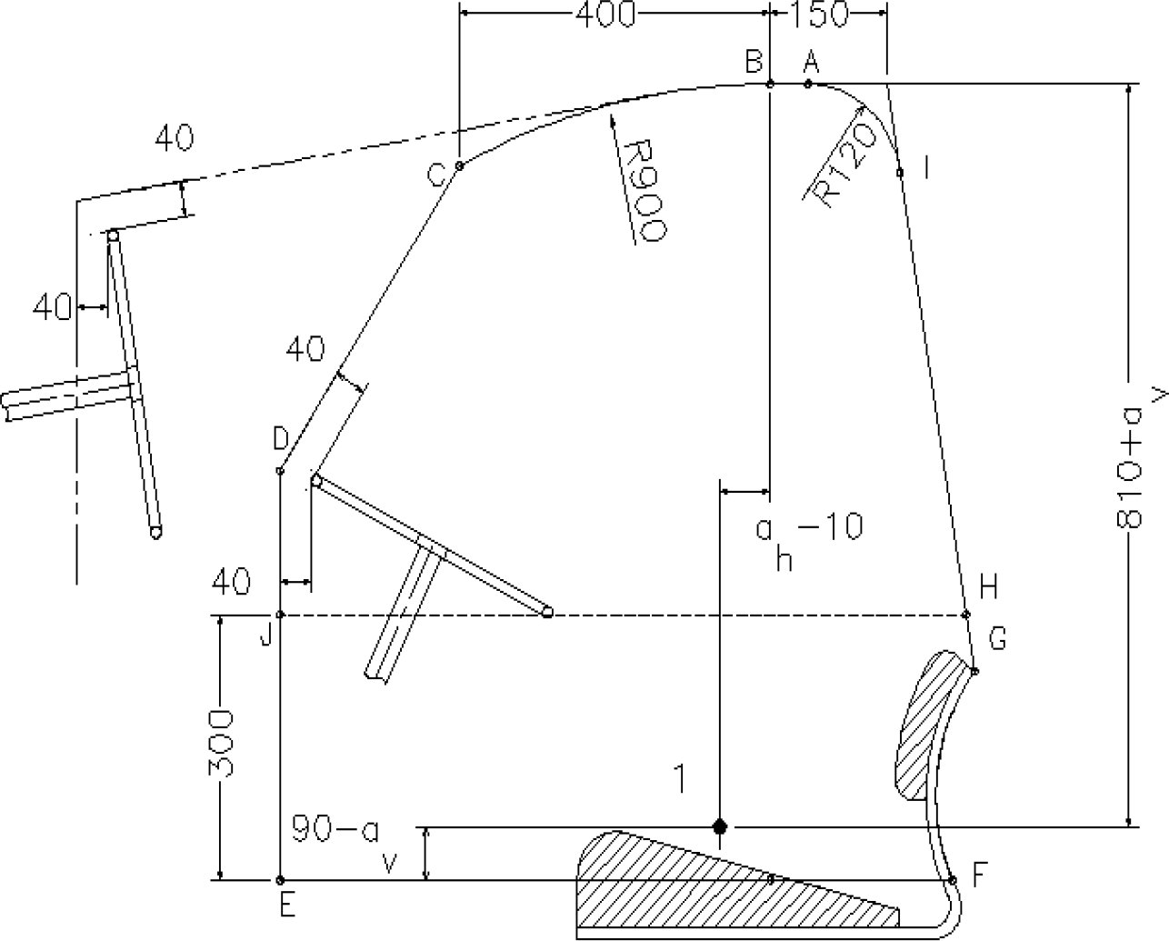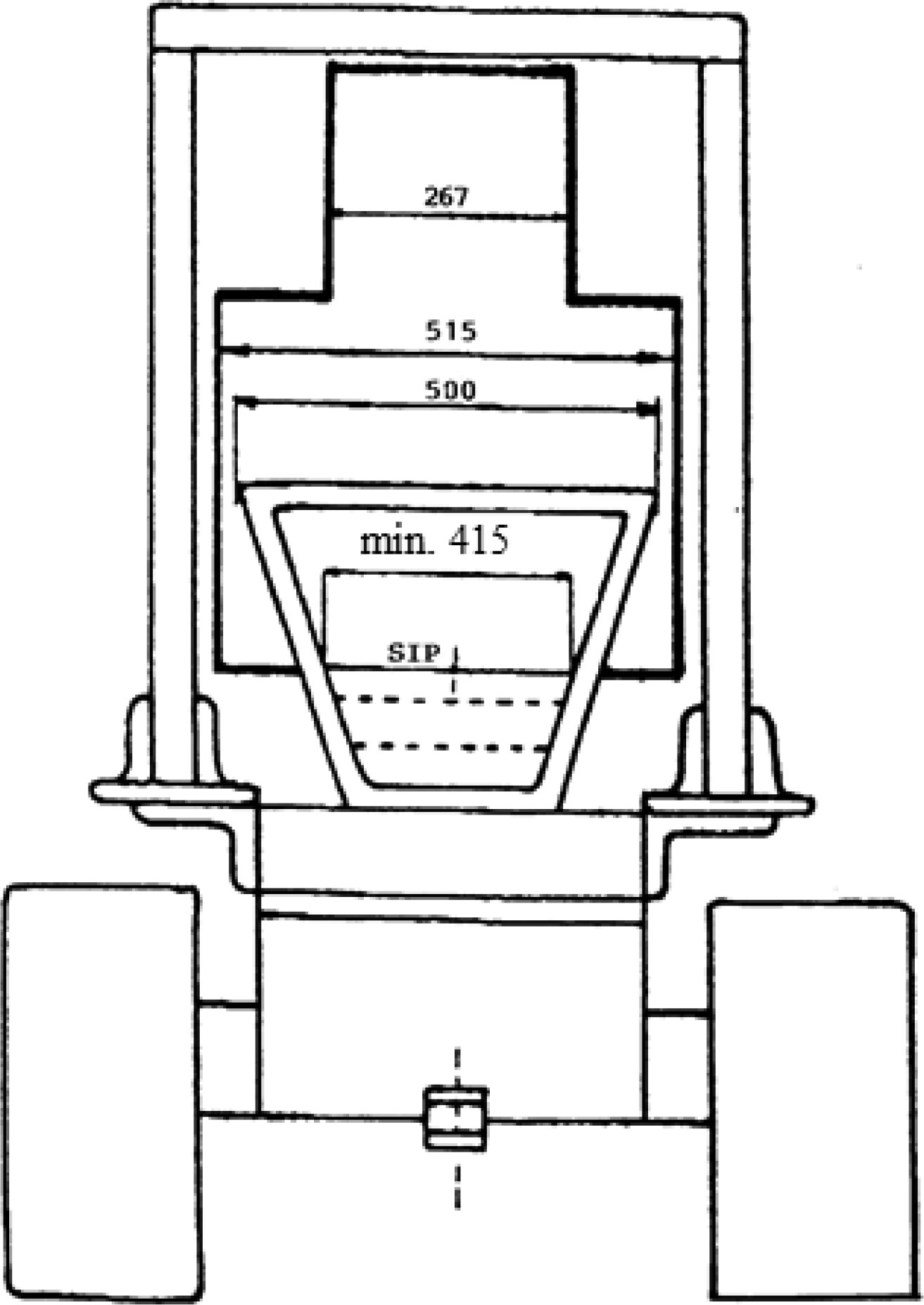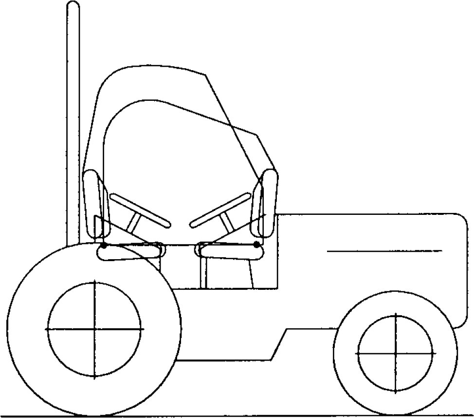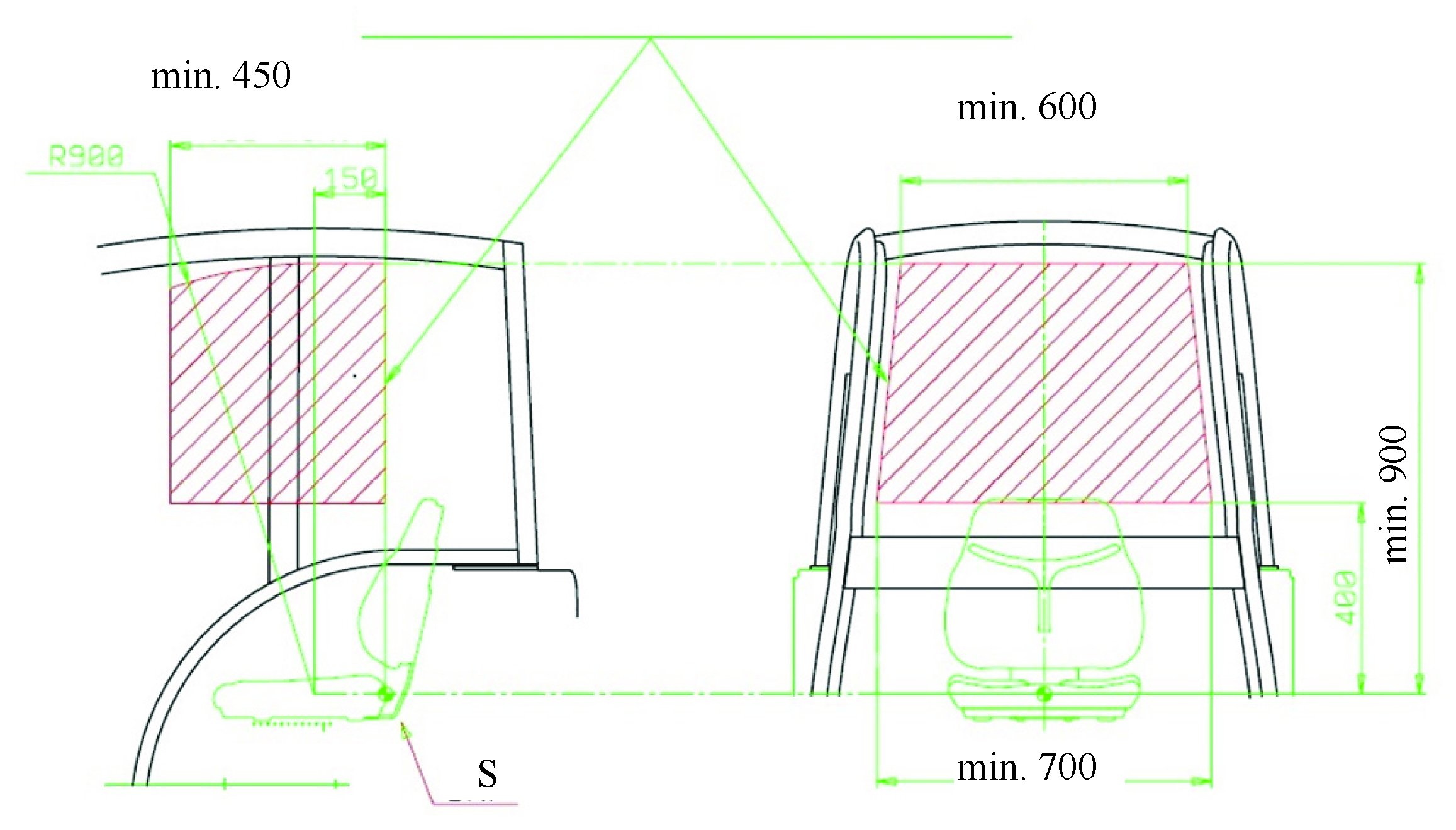 ( 2 ) A felhasználókat emlékeztetjük arra, hogy az ülés ellenőrzési pontjának meghatározása az ISO 5353 szabvány szerint történik, és ez a traktorhoz viszonyítva egy olyan rögzített pont, amely akkor sem mozdul el, ha az ülést elmozdítják a középső helyzetből. A védett tér meghatározásához az ülést a hátsó legfelső helyzetbe kell állítani.
