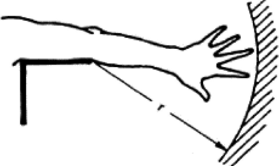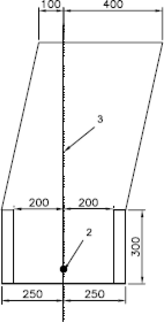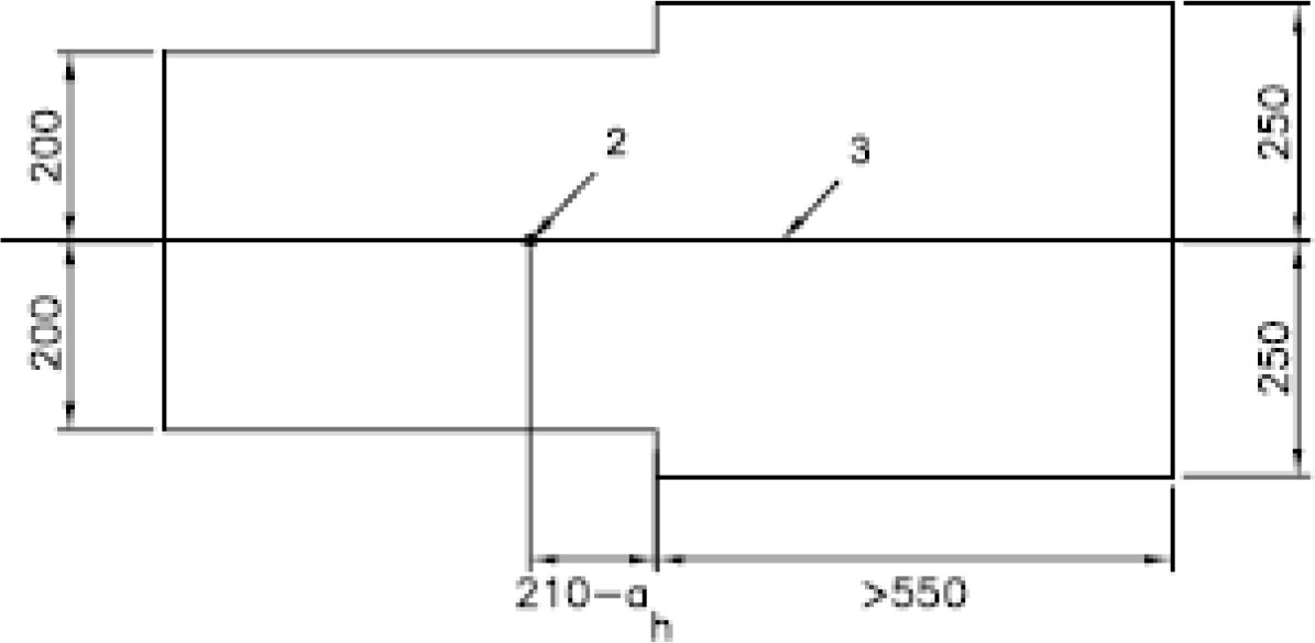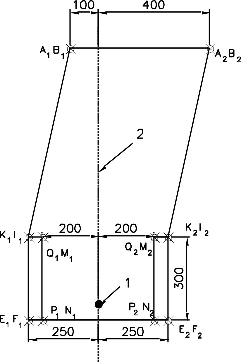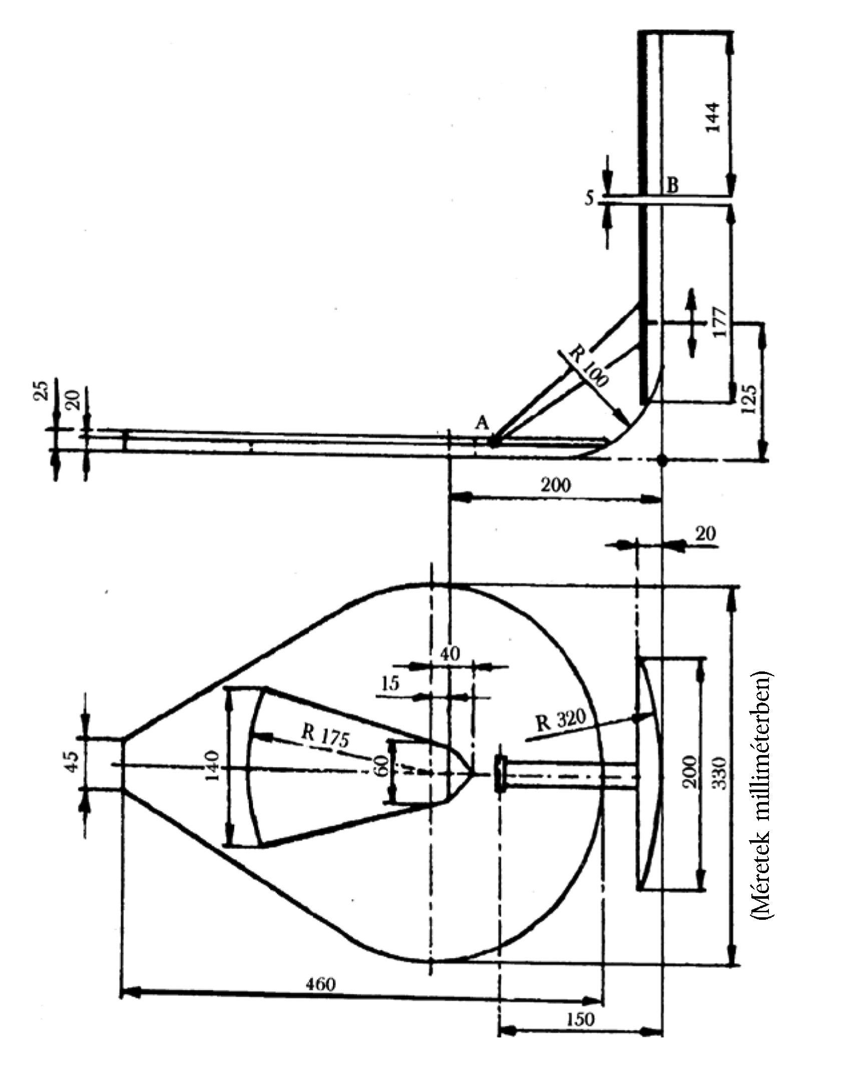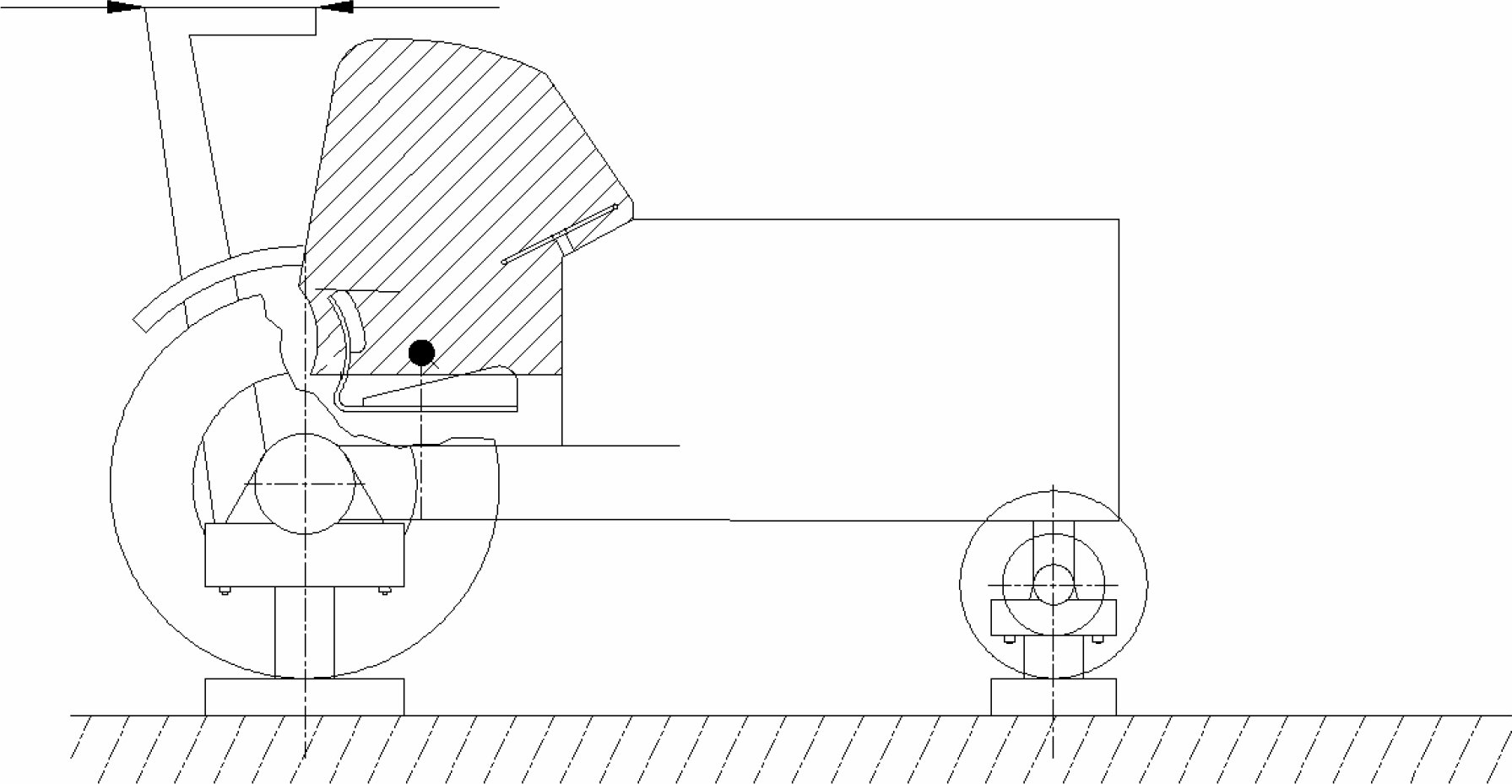A hárompontos felfüggesztés hidraulikus emelőberendezés, a mellékhajtás és a távoli szelep külső kezelőszerve(i) helyének elülső veszélyzónája felülnézetben, az elülső veszélyzóna az egyenlőszárú trapéz terület, amelynek ferde oldalai a hárompontos felfüggesztés emelő-berendezésének karjai: a rövidebb alap a traktortest első részének vetülete, a hosszabb alap pedig a hárompontos felfüggesztés emelőberendezése karjainak végein áthaladó vonal.