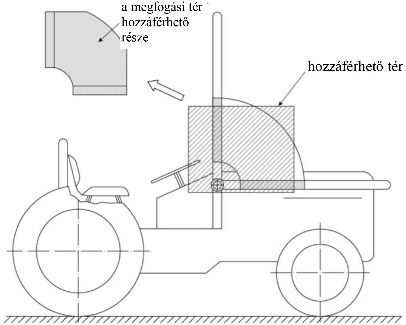 A sárvédők belső szélén átmenő függőleges síkok által meghatározott tér, ahonnan nem hozzáférhető(k) a hátsó mellékhajtás és a hátsó hárompontos felfüggesztés emelőberendezésének belső kezelőszerve(i) a vezetőfülke nélküli traktorok esetében