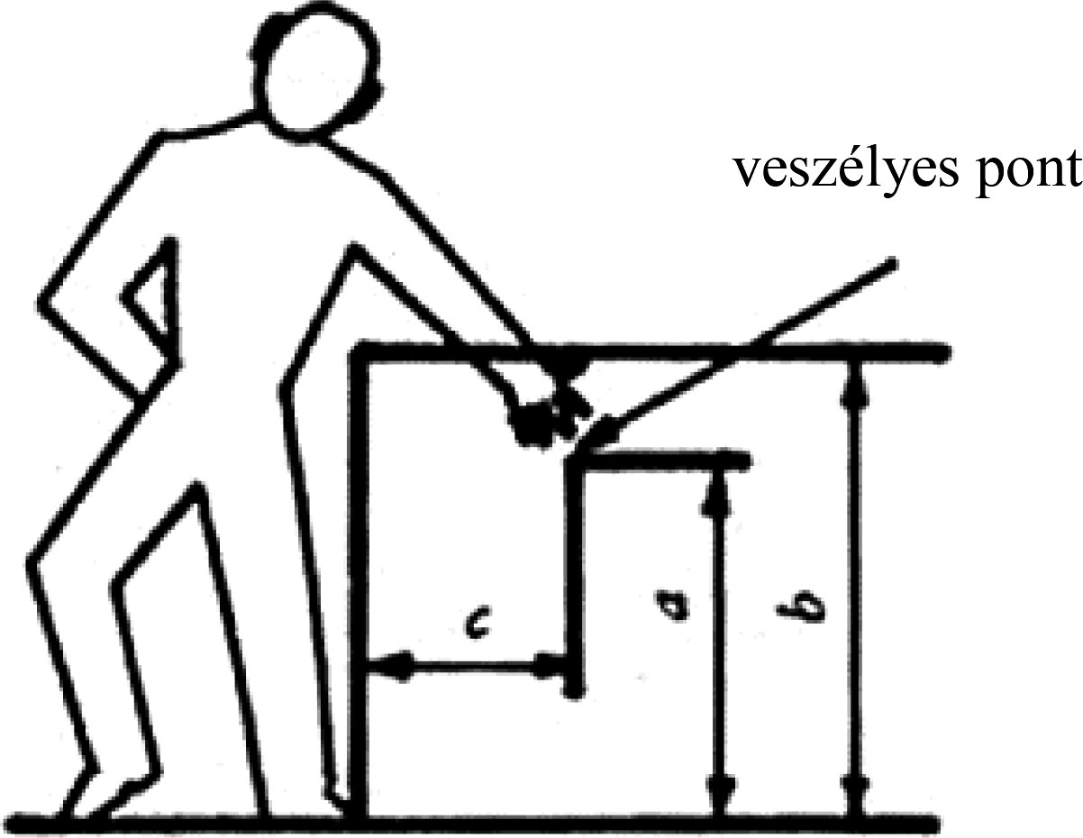 - 3. szakasz: Biztonsági távolságok a veszélyes alkatrészek érintésének elkerülésére: 3.1-3.2.6. pont, és