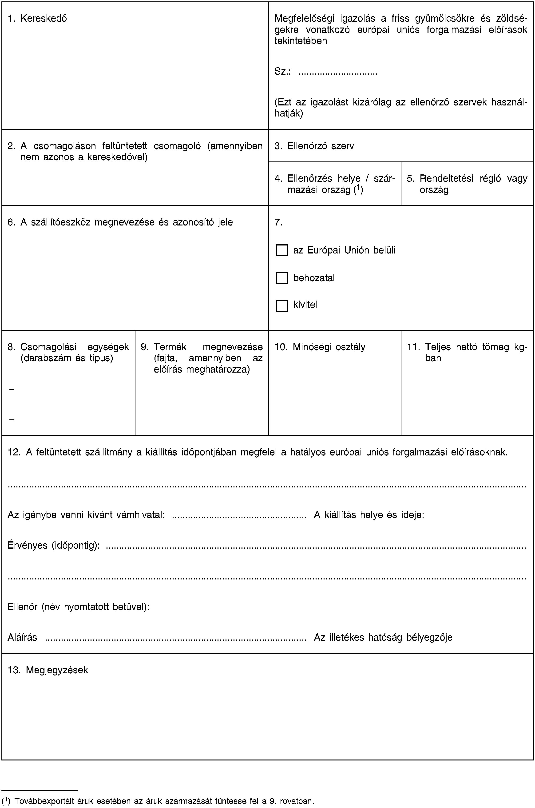 A forgalmazási előírásoknak való megfelelés ellenőrzése