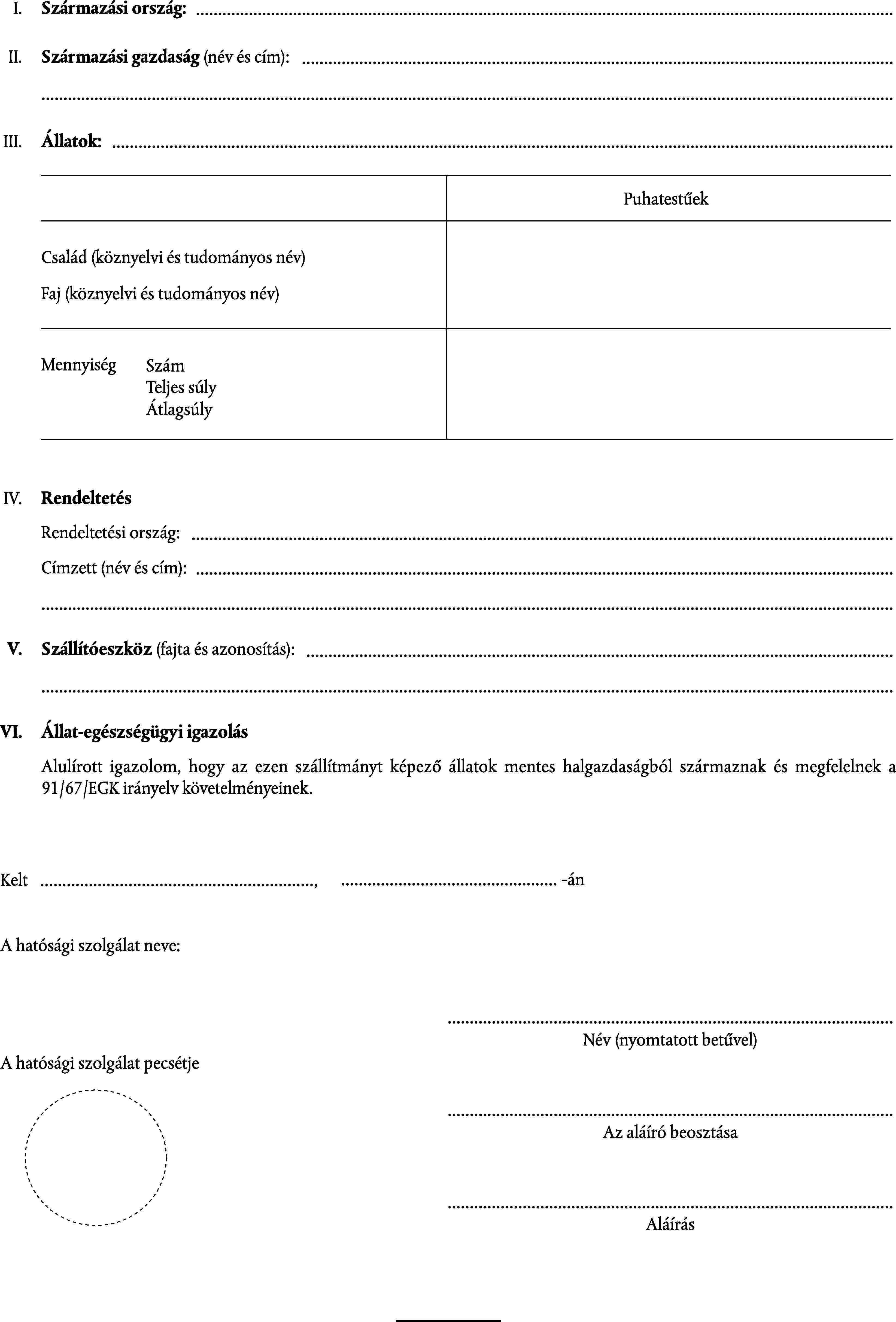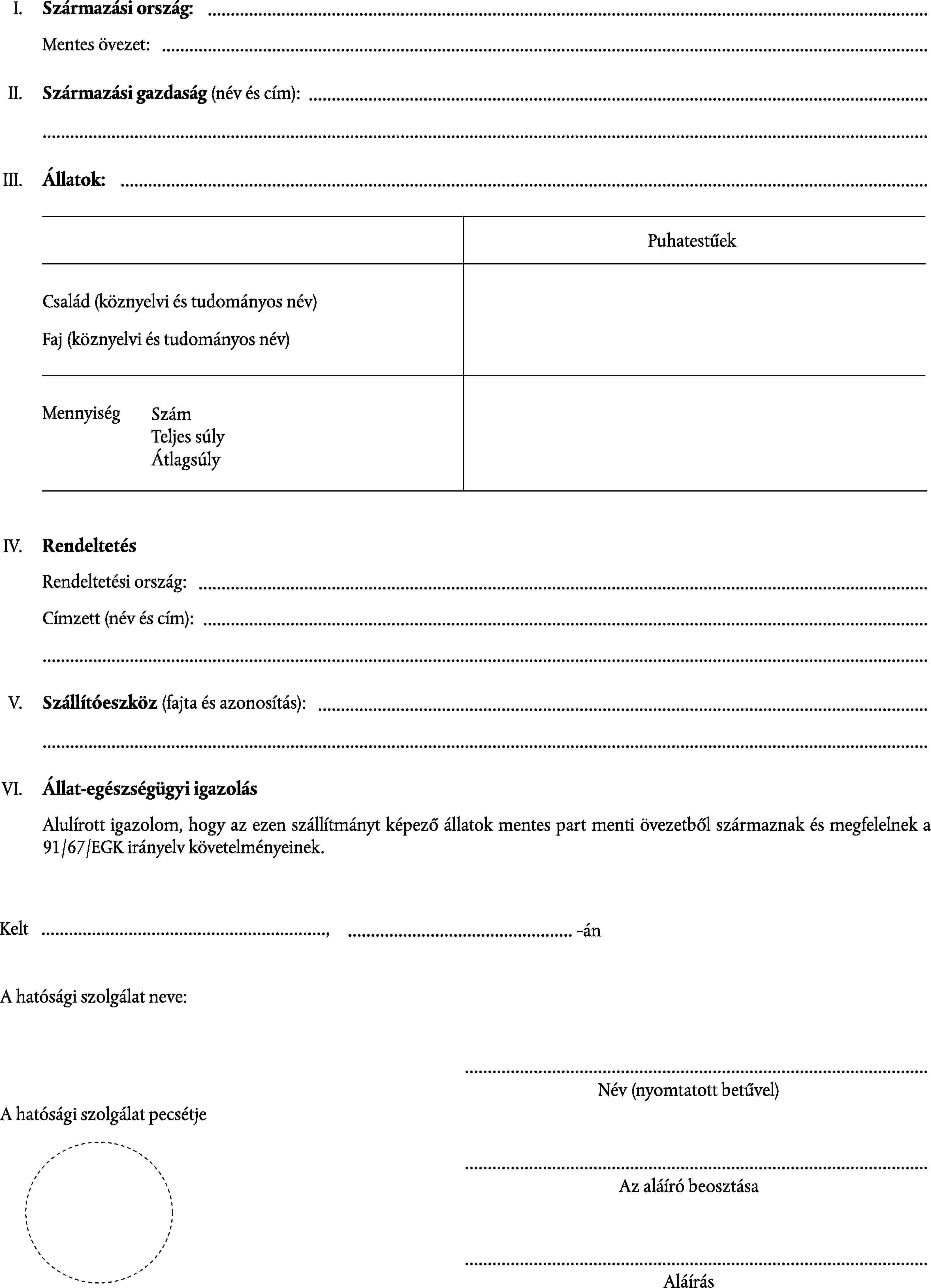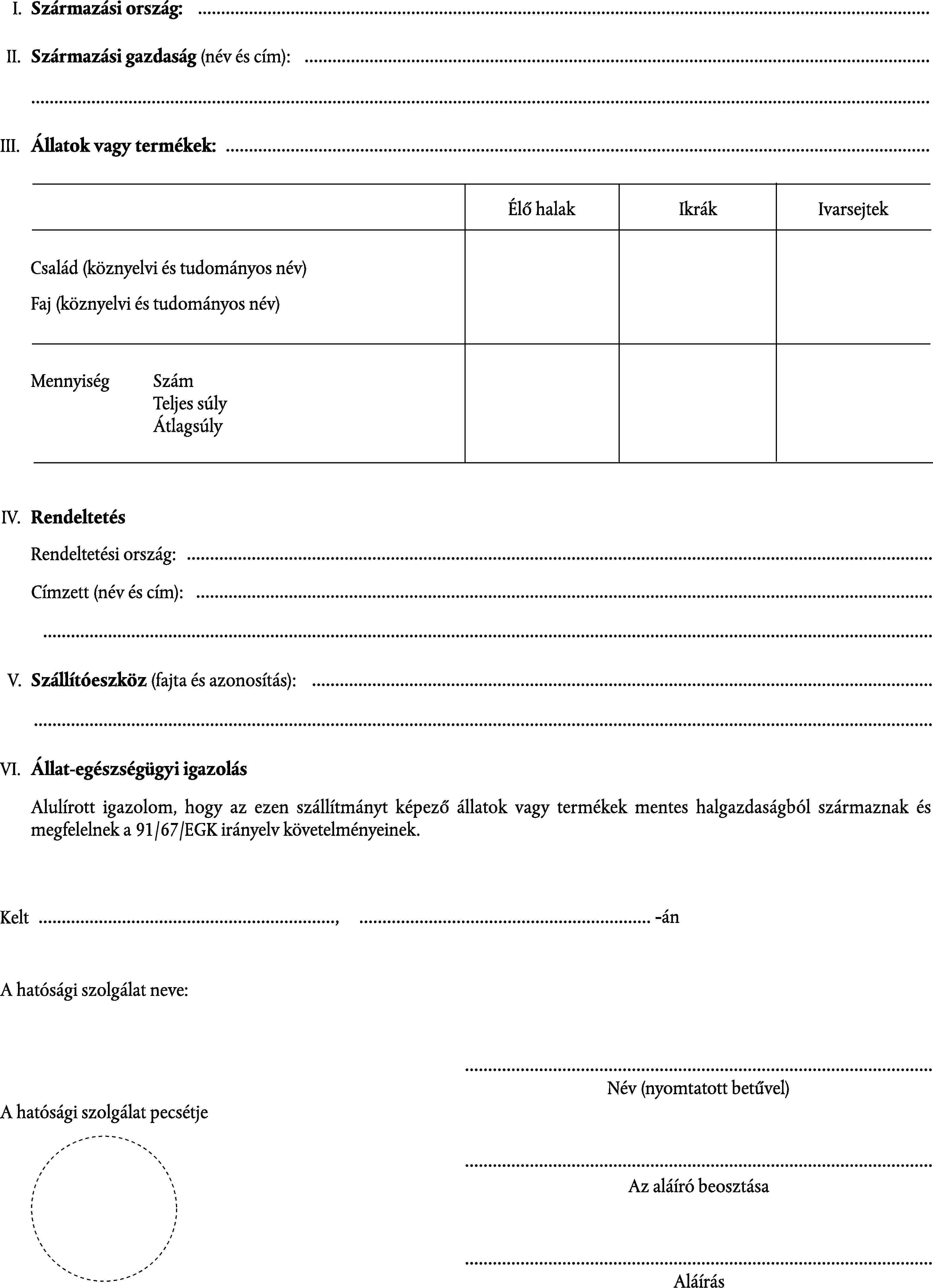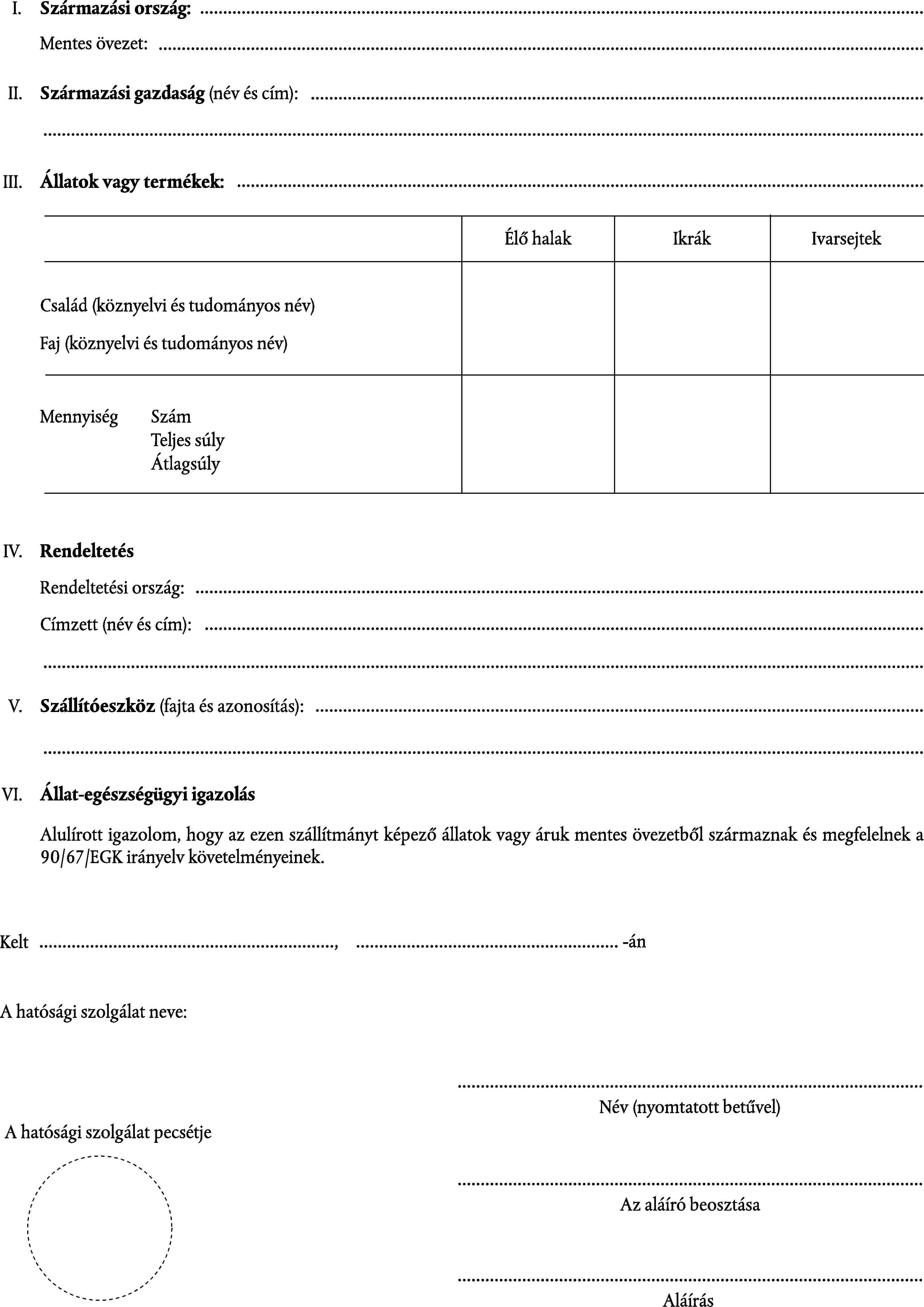 SZÁLLÍTÁSI OKMÁNY MENTES ÖVEZETBŐL SZÁRMAZÓ ÉLŐ HALAKHOZ, IKRÁKHOZ ÉS IVARSEJTEKHEZ