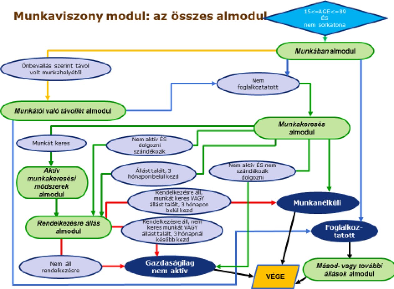 - A 15-69 éveseket az alkalmazott rotációs rendszernek megfelelően minden interjú/hullám során a teljes "munkaviszony modul" használatával kérdezik meg.