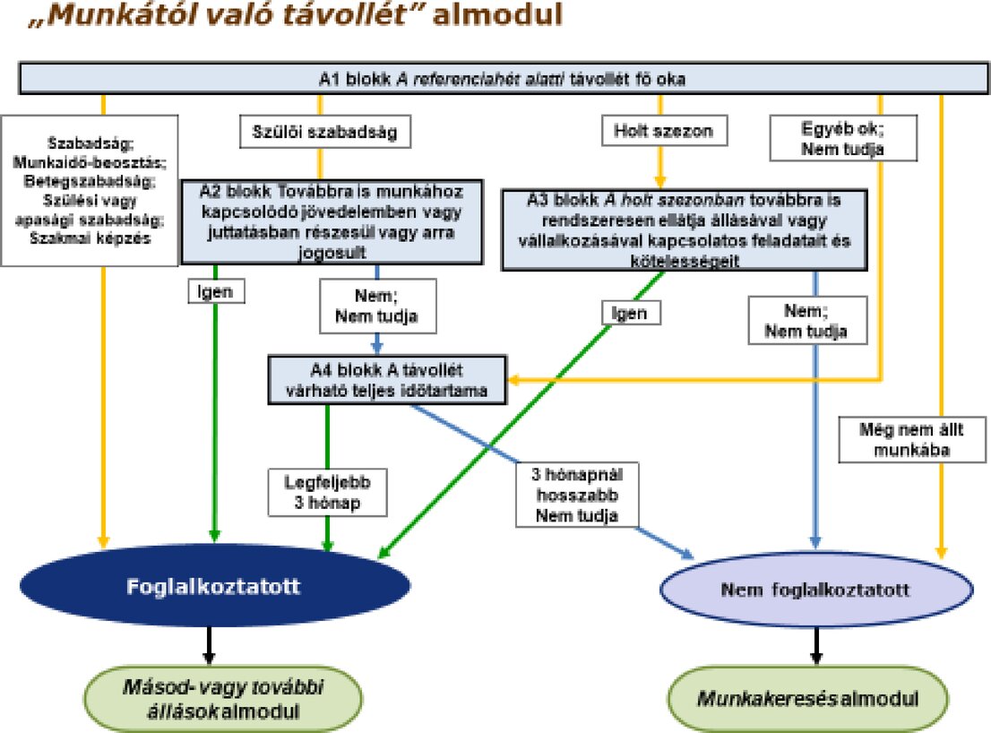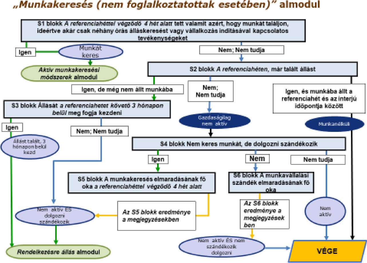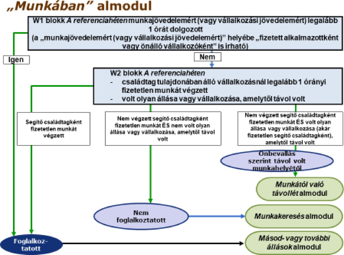 Folyamatábrák a foglalkoztatásra és a munkanélküliségre vonatkozó kérdések kérdőívbeli sorrendjéről