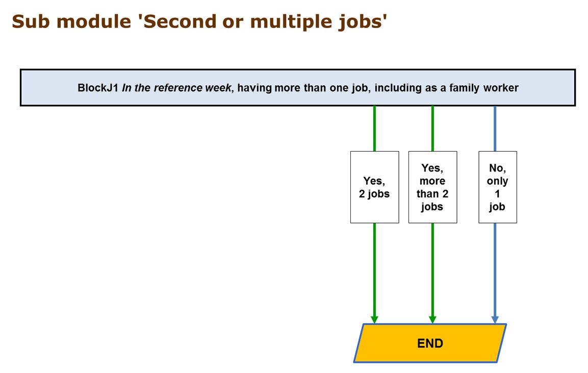 - A tartós egészségügyi problémák miatt munkavégzésre képtelen személyeket az első interjú/hullám során, majd az azt követő interjúk/hullámok során is a teljes "munkaviszony modul" használatával kérdezik meg mindaddig, amíg az előző interjú során gazdaságilag aktívként kerülnek besorolásra. Az előző interjú alkalmával gazdaságilag nem aktívként besorolt, tartós egészségügyi problémák miatt munkavégzésre képtelen személyeket újból meg lehet kérdezni, de válaszaik a legutolsó rendelkezésre álló interjúból is bemásolhatók.