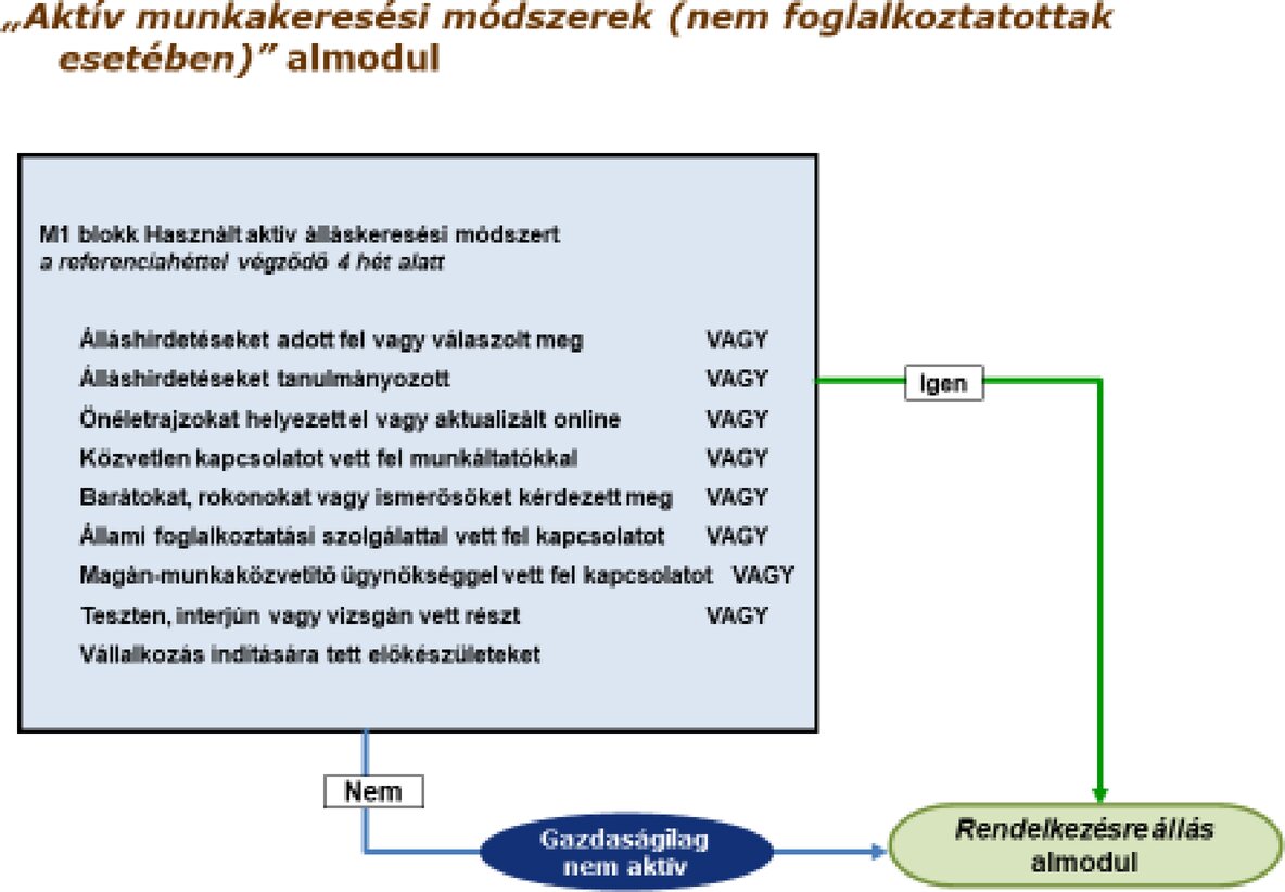 16. Az "Aktív munkakeresési módszerek (nem foglalkoztatottak esetében)" almodul folyamatábrája és a hozzá tartozó megjegyzések meghatározása a következő: