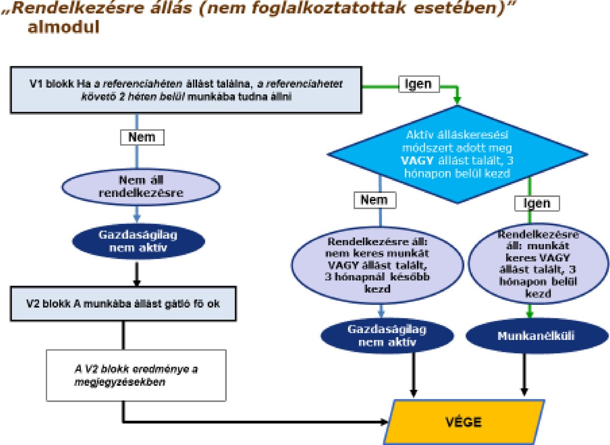 Ha a válaszadó az S5 blokkban már válaszolt, a válasz a V2 blokkba bemásolható. Ilyen esetben az S5 blokk "nincs megfelelő állás" és "várja, hogy visszahívják dolgozni (munkáltatója átmenetileg szünetelteti a munkát)" opciója a V2 blokk "egyéb ok" opciójába sorolható.