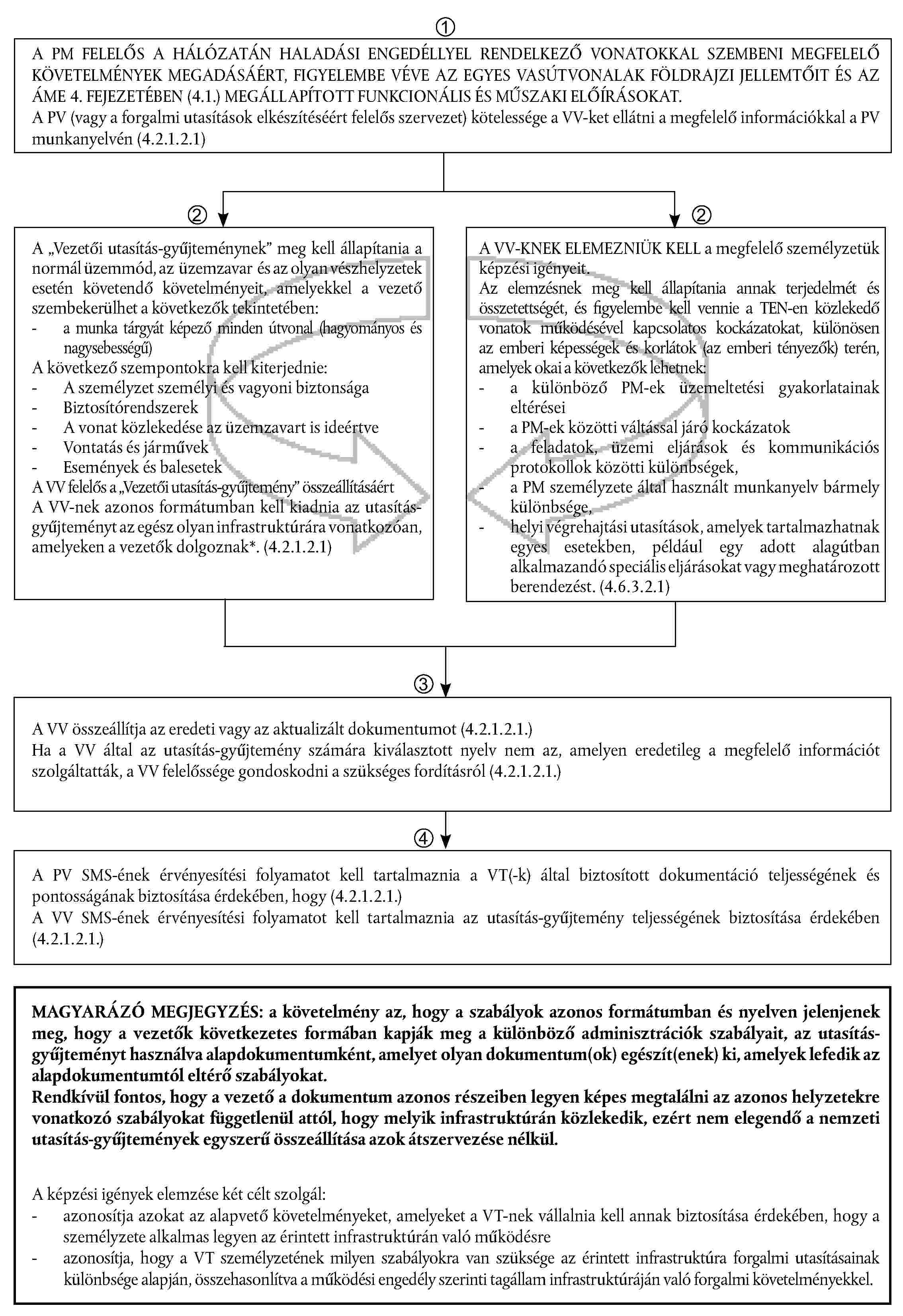 A 4.6. és 4.7. alpont a személyzet azon tagjaira vonatkozik, akik olyan biztonsági szempontból kritikus feladatokat látnak el, mint a vonatkíséret, amikor ez az államhatárok átlépésével és a pályahálózat-működtető vasúthálózat-használati feltételeiben "határként" megnevezett és a biztonsági engedélyében említett helyen túl teljesített munkavégzéssel jár együtt.