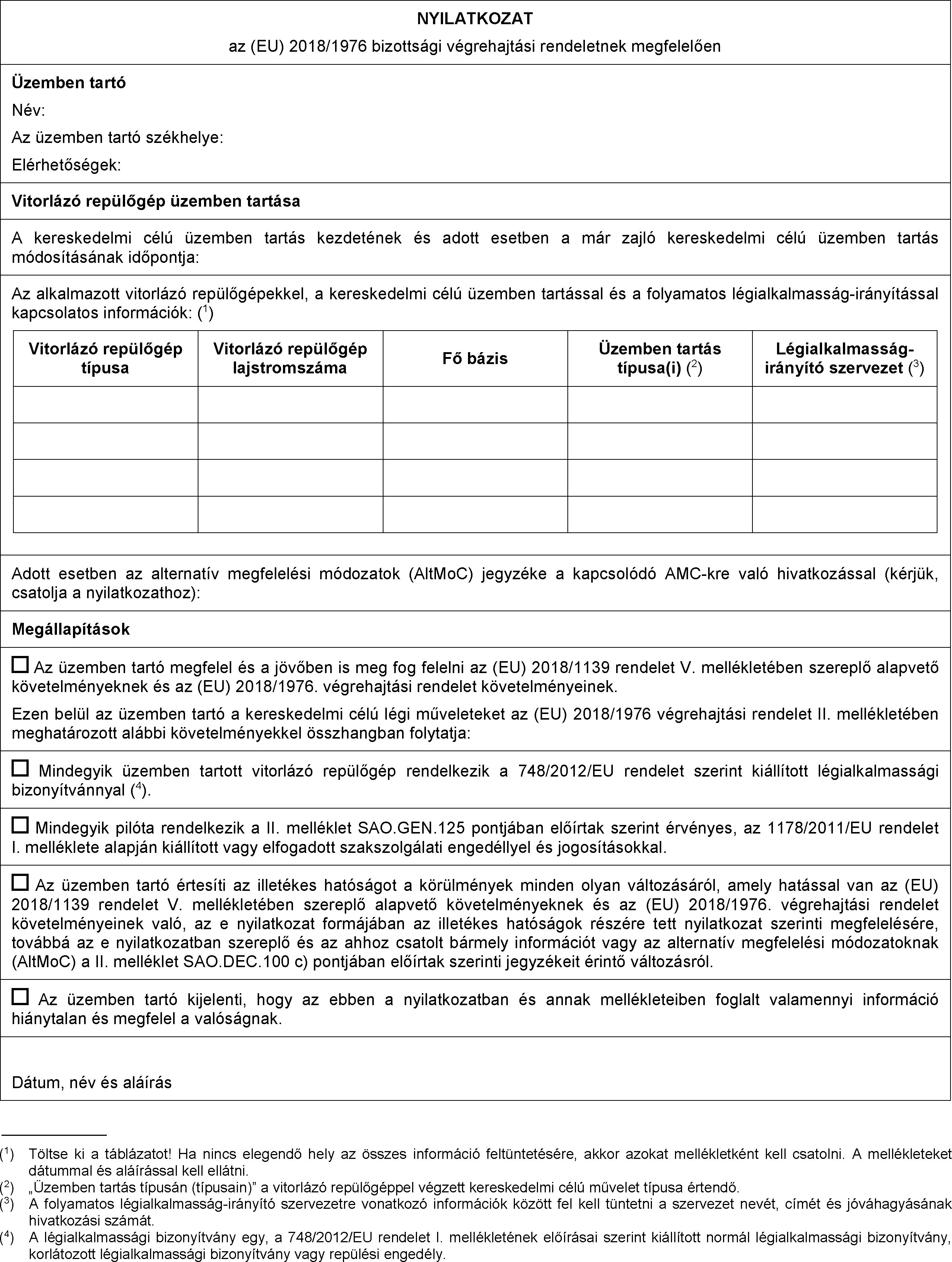 (2) Az (EU) 2018/1139 rendelet 30. cikke (1) bekezdésének a) pontjával összhangban a vitorlázó repülőgépek üzemben tartói csak akkor folytathatnak kereskedelmi célú üzemben tartást, ha az illetékes hatóság részére nyilatkozatot tettek arról, hogy rendelkeznek a vitorlázó repülőgép üzemben tartásához kapcsolódó feladatok ellátásához szükséges képességgel és eszközökkel.