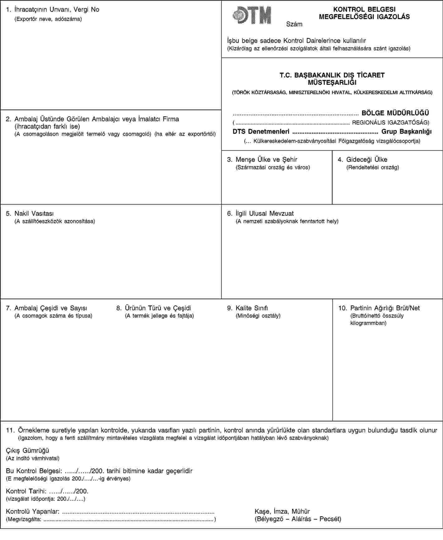 A friss gyümölcsre és zöldségre alkalmazandó forgalmazási előírásoknak való megfelelés tekintetében az Európai Közösségbe történő behozatalt megelőzően Törökország által elvégzett ellenőrzéseket az 1148/2001/EK rendelet 7. cikkével összhangban jóvá kell hagyni.