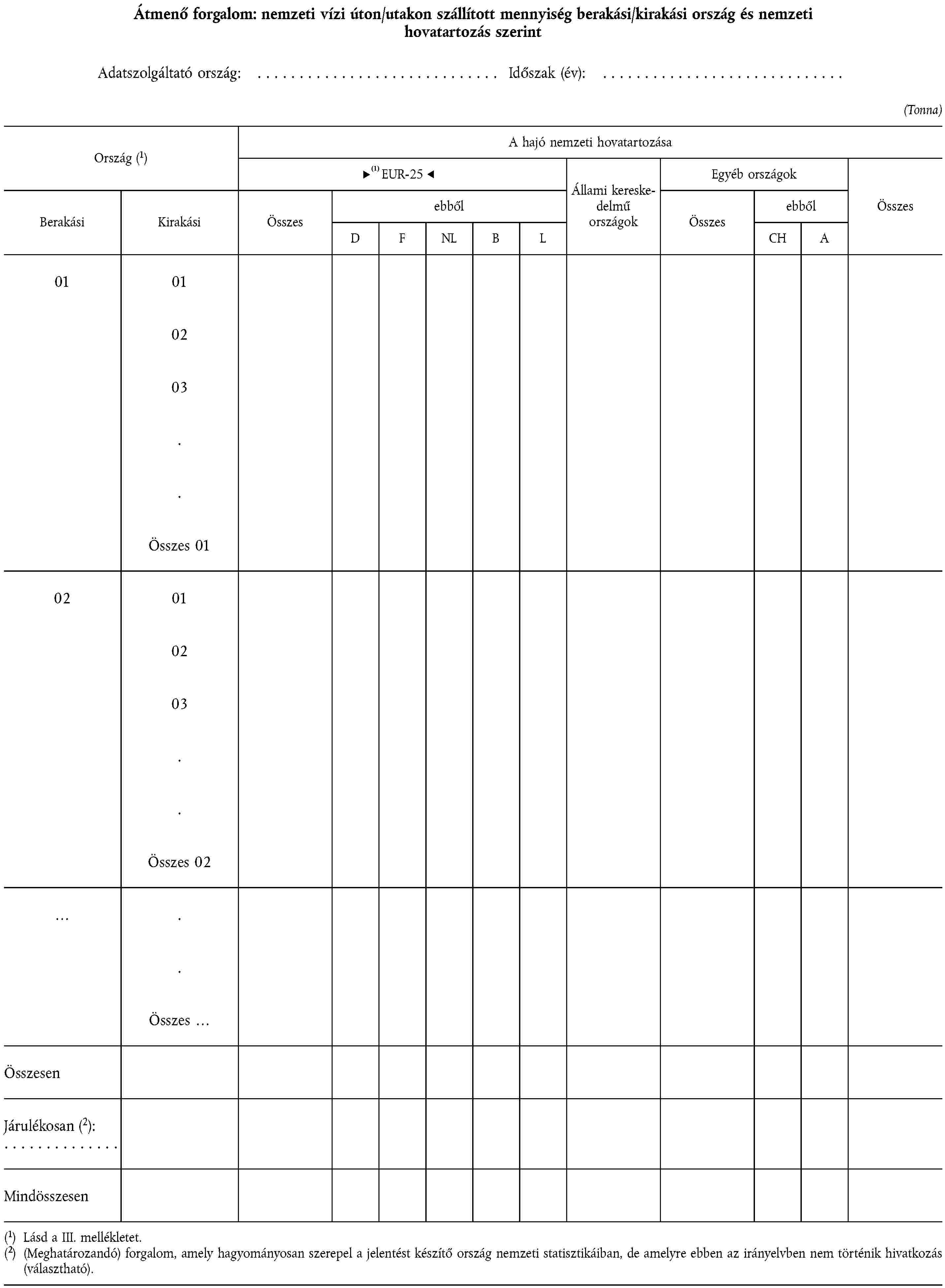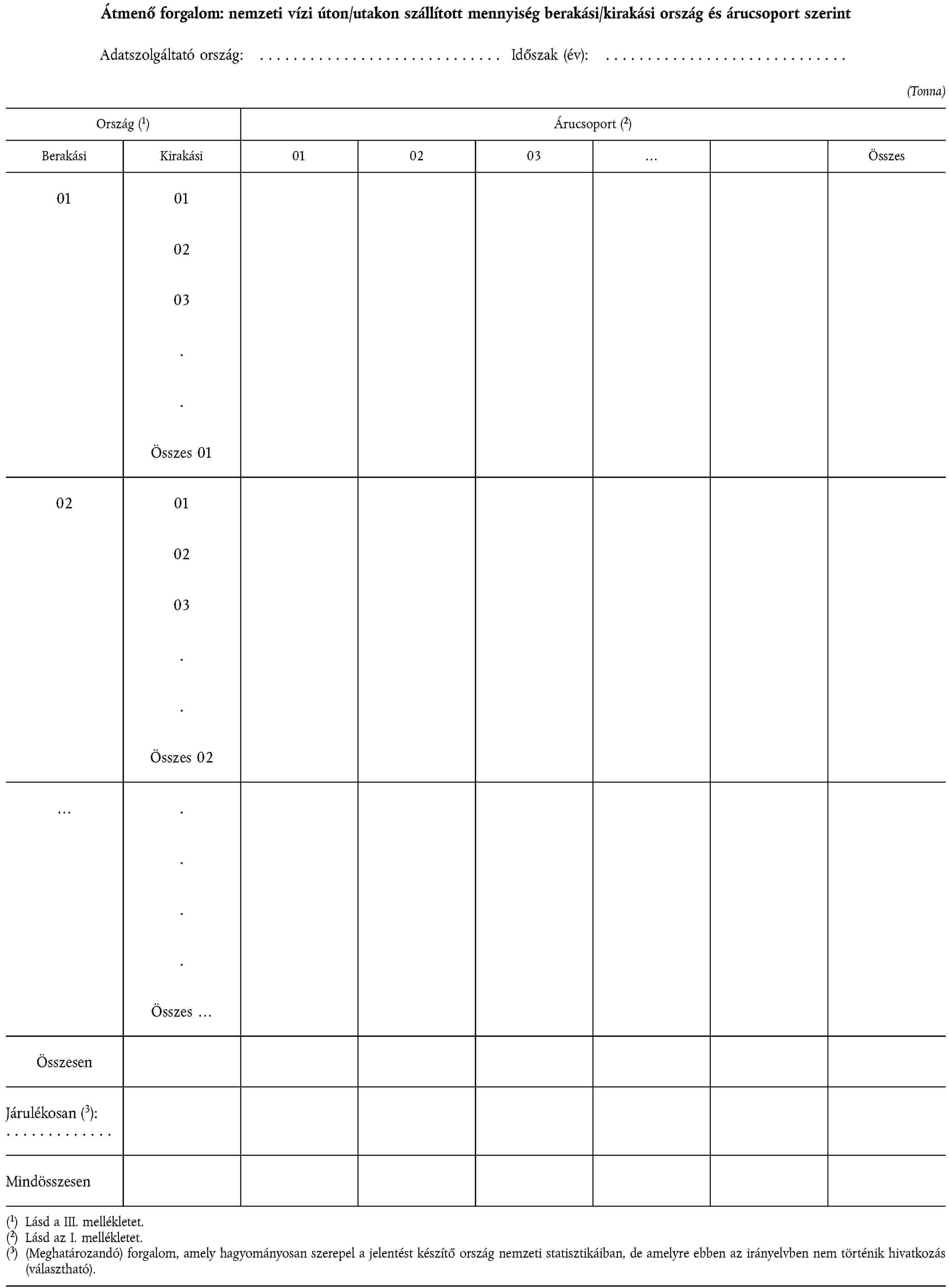- az átmenő forgalomban, ha az áru berakás, kirakás, illetve átrakás nélkül halad át a jelentést készítő tagállamon.
