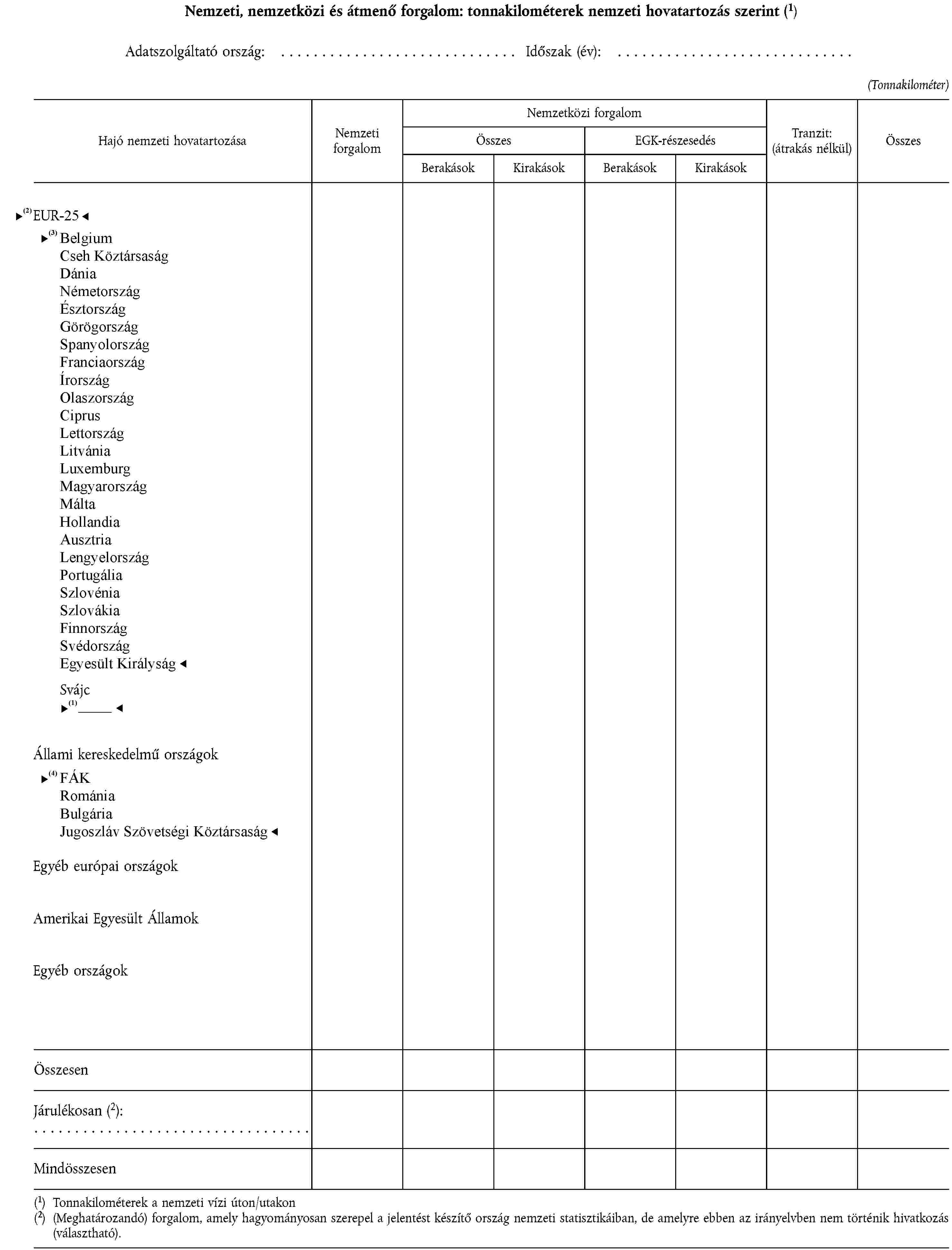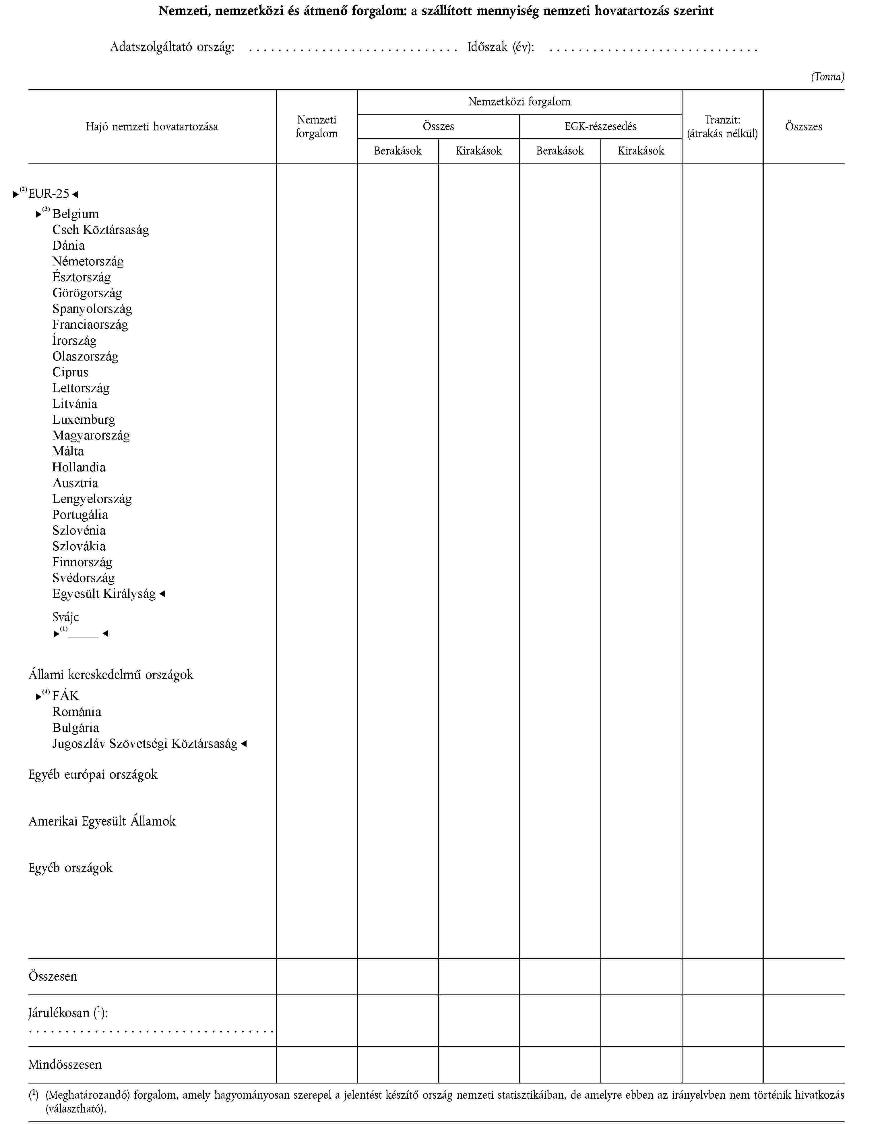 - a nemzetközi forgalomban, ha az árut a jelentést készítő tagállamban vagy csak berakják, vagy csak kirakják, különbséget téve a berakott és a kirakott áruk között,
