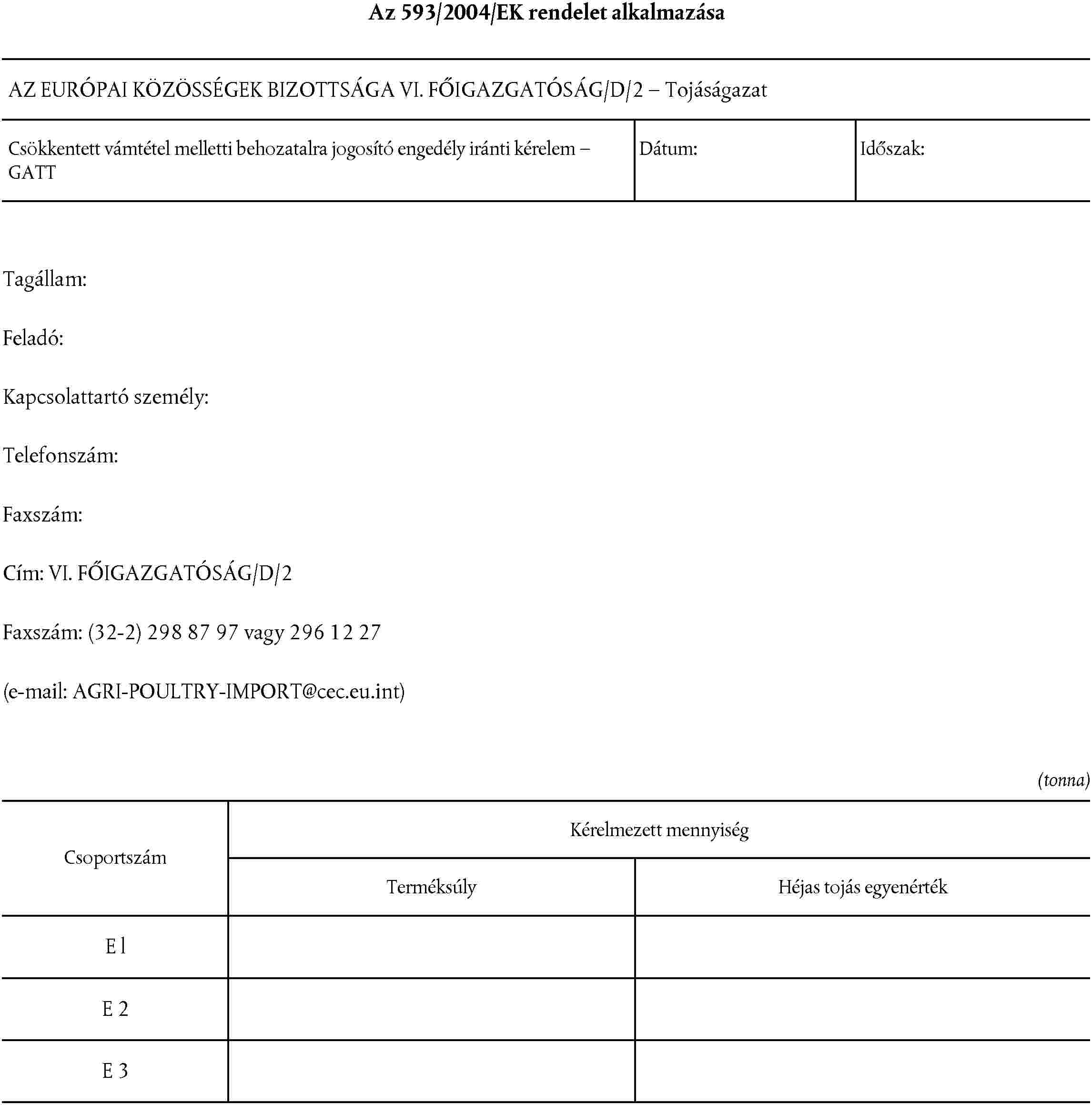 b) az engedélykérelem az e rendelet I. mellékletében megjelölt csoportok közül egynél többre nem terjedhet ki. Az engedélykérelem azonban különböző KN-kódok alá tartozó és egyetlen országból származó több termékre is kiterjedhet; ilyen esetben az összes KN-kódot a 16. rovatban, a megnevezéseket pedig a 15. rovatban kell feltüntetni. Az E2. és E3. csoportok esetében a teljes mennyiséget héjas tojás egyenértékre kell átváltani.
