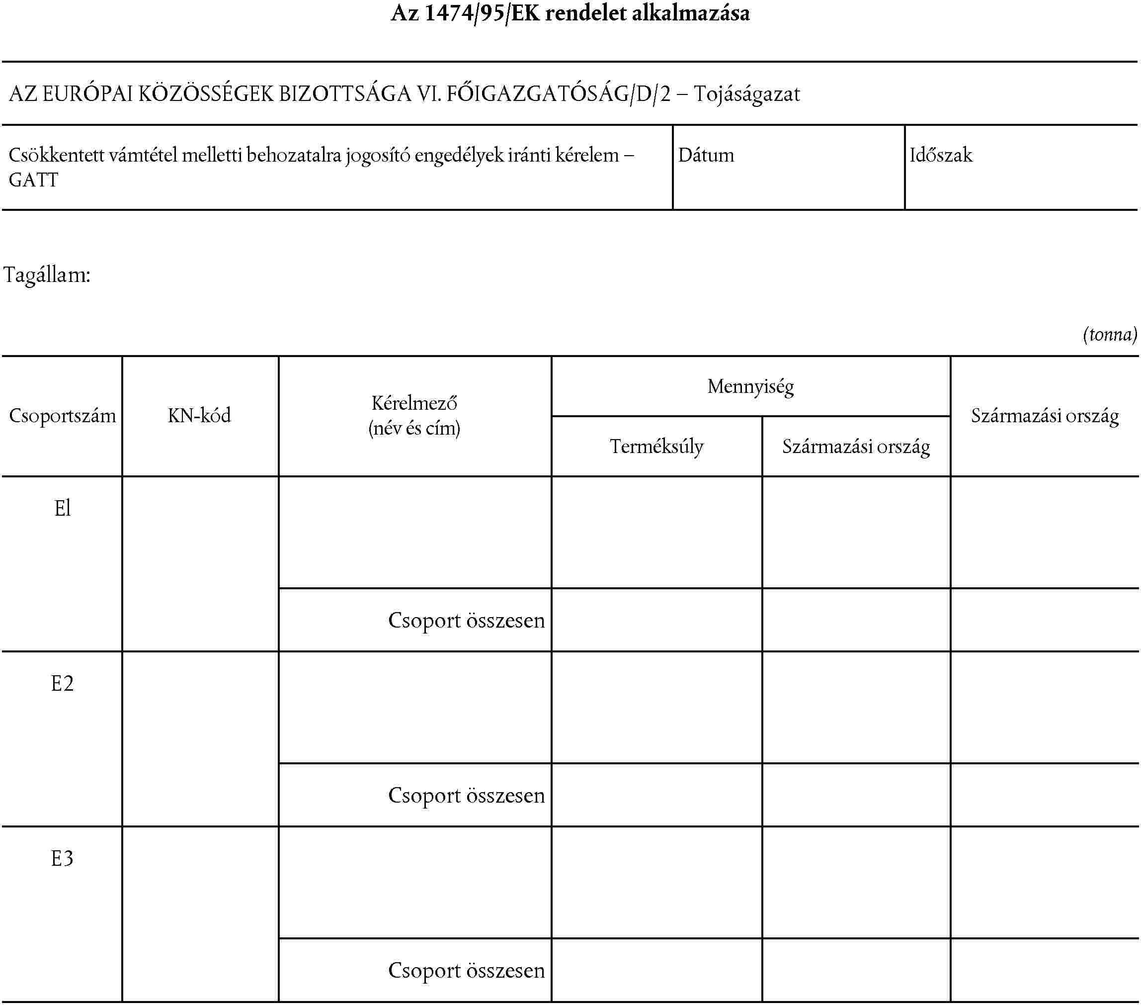 Csoportszám | KN-kód | Alkalmazandó KVT vámtétel (euró/terméksúly tonna) | Vámkontingensek (1995.7.1-jétől 1996.6.30-ig) |