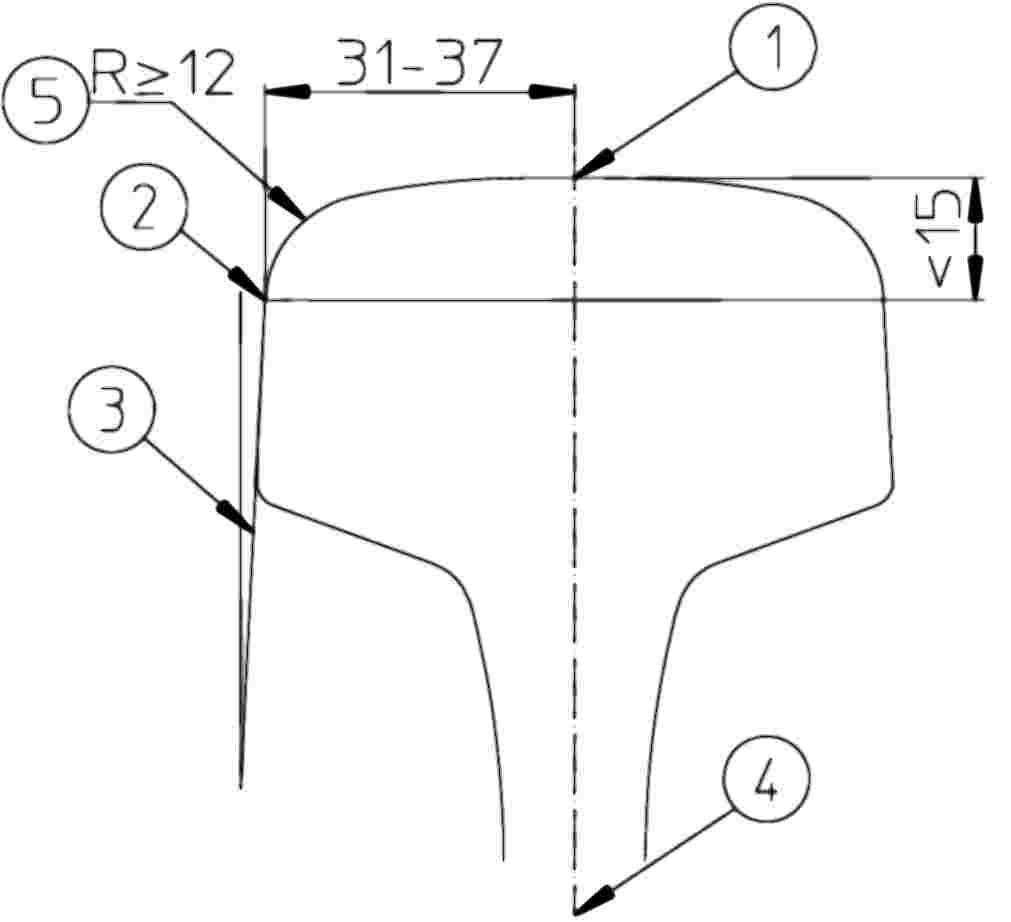 A nyomcsatorna mélysége/Flangeway depth/Rillentiefe/Profondeur d’ornière | 4.2.6.2. f) | A futófelület és a nyomcsatorna alja közötti távolság (lásd az alábbi 5. ábrán a 6. méretet). |