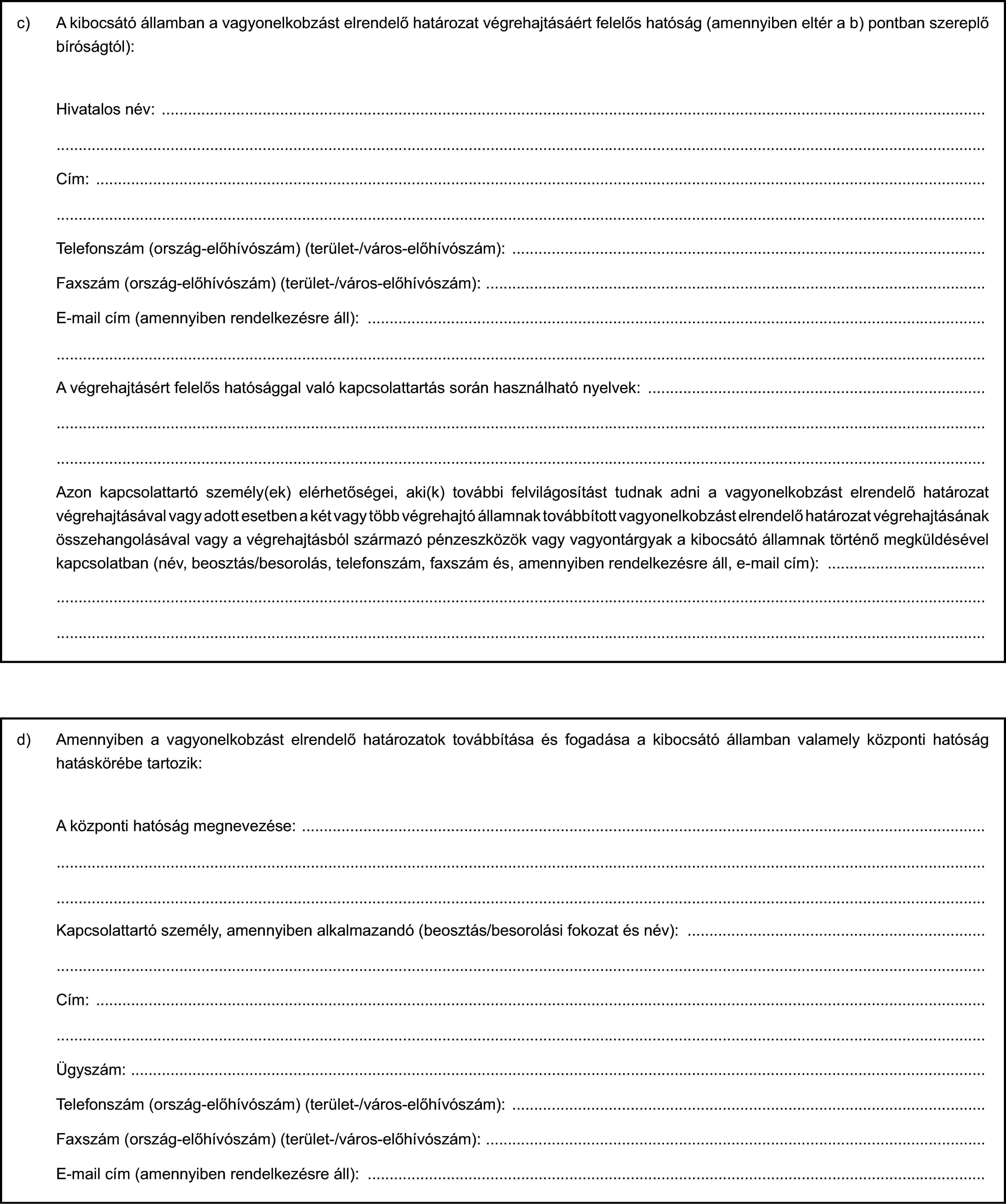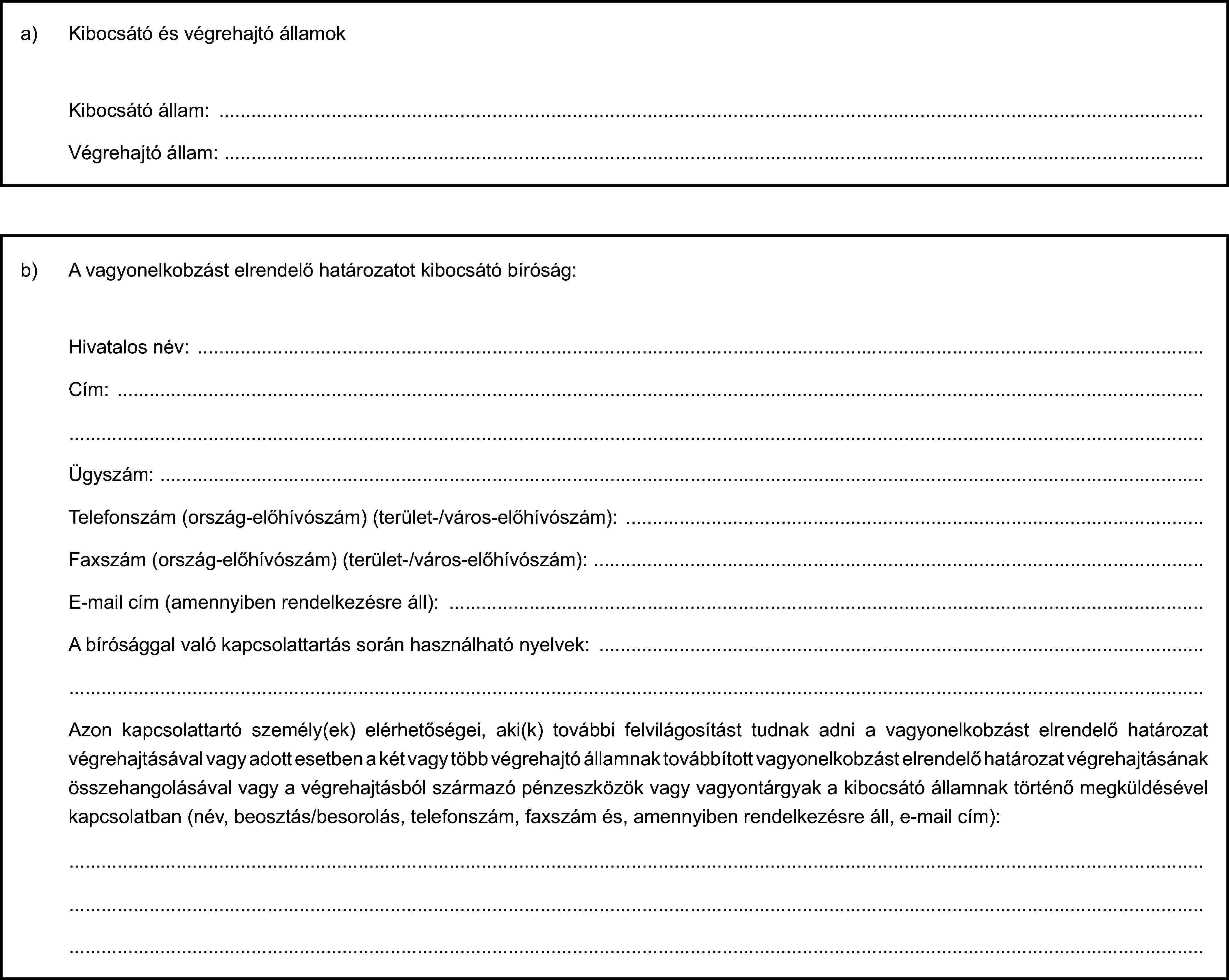 b) amennyiben a vagyonelkobzást elrendelő határozat a kibocsátó államban vagy valamely más végrehajtó államban egészben vagy részben végrehajtásra került. Meg kell határozni azt az összeget, amelyre vonatkozóan a vagyonelkobzást elrendelő határozat végrehajtása még nem történt meg;