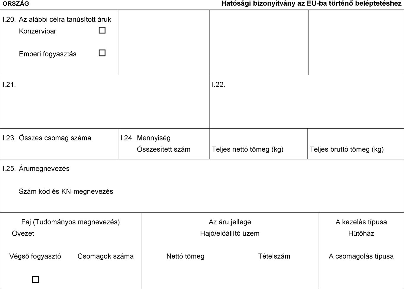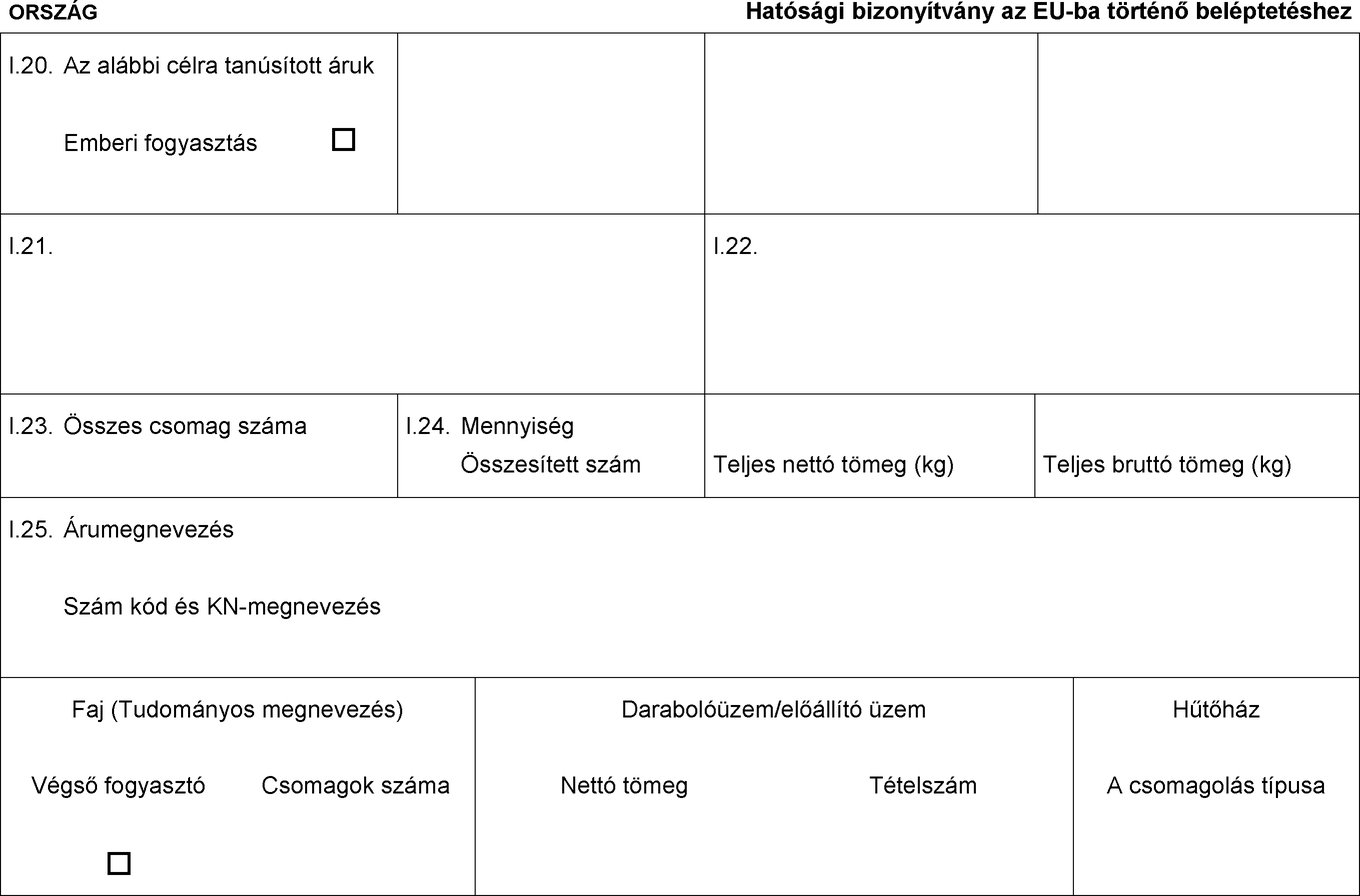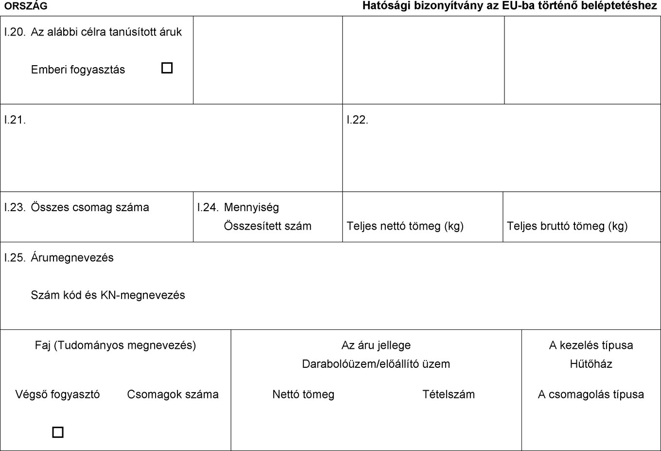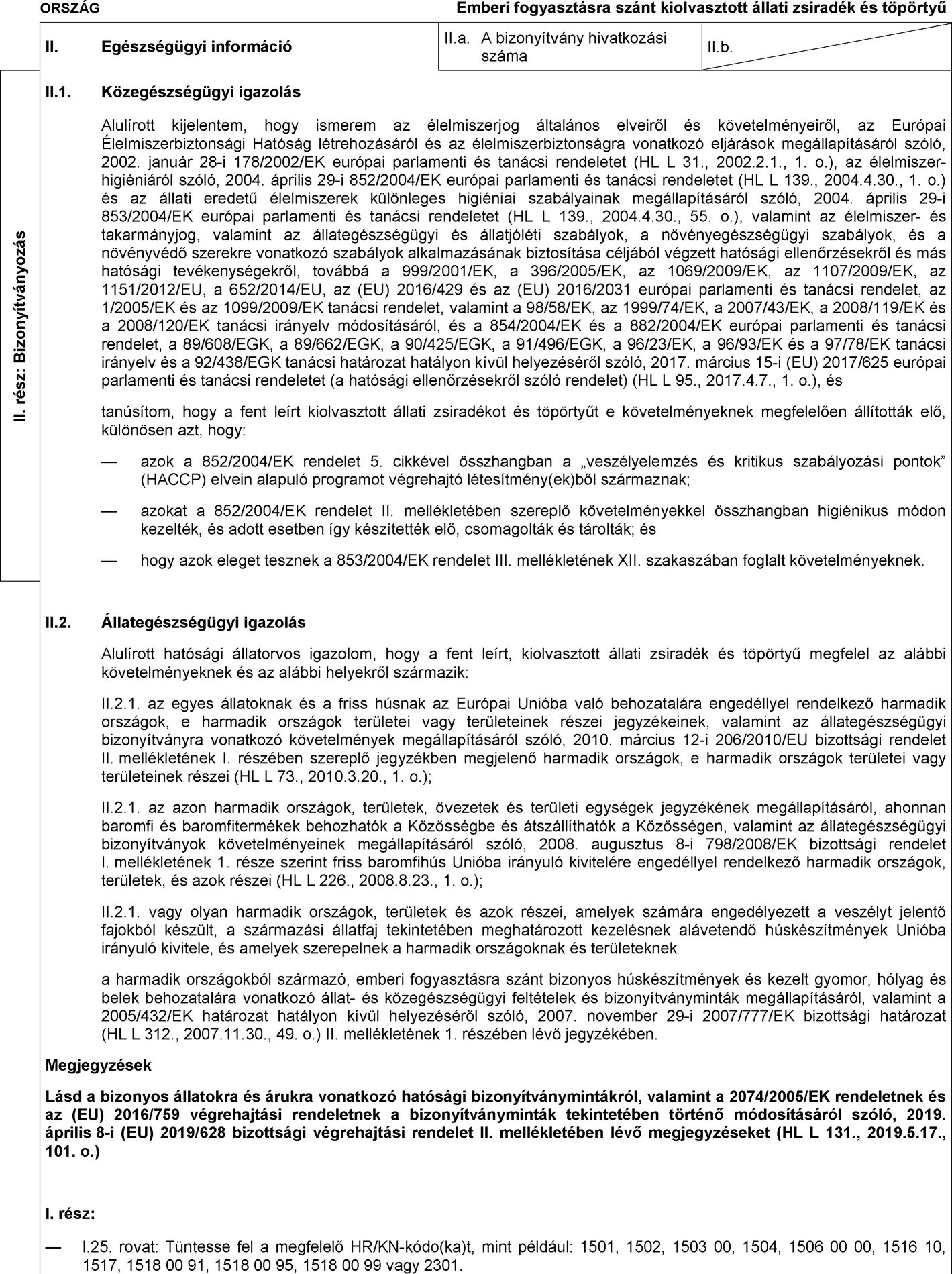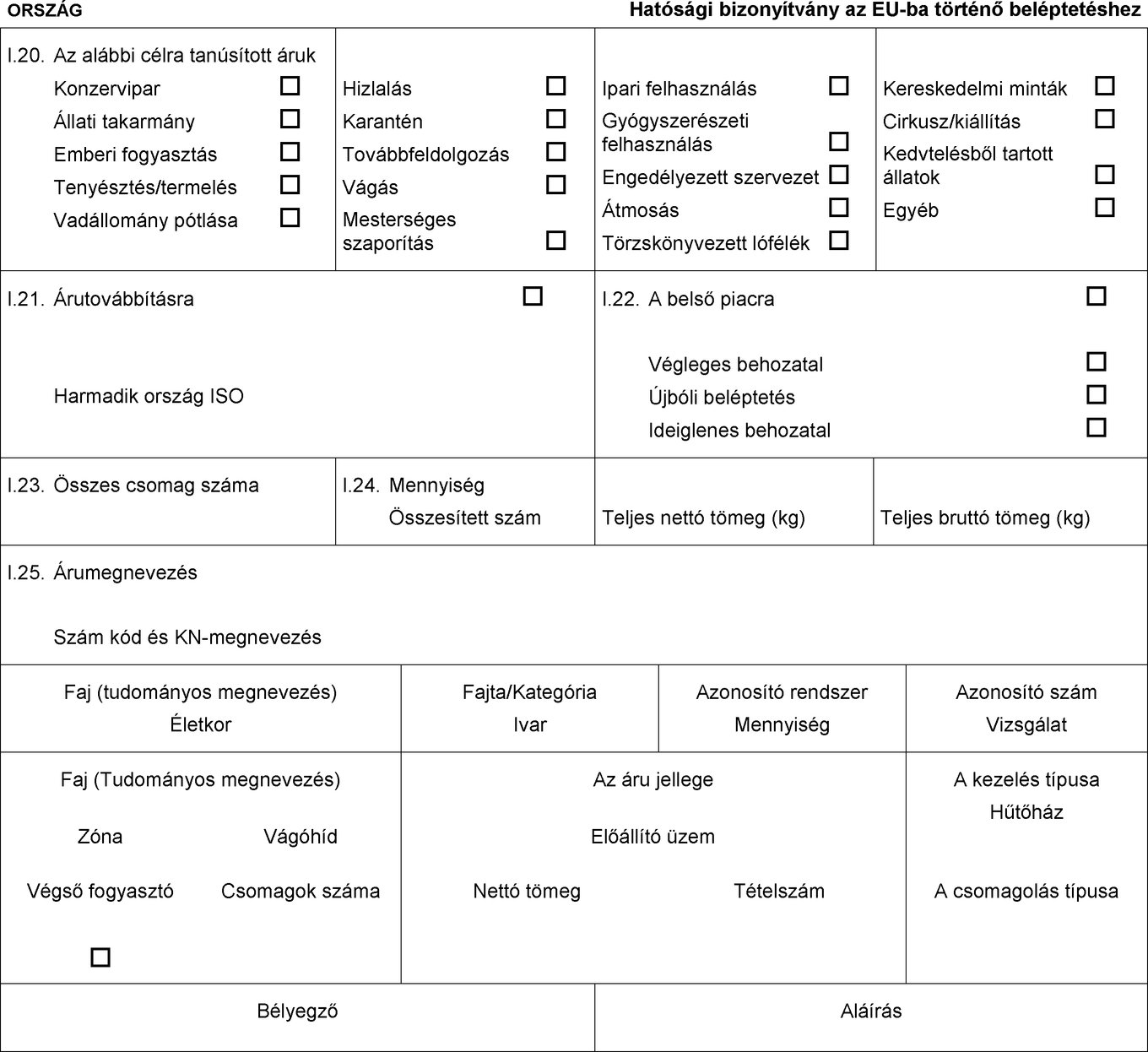 - I.25. rovat: Tüntesse fel a megfelelő HR/KN kódo(ka)t mint például: 0106 49 00, 0410 vagy 2106.