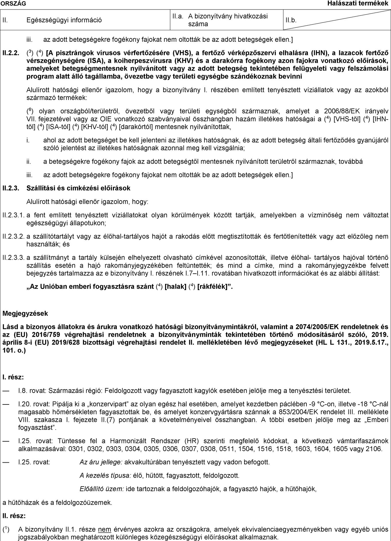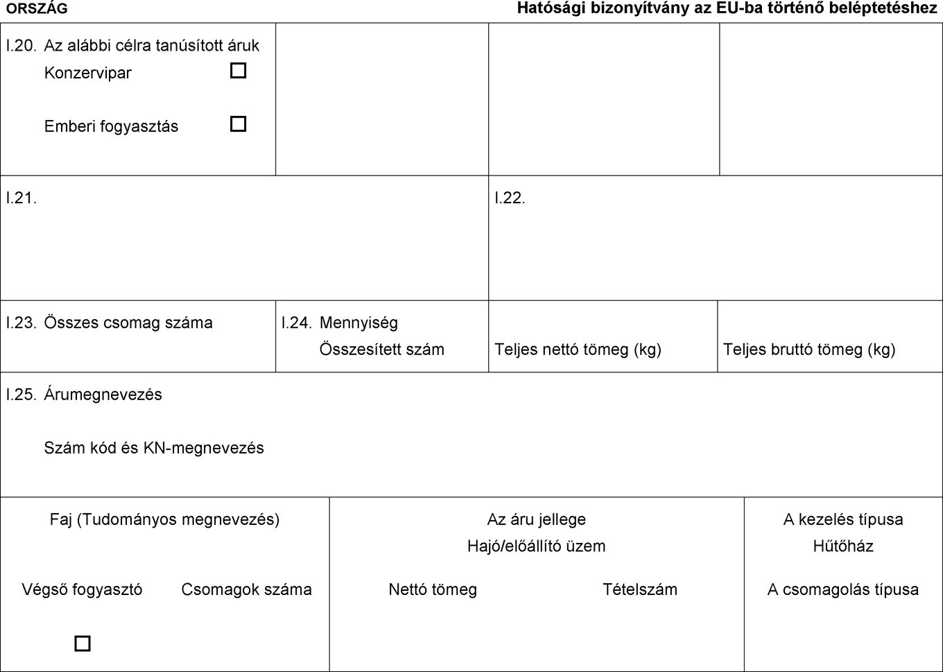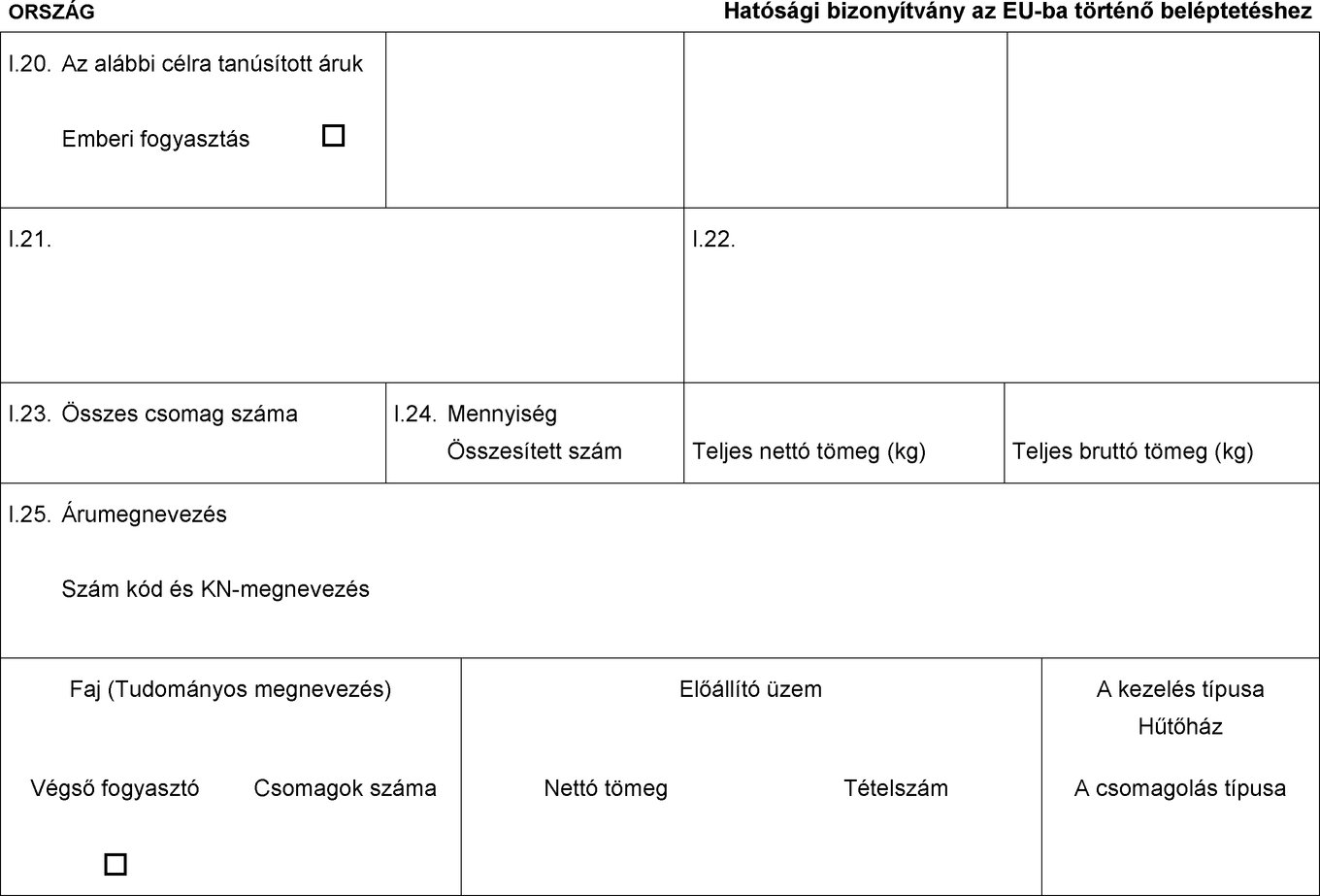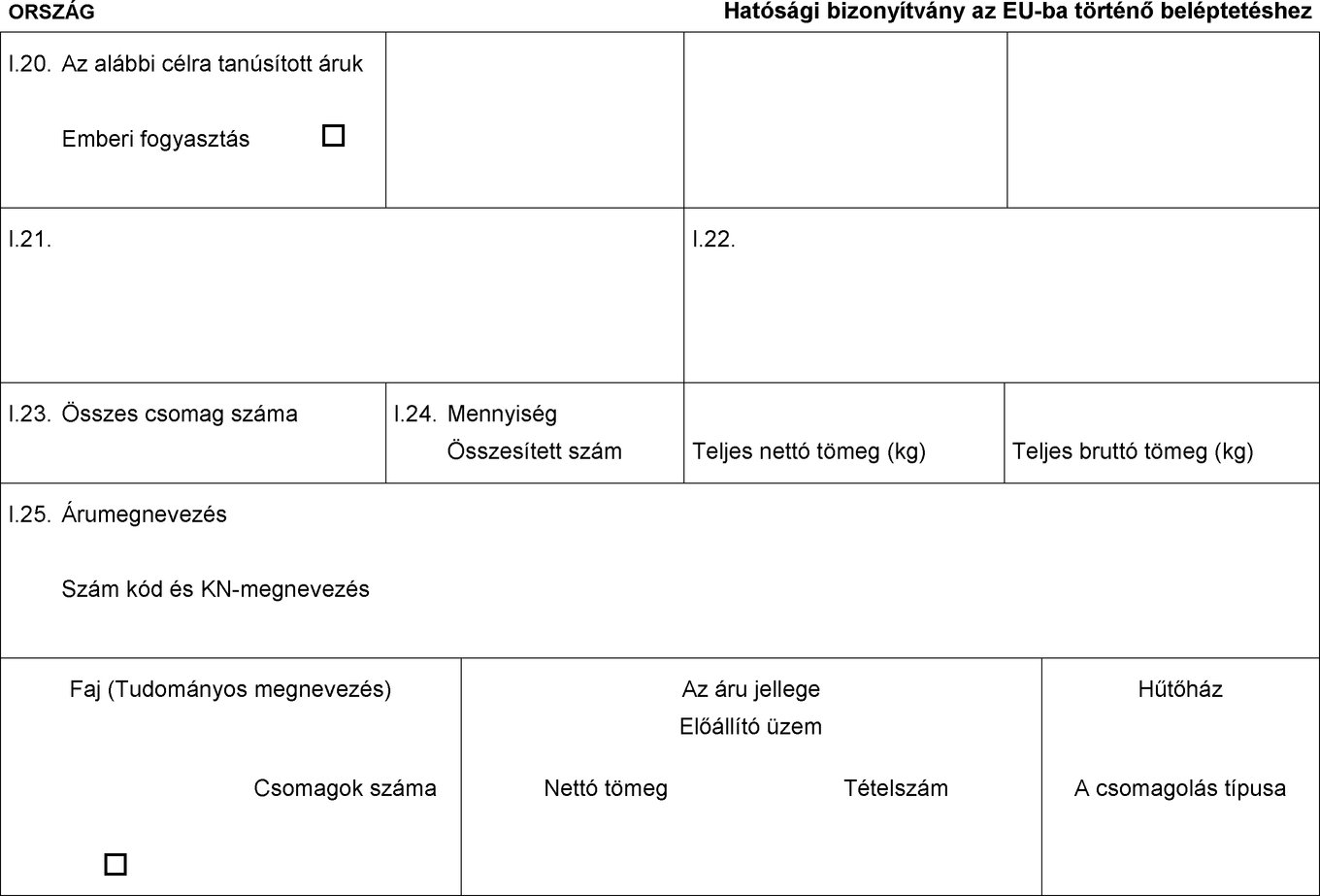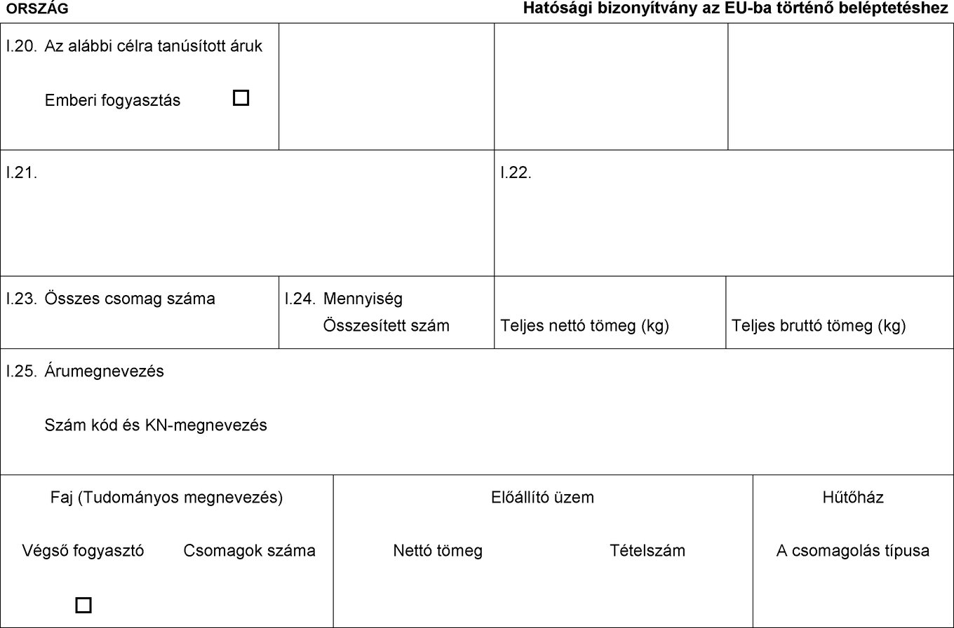 - I.25. rovat: Tüntesse fel a megfelelő HR/KN kódo(ka)t mint például: 0106 49 00, 0410 vagy 2106.