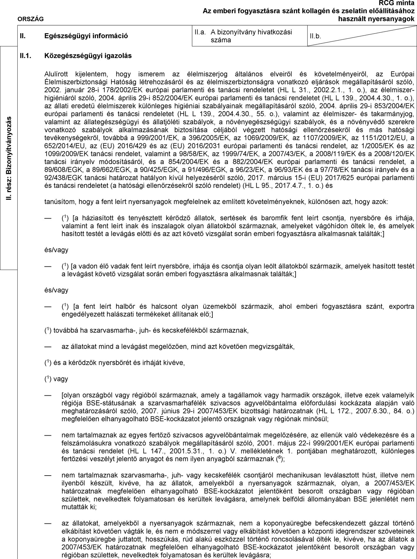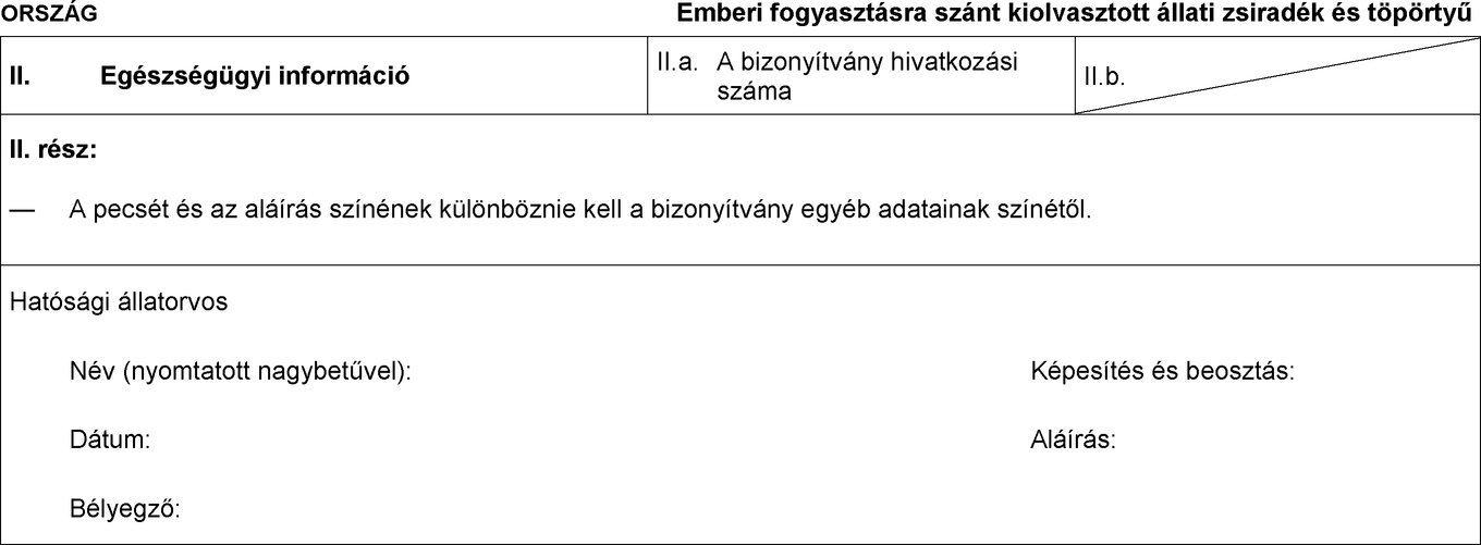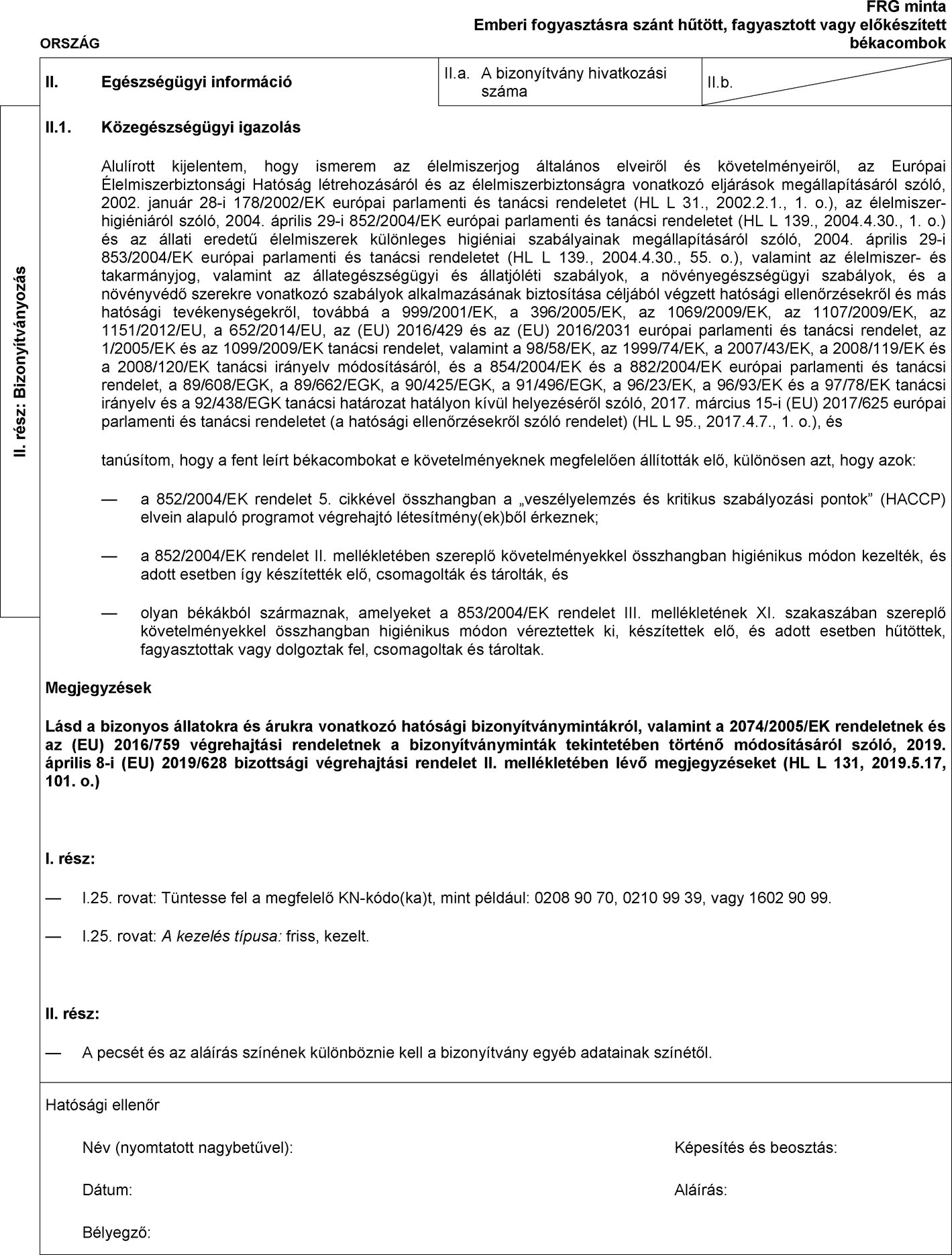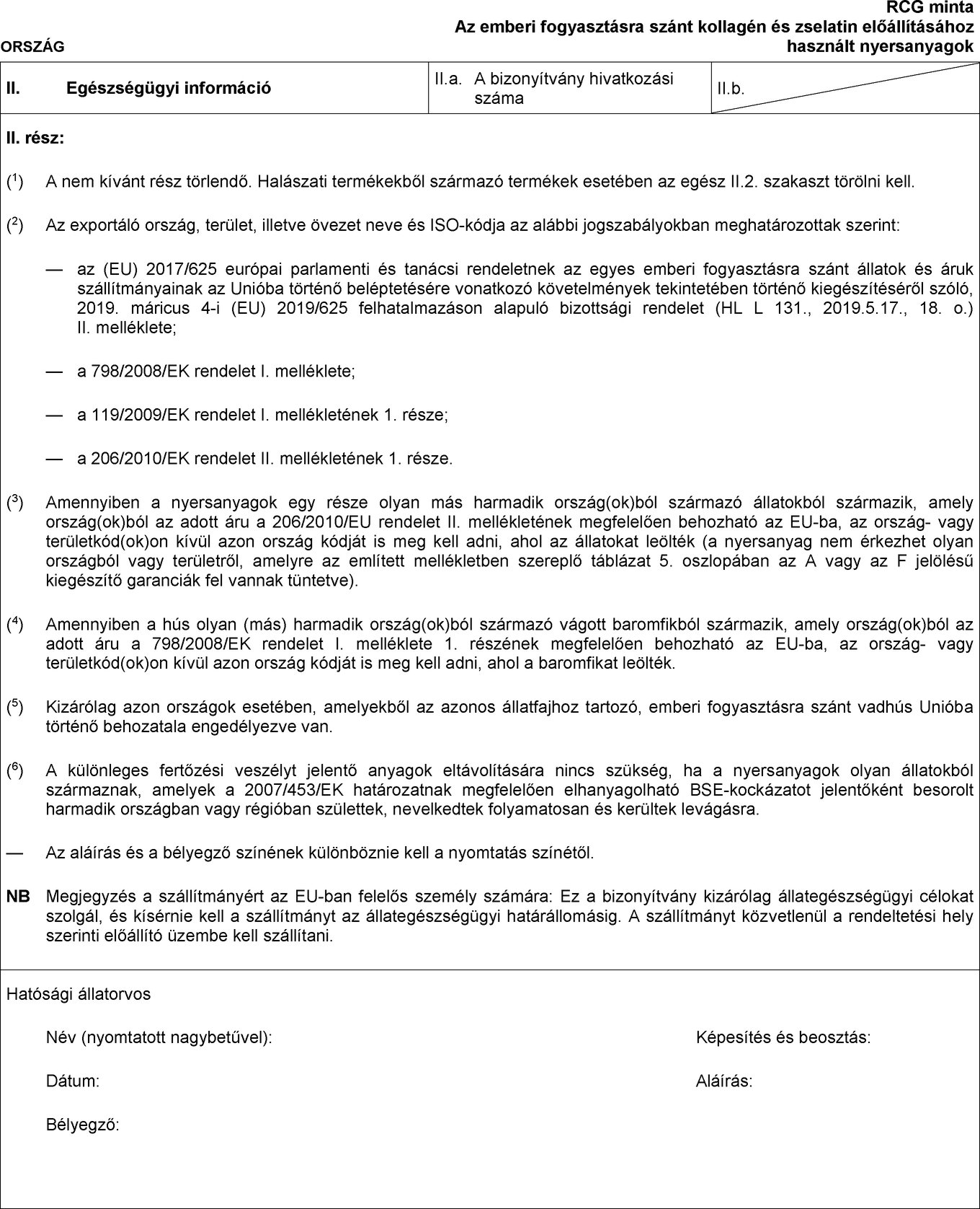 II. rész: HÍZOTT MÁJ ELŐÁLLÍTÁSÁRA SZÁNT BAROMFIRA ÉS KÉSLELTETVE ZSIGERELT BAROMFIRA VONATKOZÓ HATÓSÁGI BIZONYÍTVÁNYMINTA