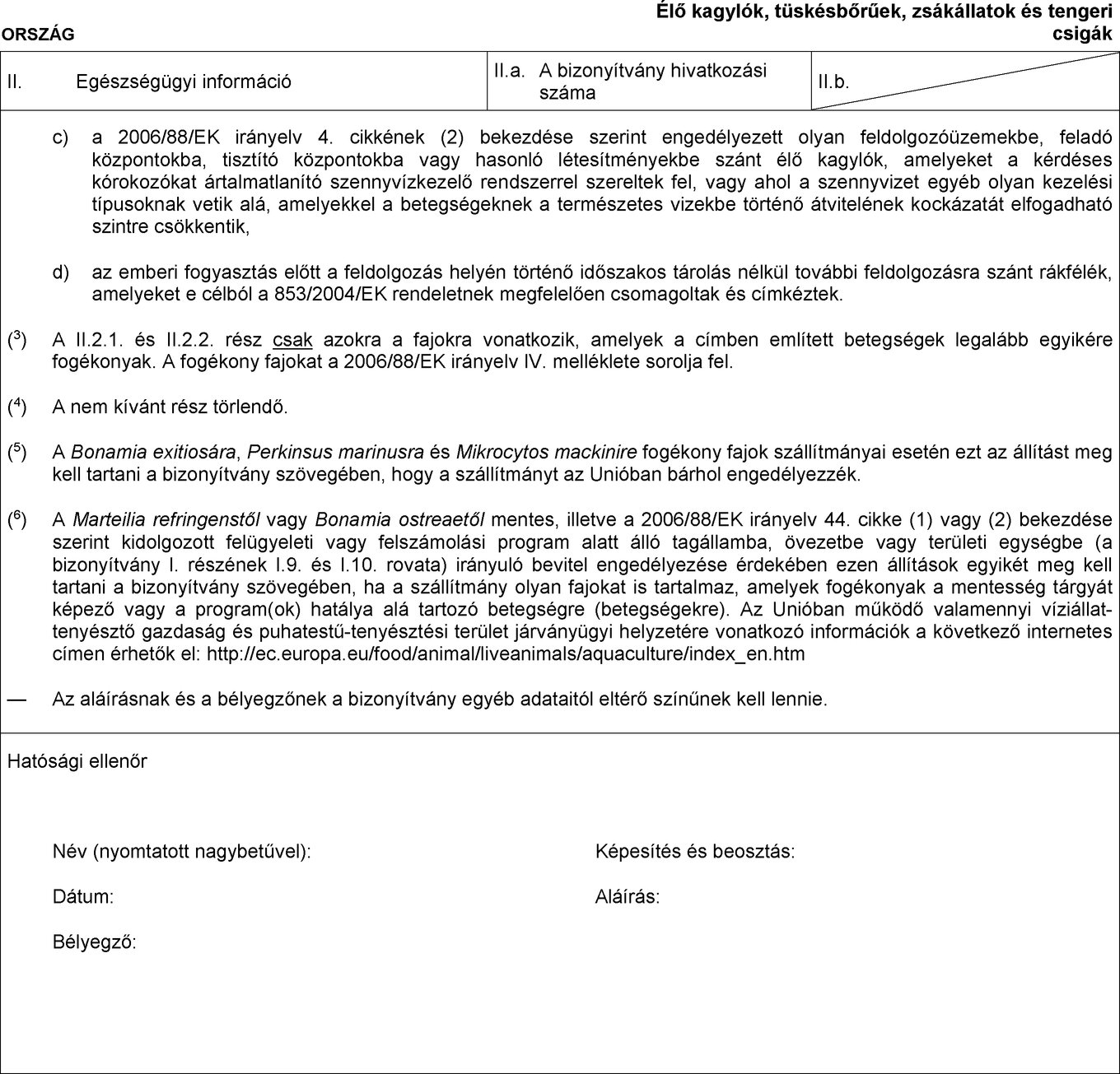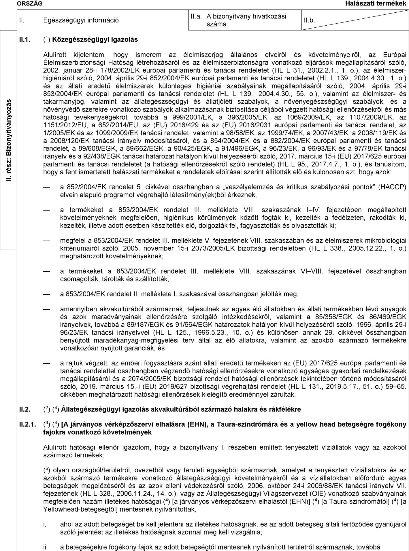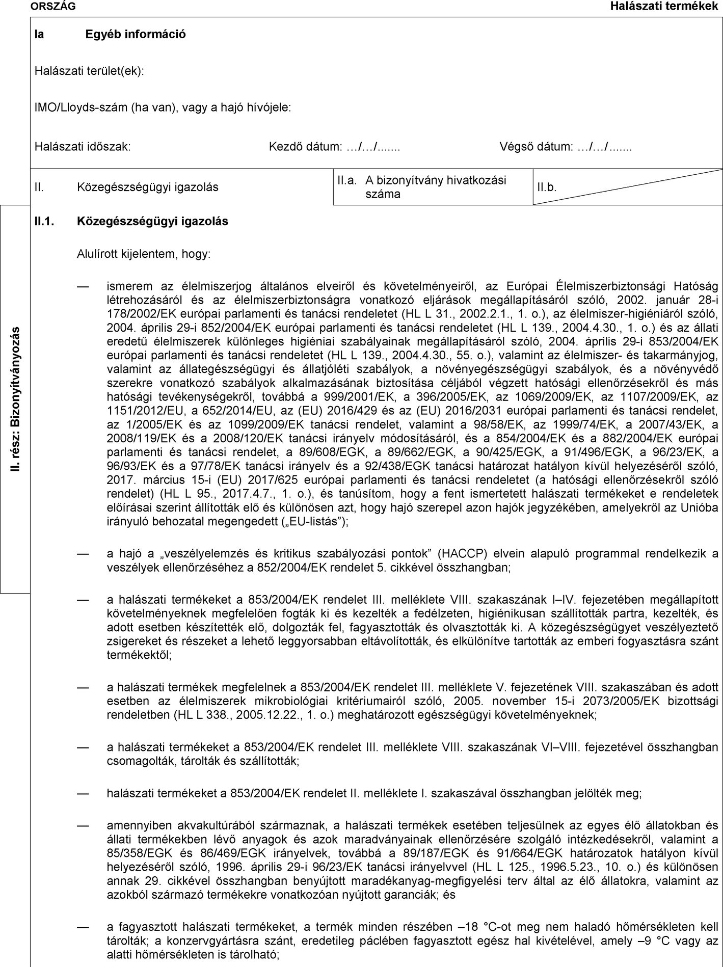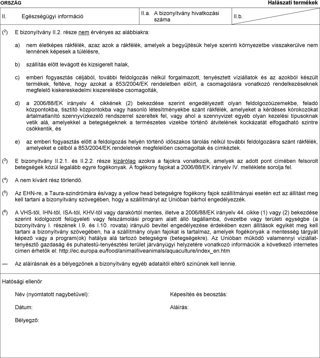 II. rész: HÍZOTT MÁJ ELŐÁLLÍTÁSÁRA SZÁNT BAROMFIRA ÉS KÉSLELTETVE ZSIGERELT BAROMFIRA VONATKOZÓ HATÓSÁGI BIZONYÍTVÁNYMINTA