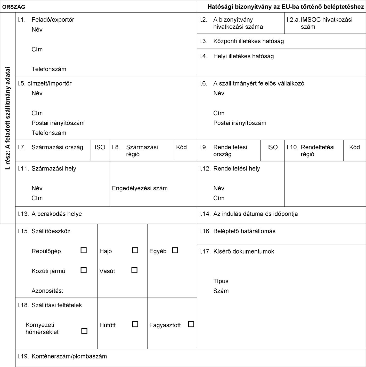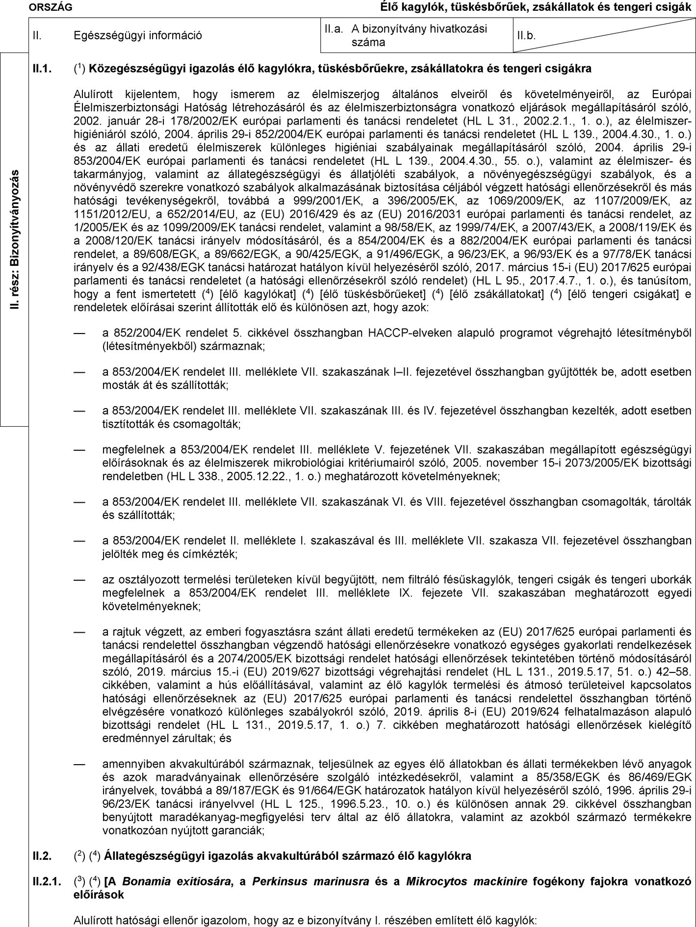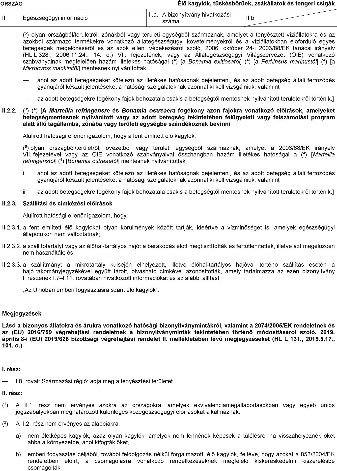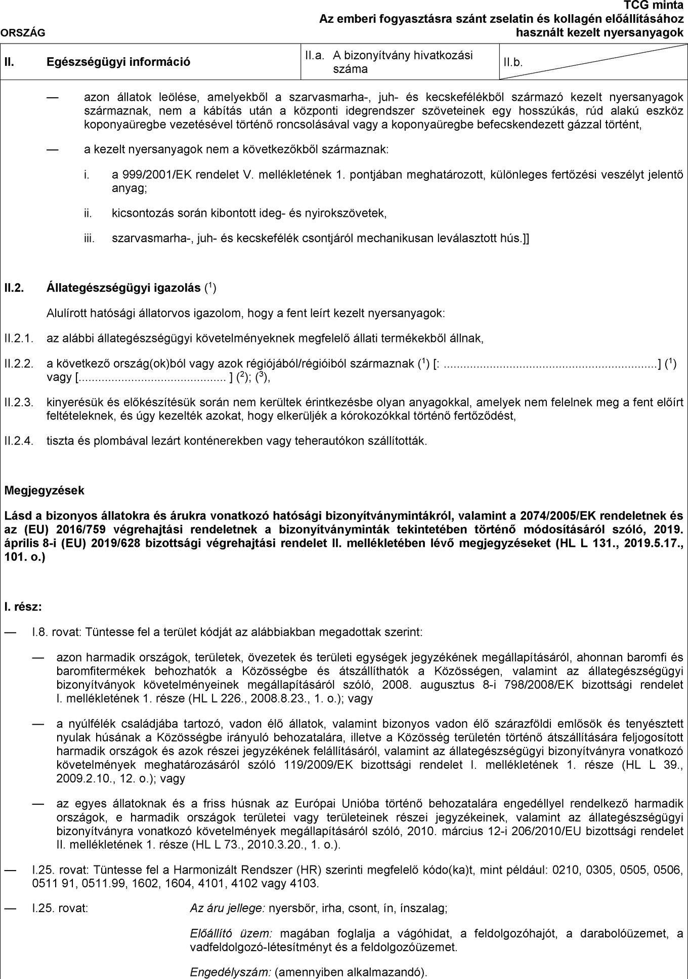 HATÓSÁGI BIZONYÍTVÁNYMINTA AZ EMBERI FOGYASZTÁSRA SZÁNT EGYÉB, AZ (EU) 2019/628 BIZOTTSÁGI VÉGREHAJTÁSI RENDELET 7-25. CIKKE ÁLTAL NEM ÉRINTETT ÁLLATI EREDETŰ TERMÉKEK UNIÓBA TÖRTÉNŐ, FORGALOMBA HOZATAL CÉLJÁBÓL VALÓ BELÉPTETÉSÉHEZ