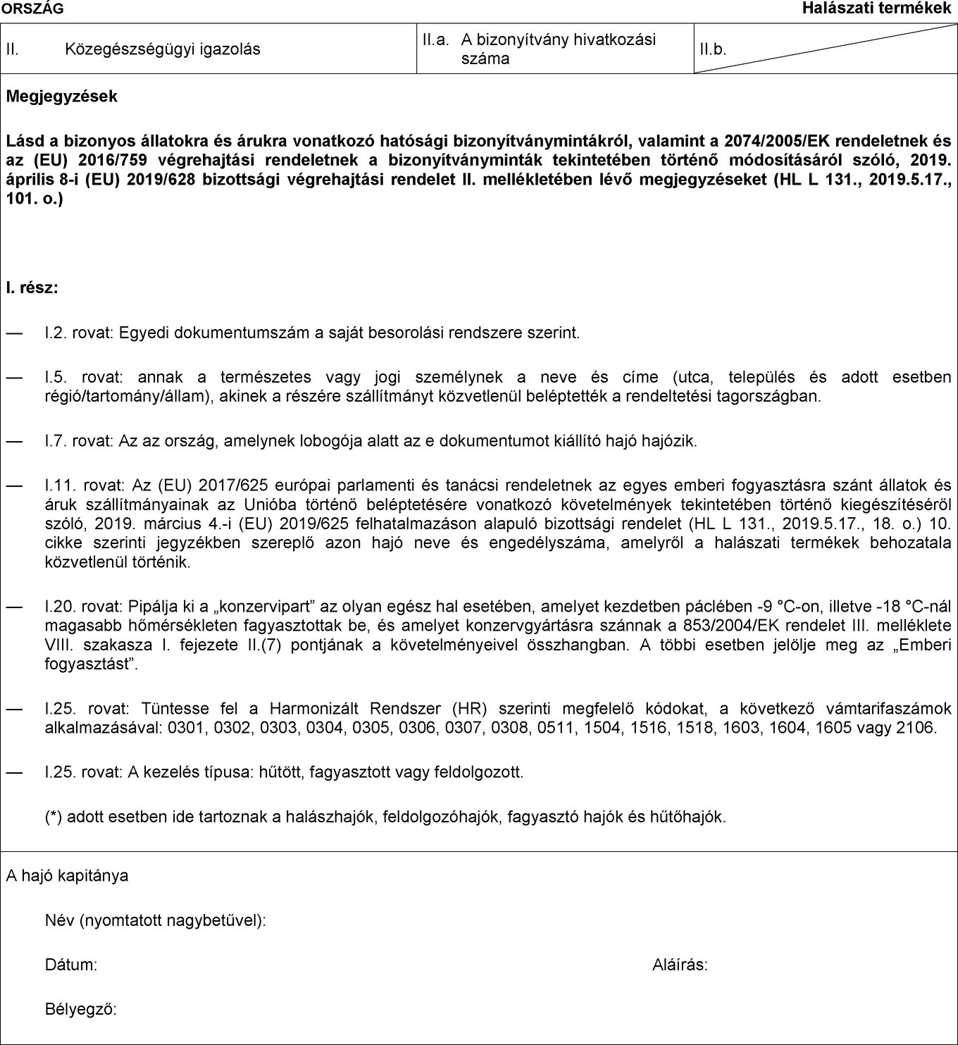 A Bizottság (EU) 2019/628 végrehajtási rendelete (2019. április 8.) a bizonyos állatokra és árukra vonatkozó hatósági bizonyítványmintákról, valamint a 2074/2005/EK rendeletnek és az (EU) 2016/759 végrehajtási rendeletnek a bizonyítványminták tekintetében történő módosításáról