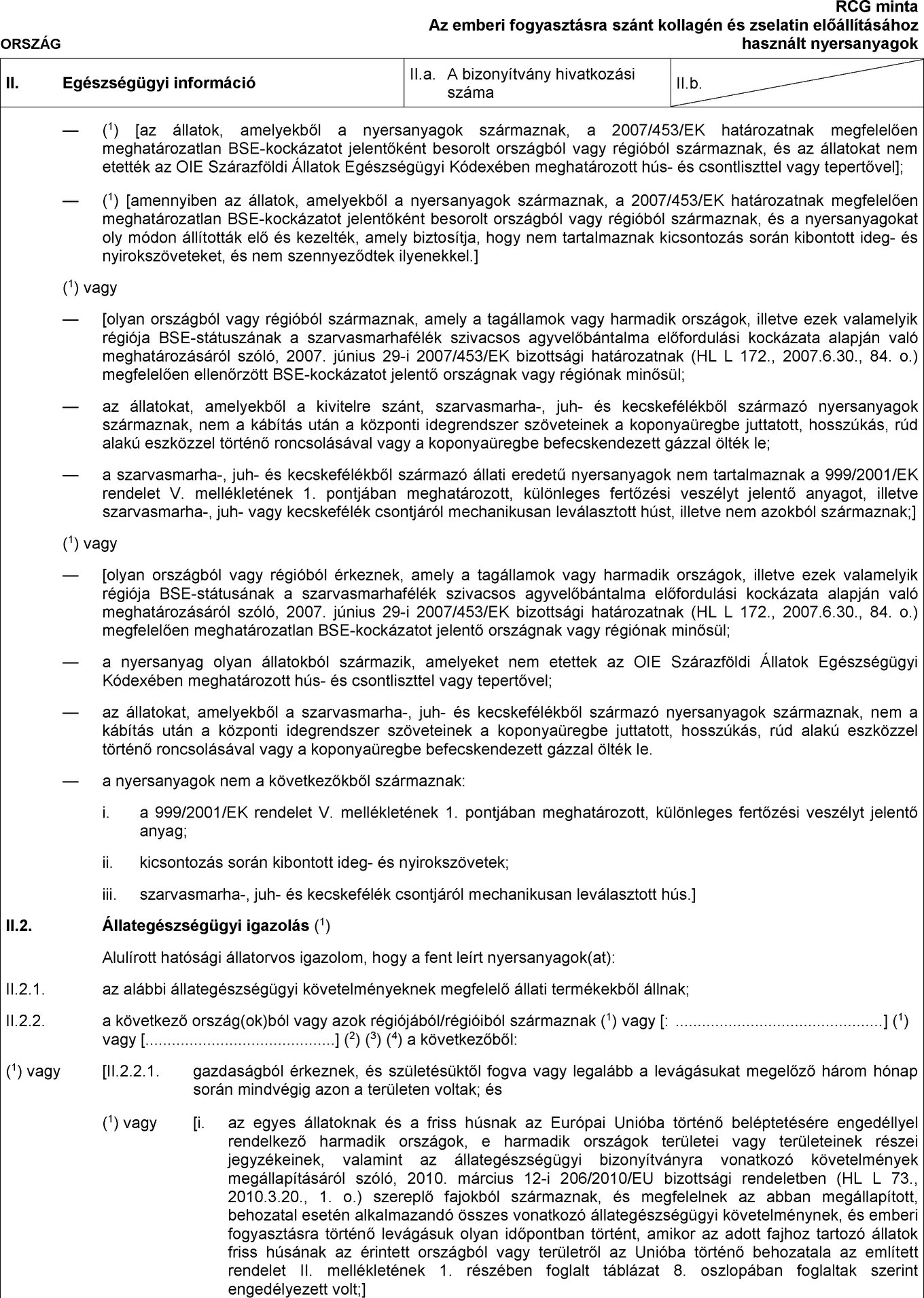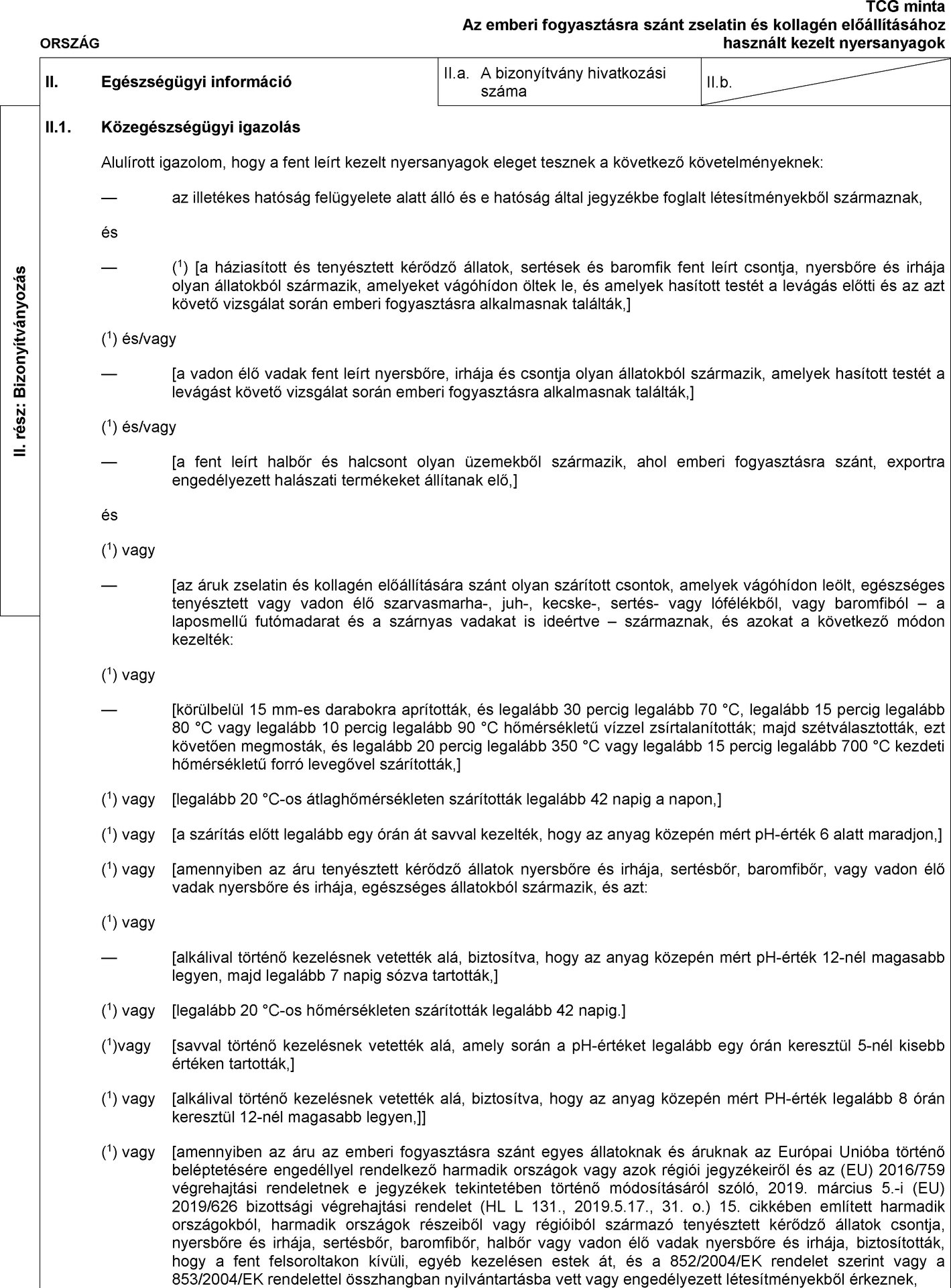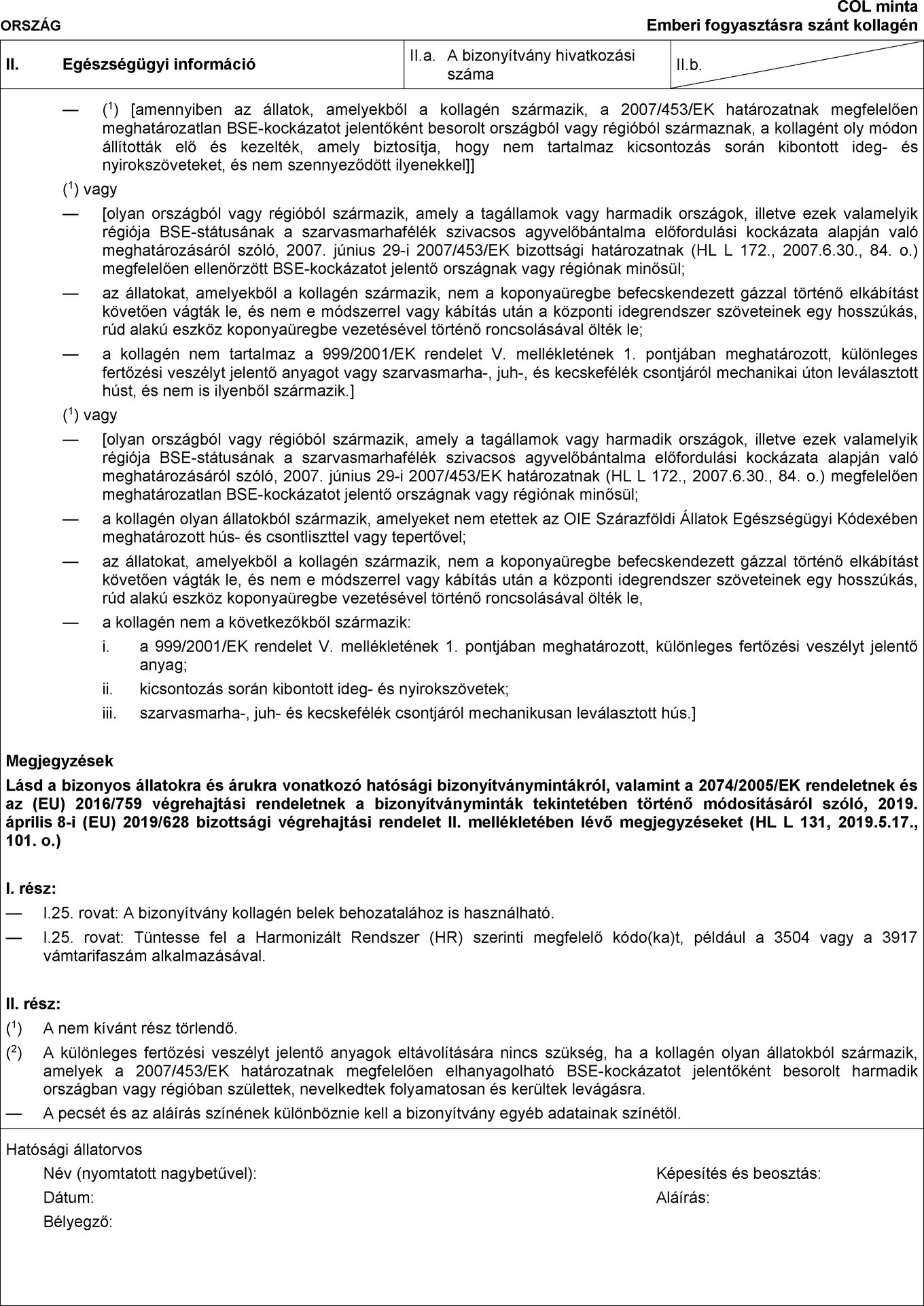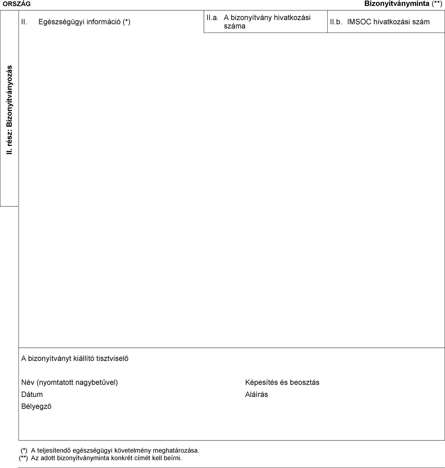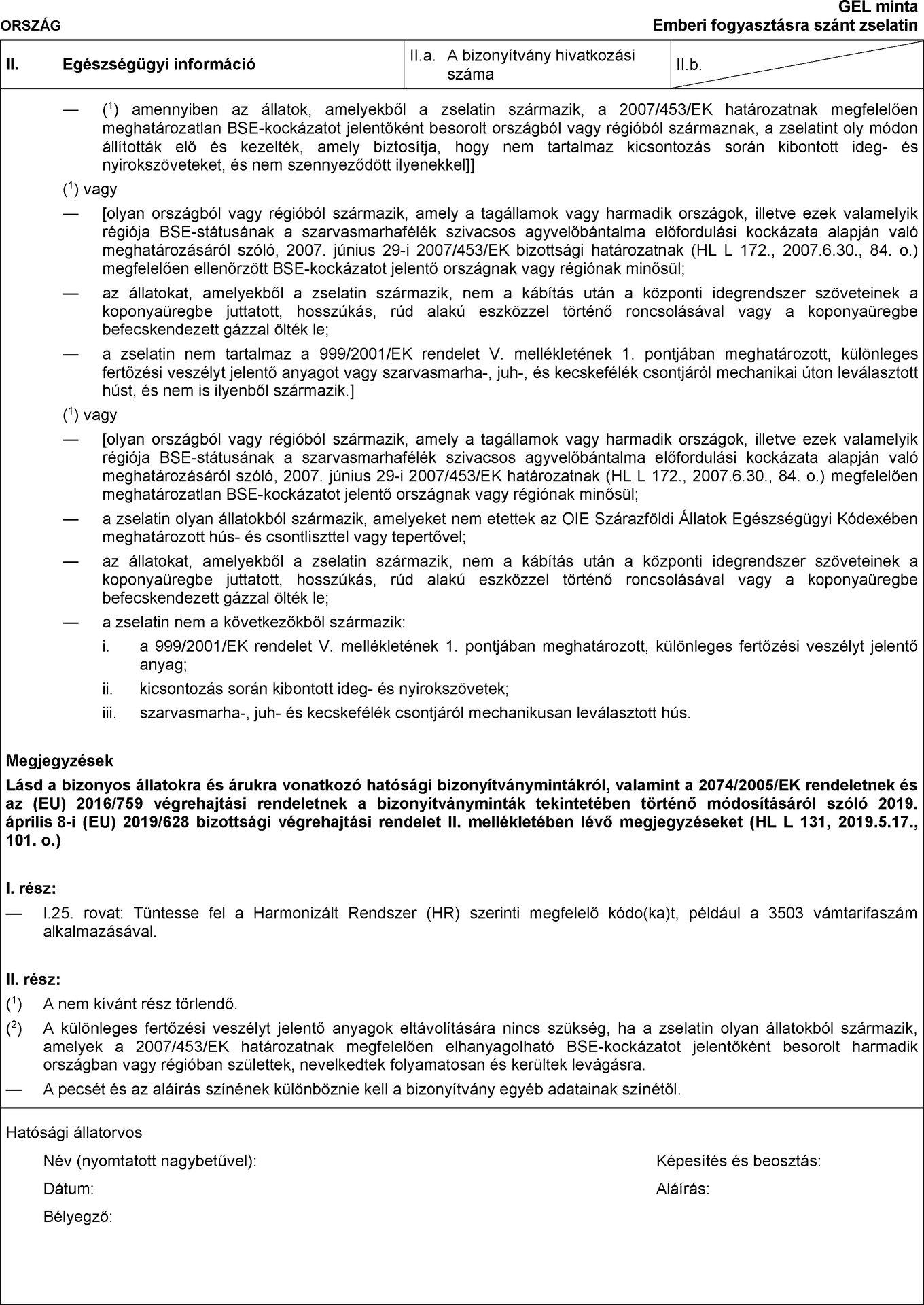 2. Amennyiben a bizonyítványminta nyilatkozatokat tartalmaz, a nem releváns nyilatkozatokat a bizonyítványt kiállító tisztviselő áthúzza, kézjegyével látja el és lebélyegzi, vagy azok teljes mértékben kikerülnek a bizonyítványból.