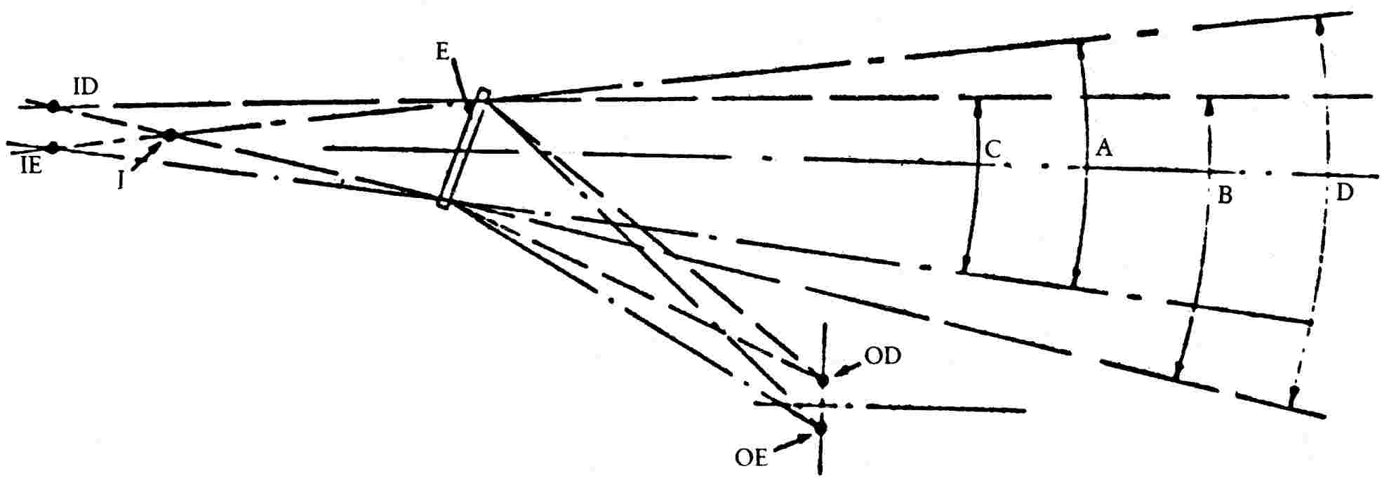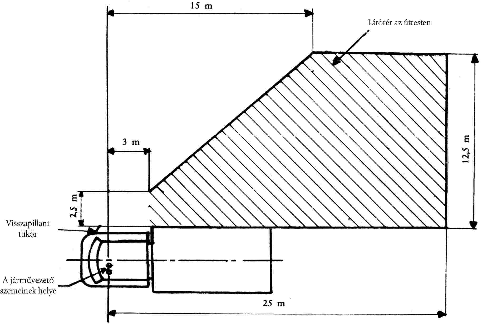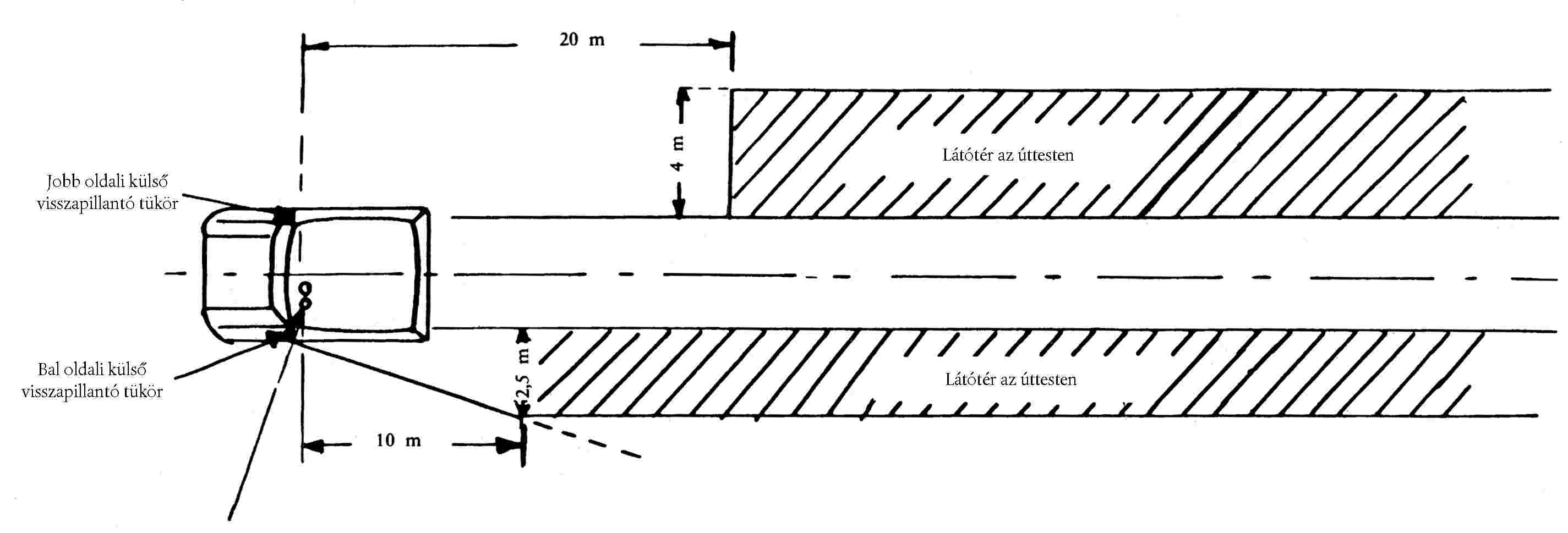 Ezenkívül a vezetőnek át kell tudnia tekinteni a vezető szemeinek helyétől hátrafelé mért 4 m távolságtól a 0.75 m széles útpályát egészen a horizontig (5. ábra).