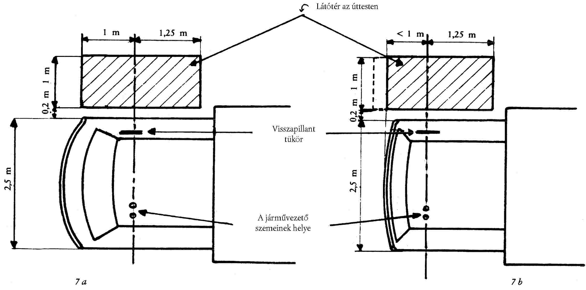 A látóteret úgy kell kialakítani, hogy a vezető a jármű külső oldalánál legalább az úttestnek azt a sík és vízszintes részét át tudja tekinteni, amelyet a következő (a 7/a és 7/b ábrán látható) függőleges síkok határolnak: