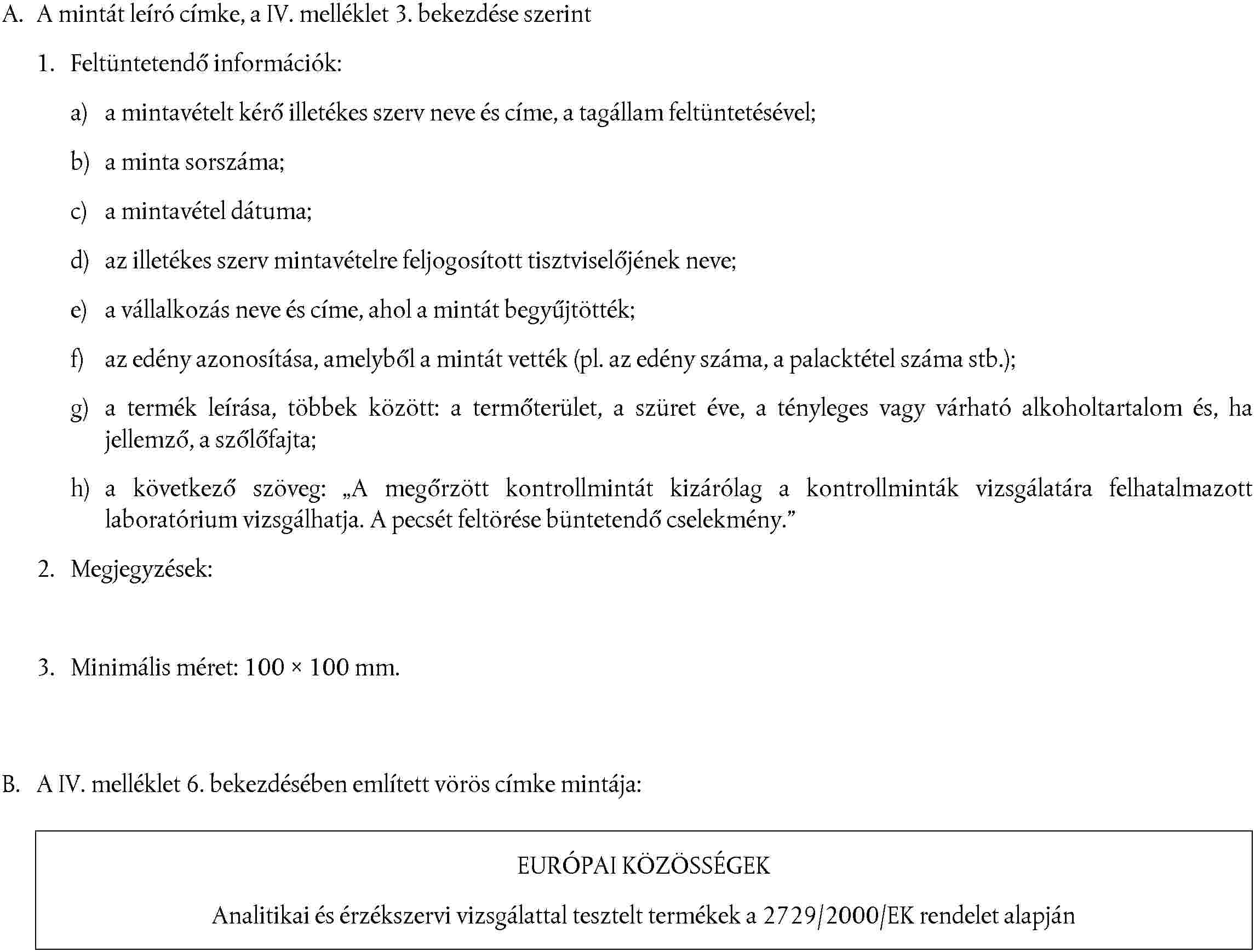 3. Minden mintát el kell látni egy, az V. melléklet A. részének megfelelő címkével.