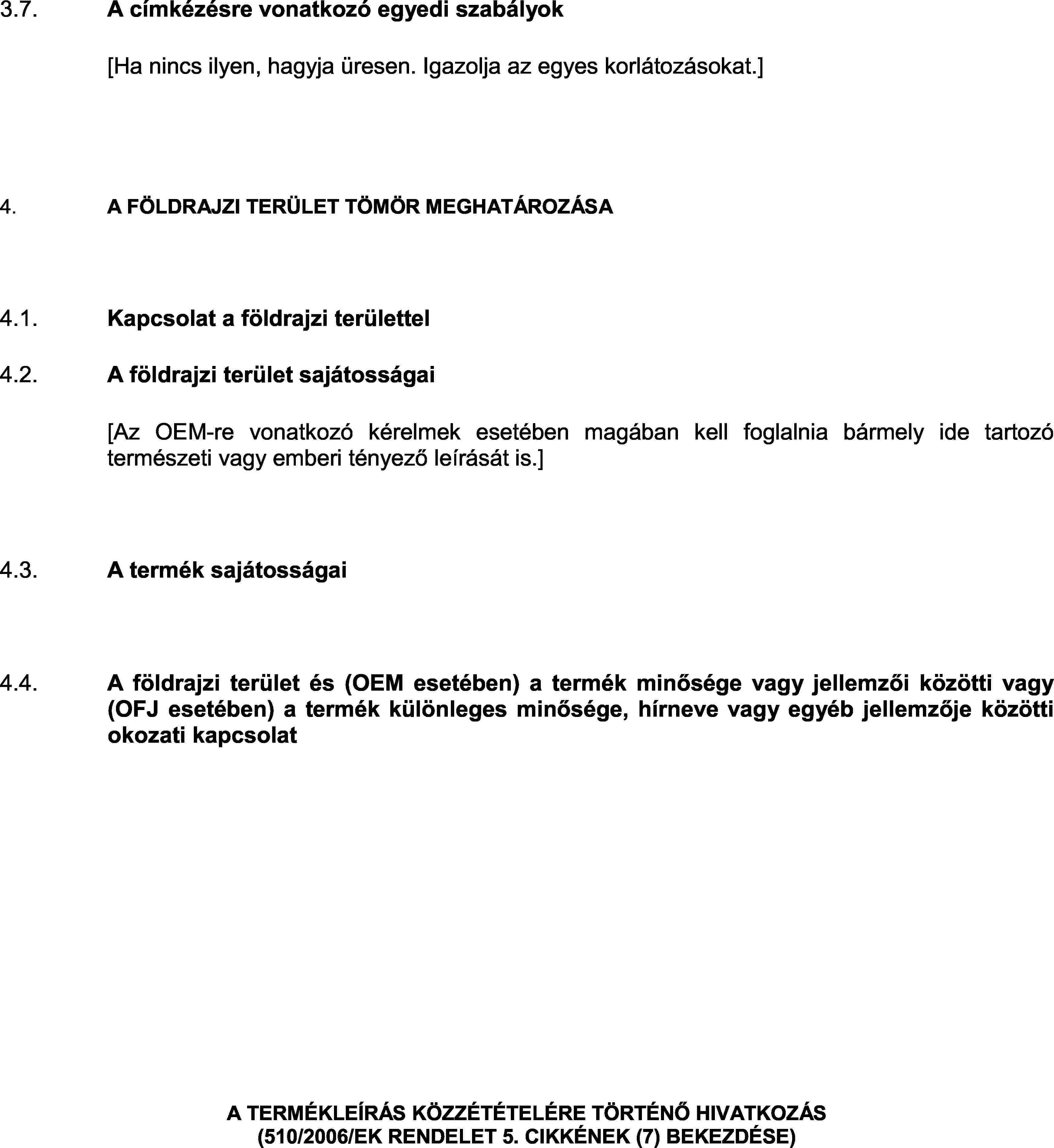 2. Az eredetmegjelölésre tekintettel a termékleírásban meg kell határozni:
