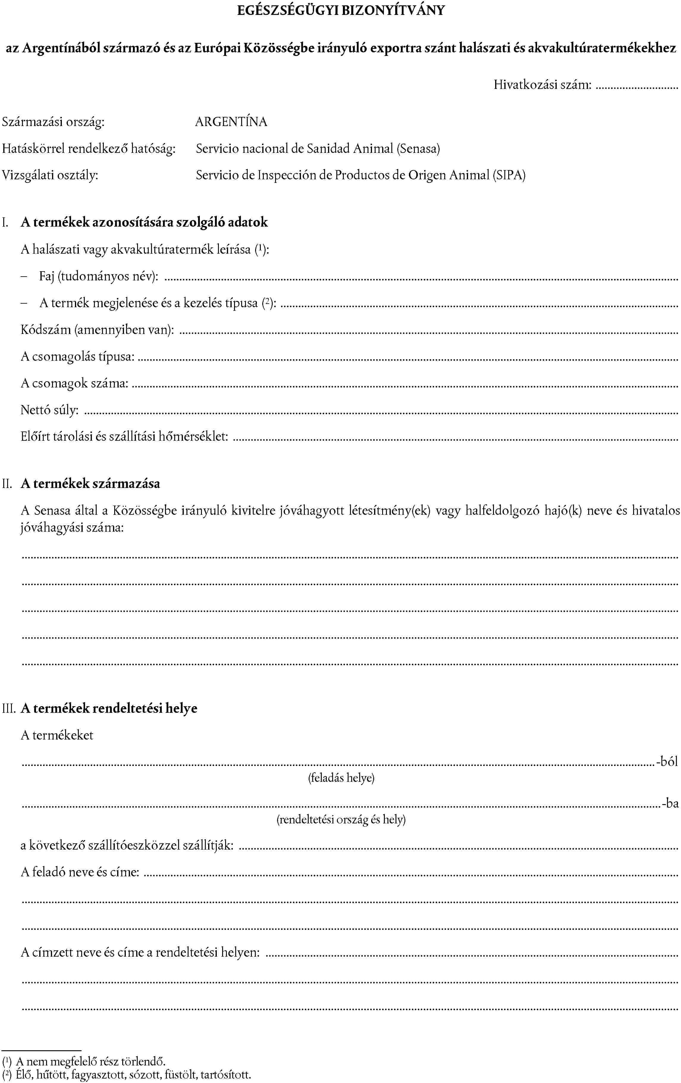 Az Argentínából származó halászati termékeknek az alábbi feltételeknek kell megfelelniük: