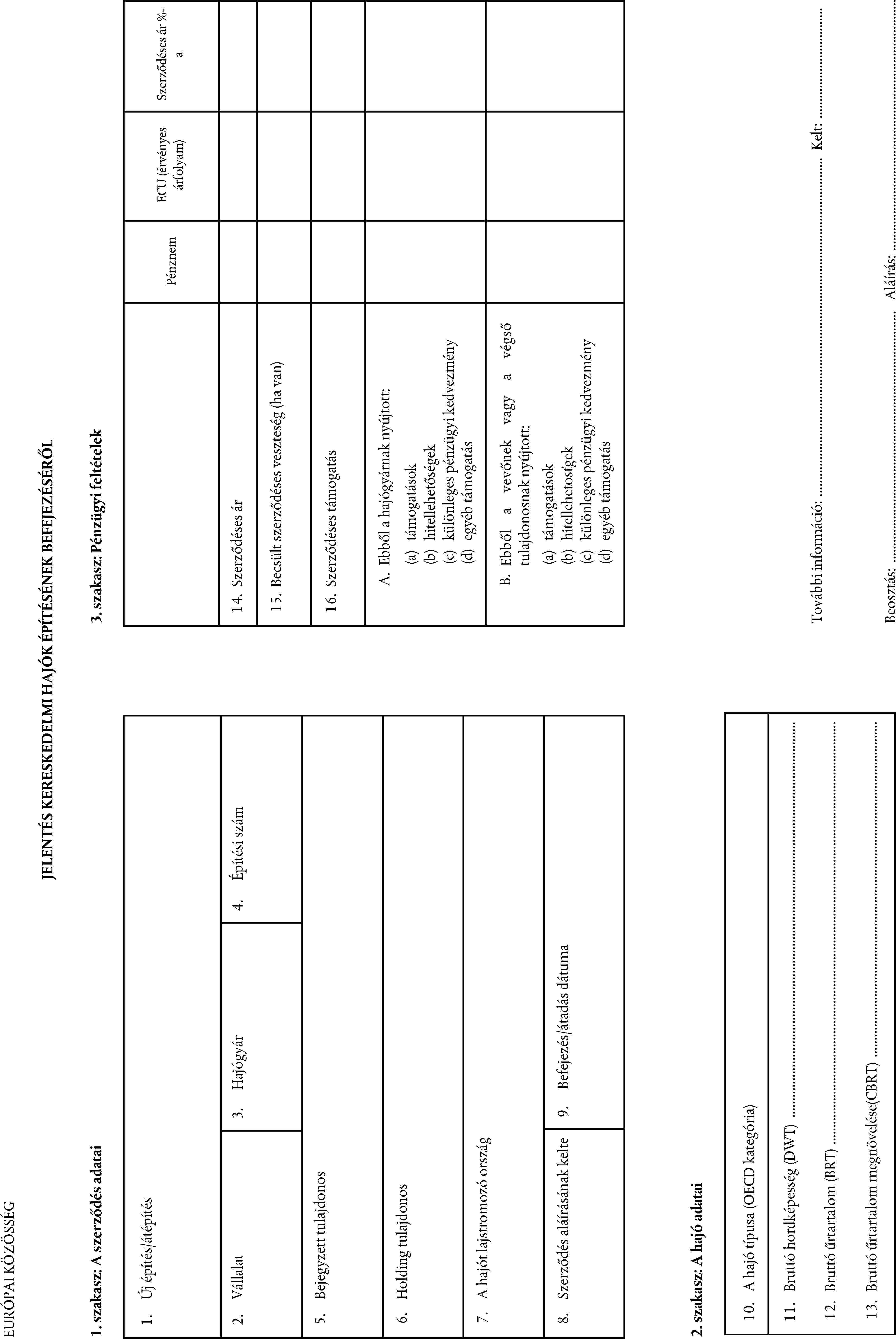 c) jelentés az e rendelet hatálybalépése előtt aláírt minden hajógyártó és -átépítési szerződés befejezéséről a befejezés hónapját követő hónap végéig, a mellékelt 2. jegyzéknek megfelelően;