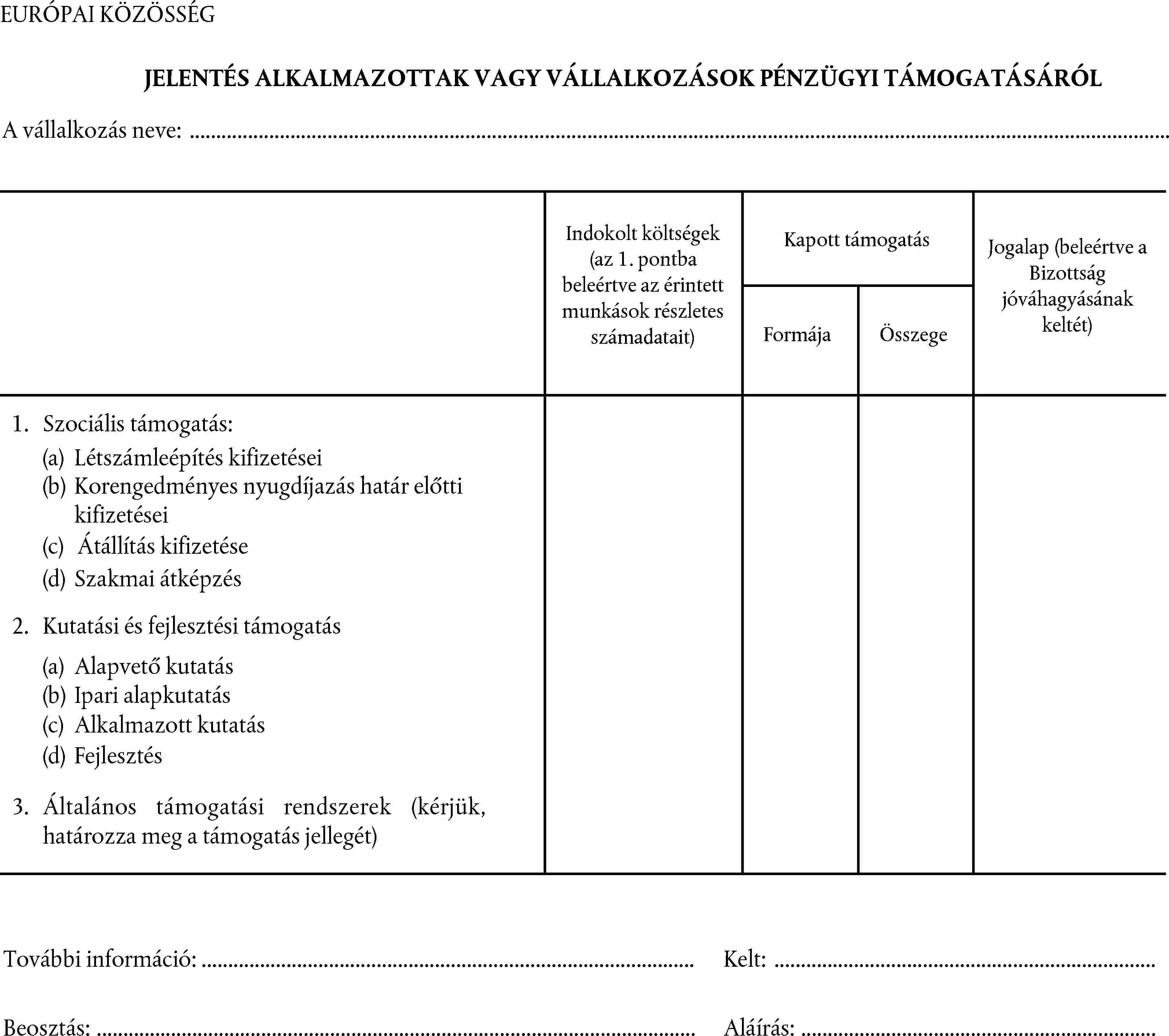 - a törvényben előírt nyugdíjkorhatár előtt leépített, leépítés előtt álló, vagy nyugalmazott munkásoknak nyújtott tanácsadás költségei, beleértve a hajógyárak által a szóban forgó hajógyártól független kisvállalkozások létrehozására irányuló kifizetéseket, amennyiben azok fő tevékenysége nem hajóépítés, -javítás vagy -átépítés,