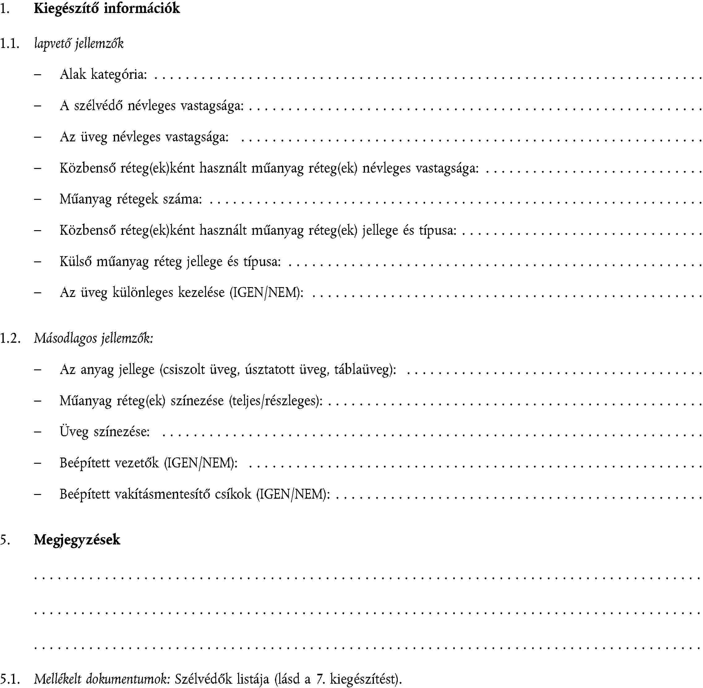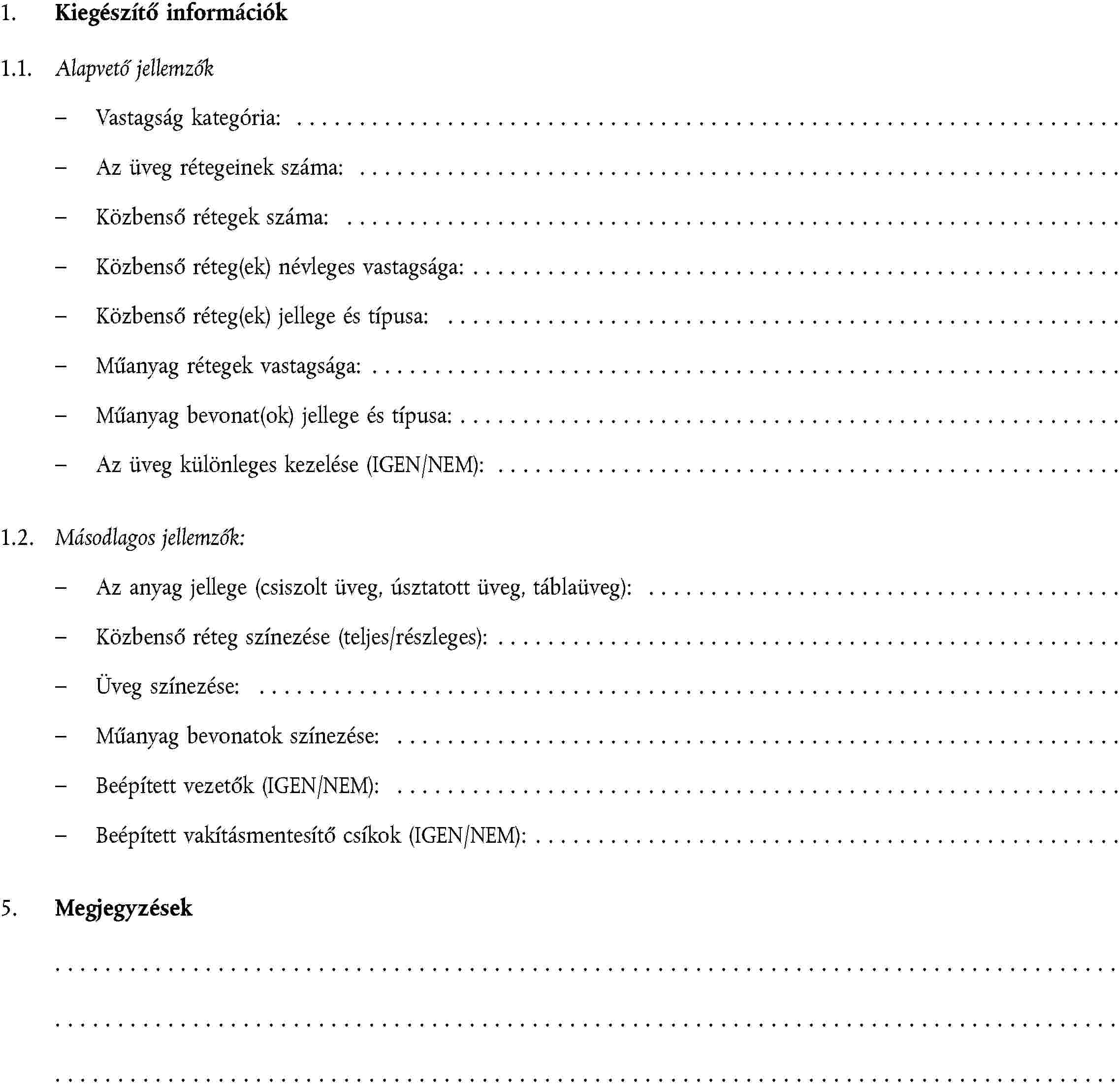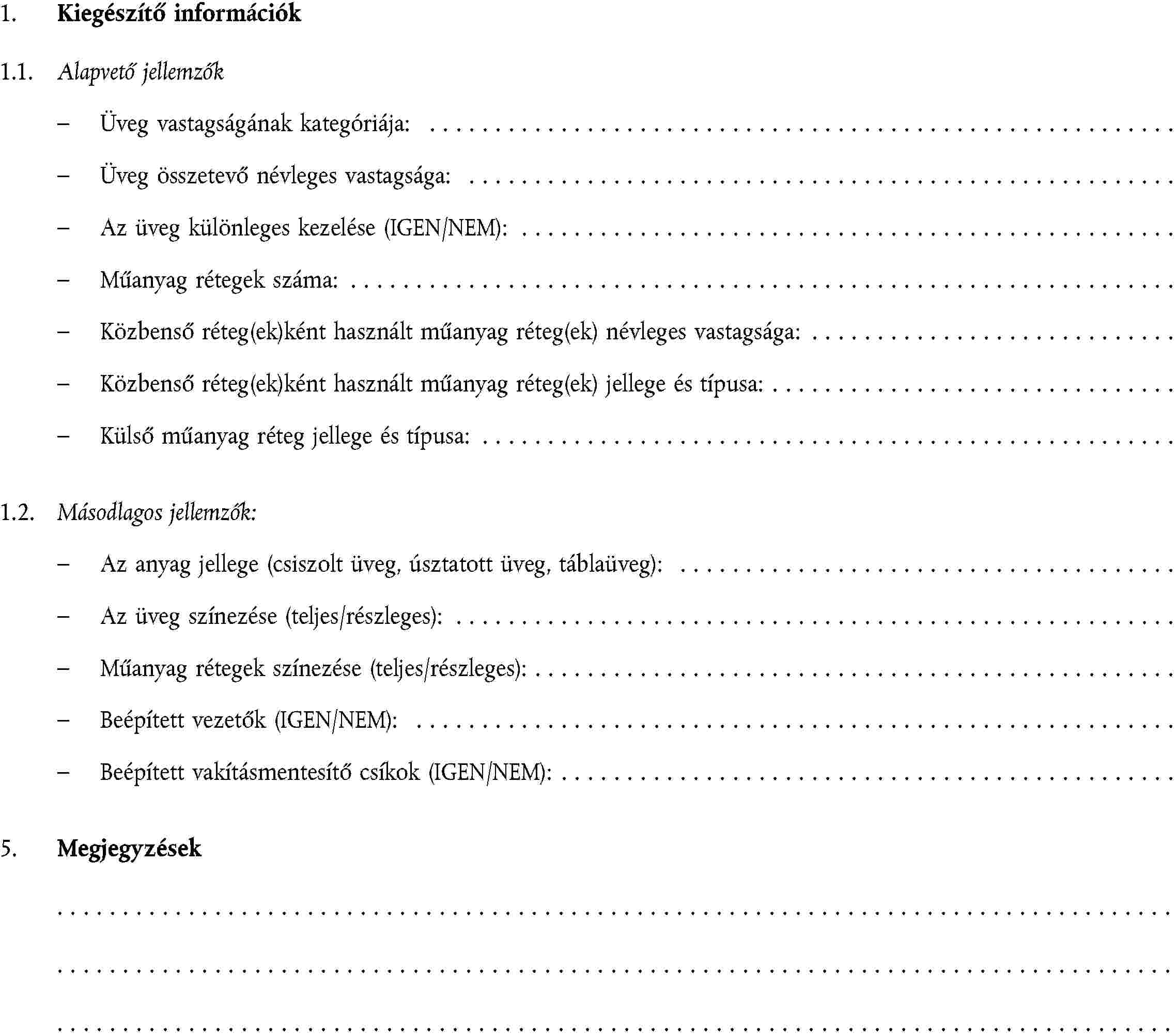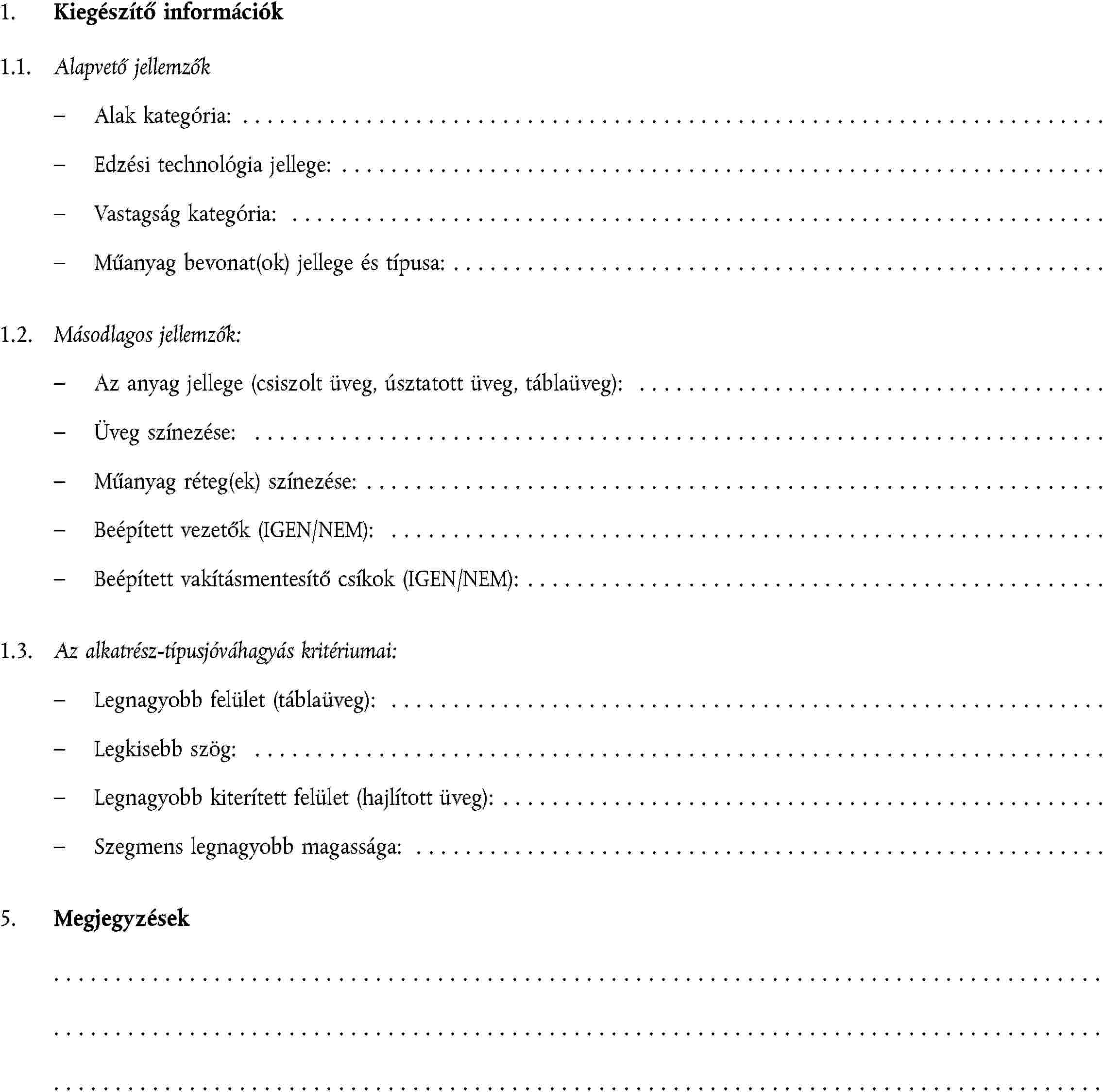 1. függelék: | A biztonsági üvegezés típusára vonatkozó adatközlő lap | |