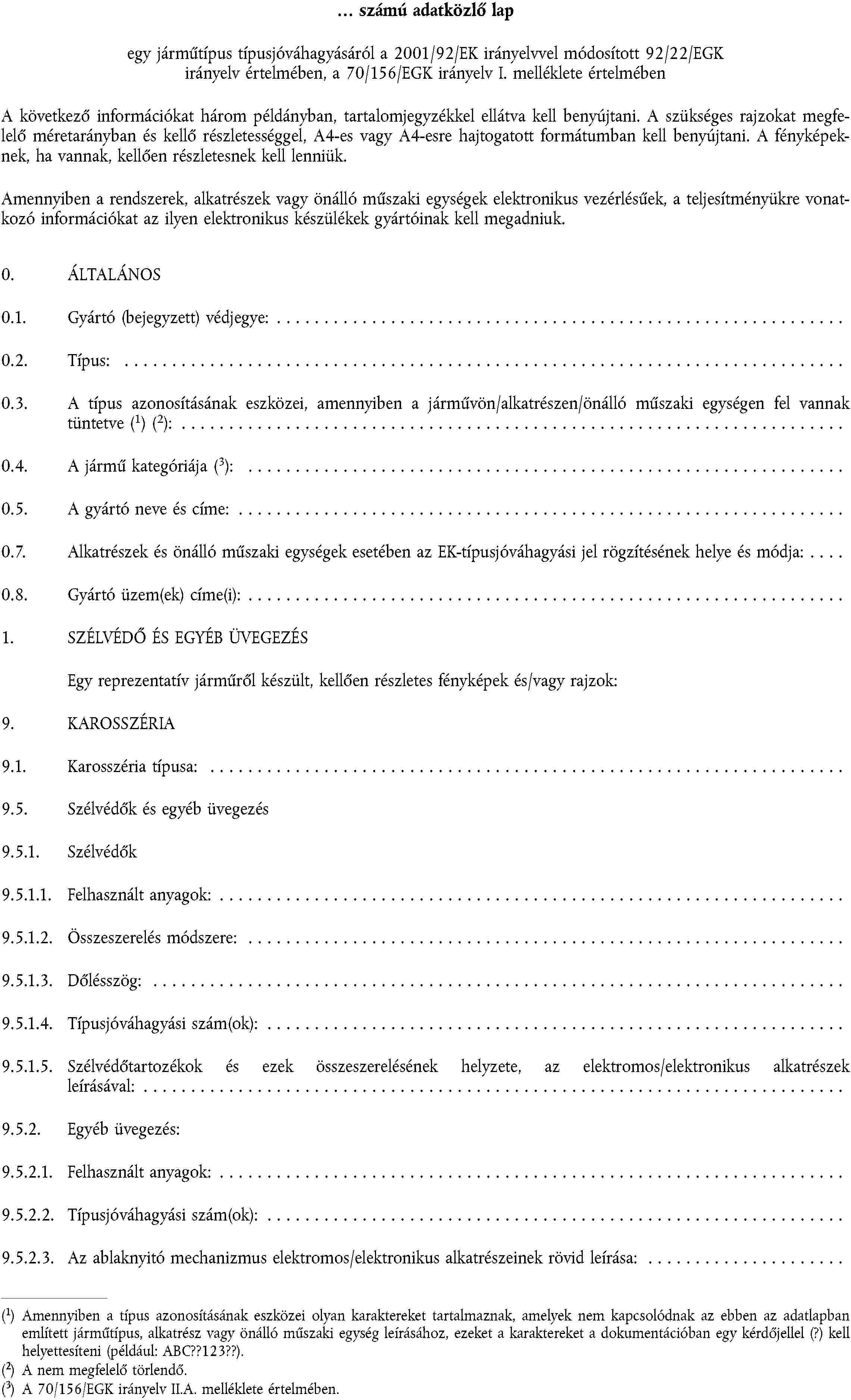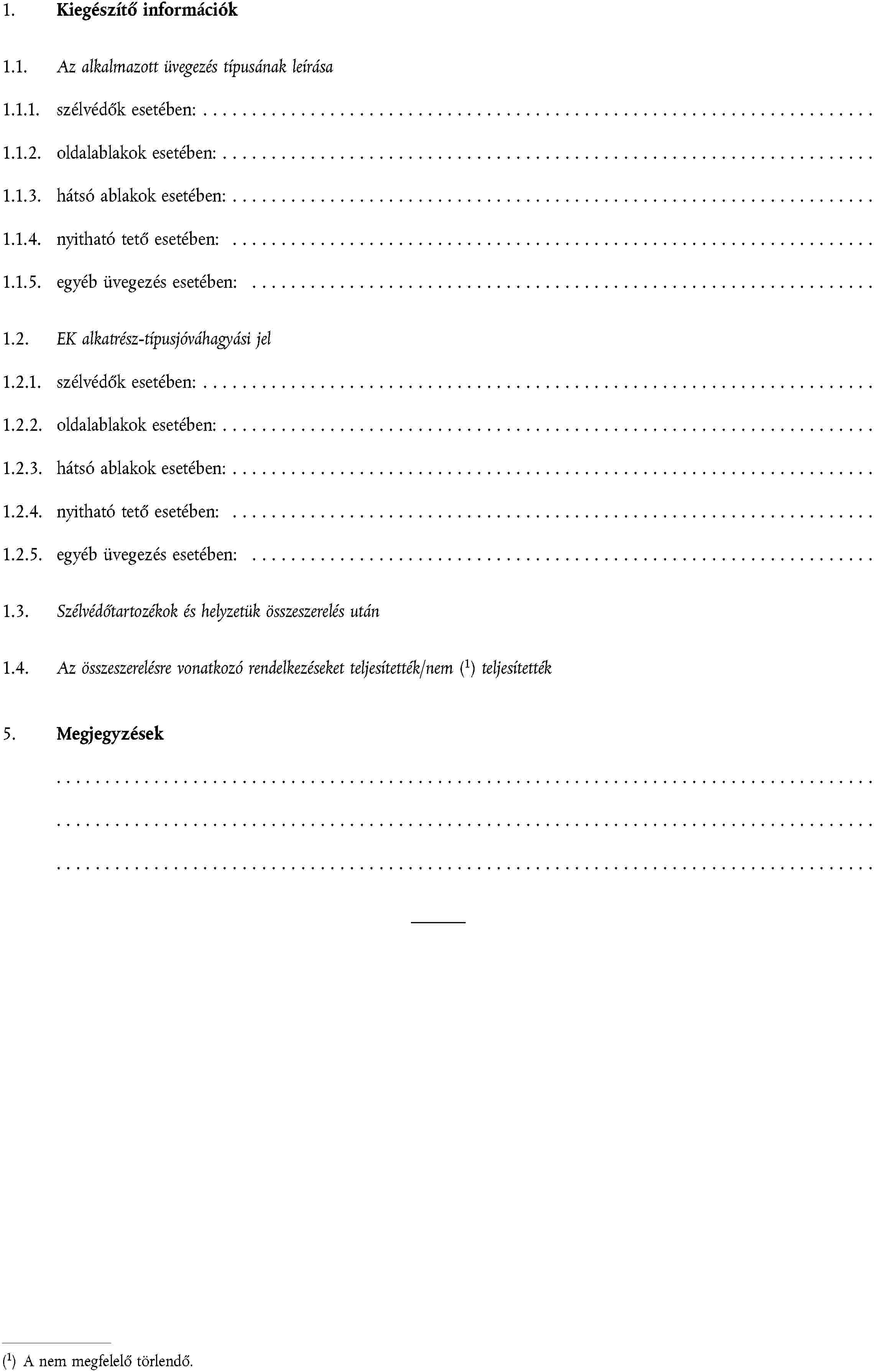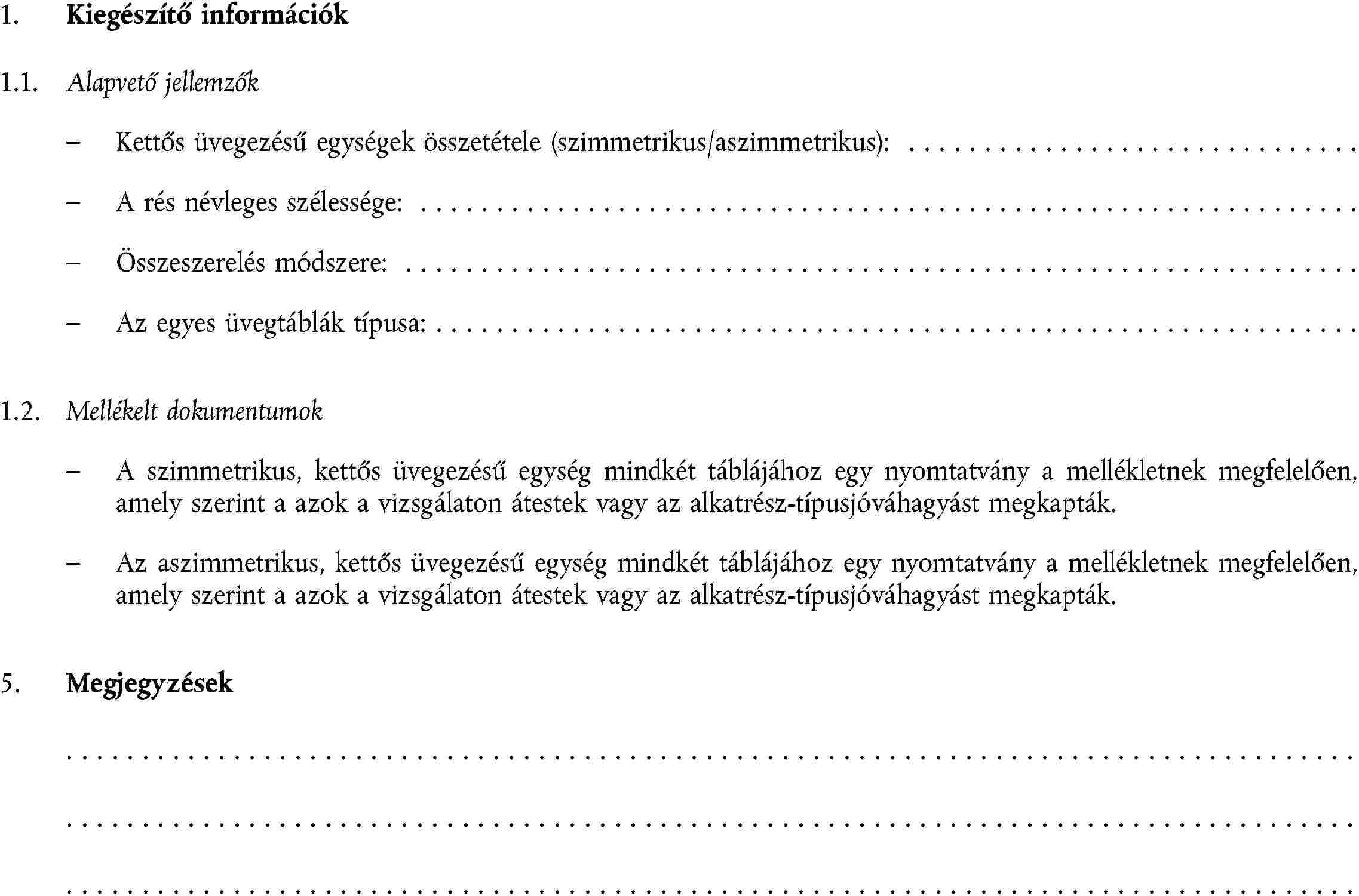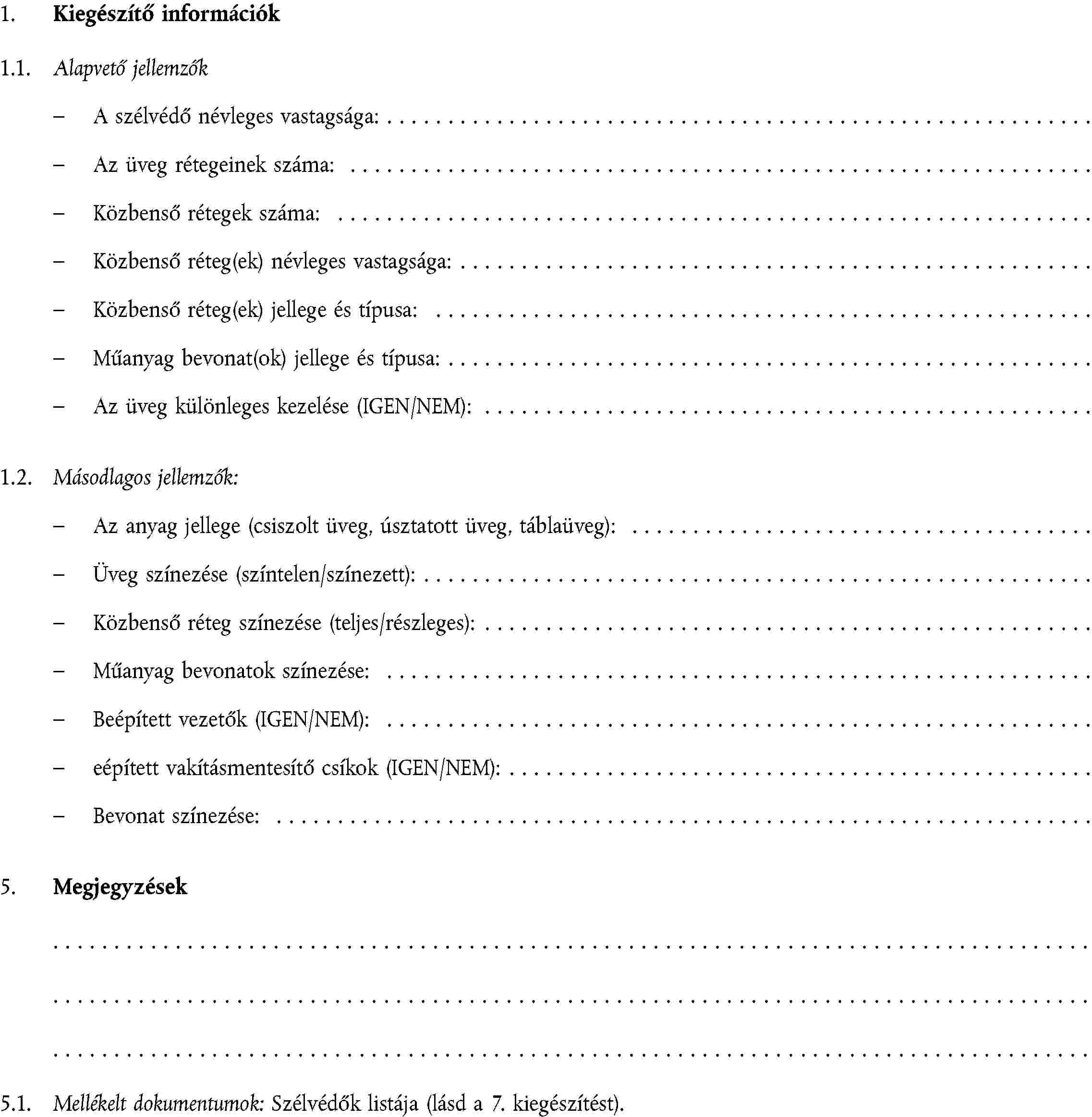 1. függelék: | A biztonsági üvegezés típusára vonatkozó adatközlő lap | |