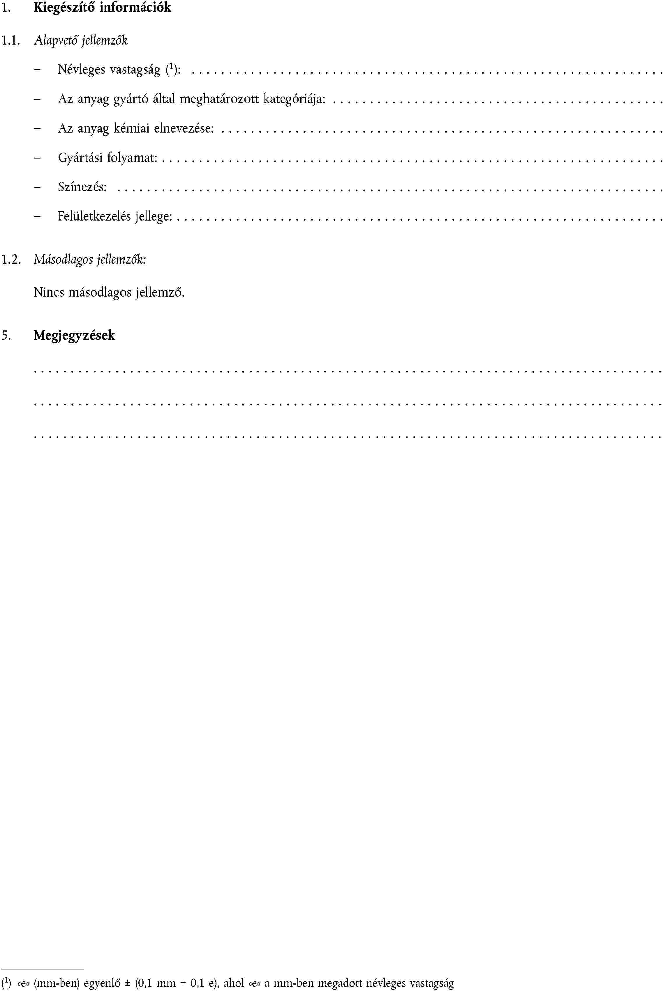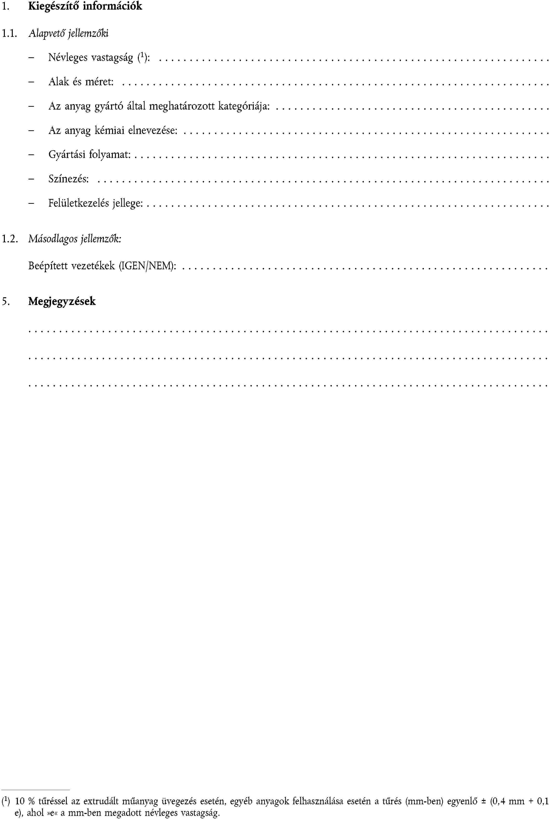 1.2. Az adatlap mintája ennek a mellékletnek az 1. függelékében található.