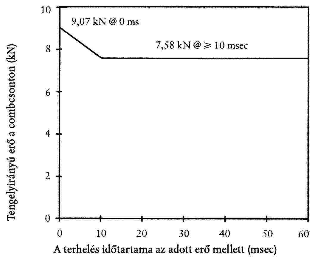 3.4. Teljesítmény-előírás 3.4.1. A cipő sarkára a 3.3. pontnak megfelelően kifejtett 6,7 (± 0,1) m/s sebességű ütközéskor a sípcsontot összenyomó erő (Fz) legfeljebb 3,3 (± 0,5) kN lehet.