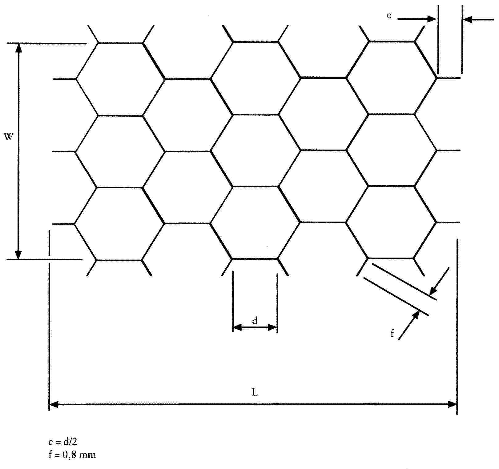 az "L" irányban, a méhsejtszerkezet fala hosszának fele (a szalag irányában) meg kell maradjon a mintadarab mindkét oldalán (lásd. 3. ábra).