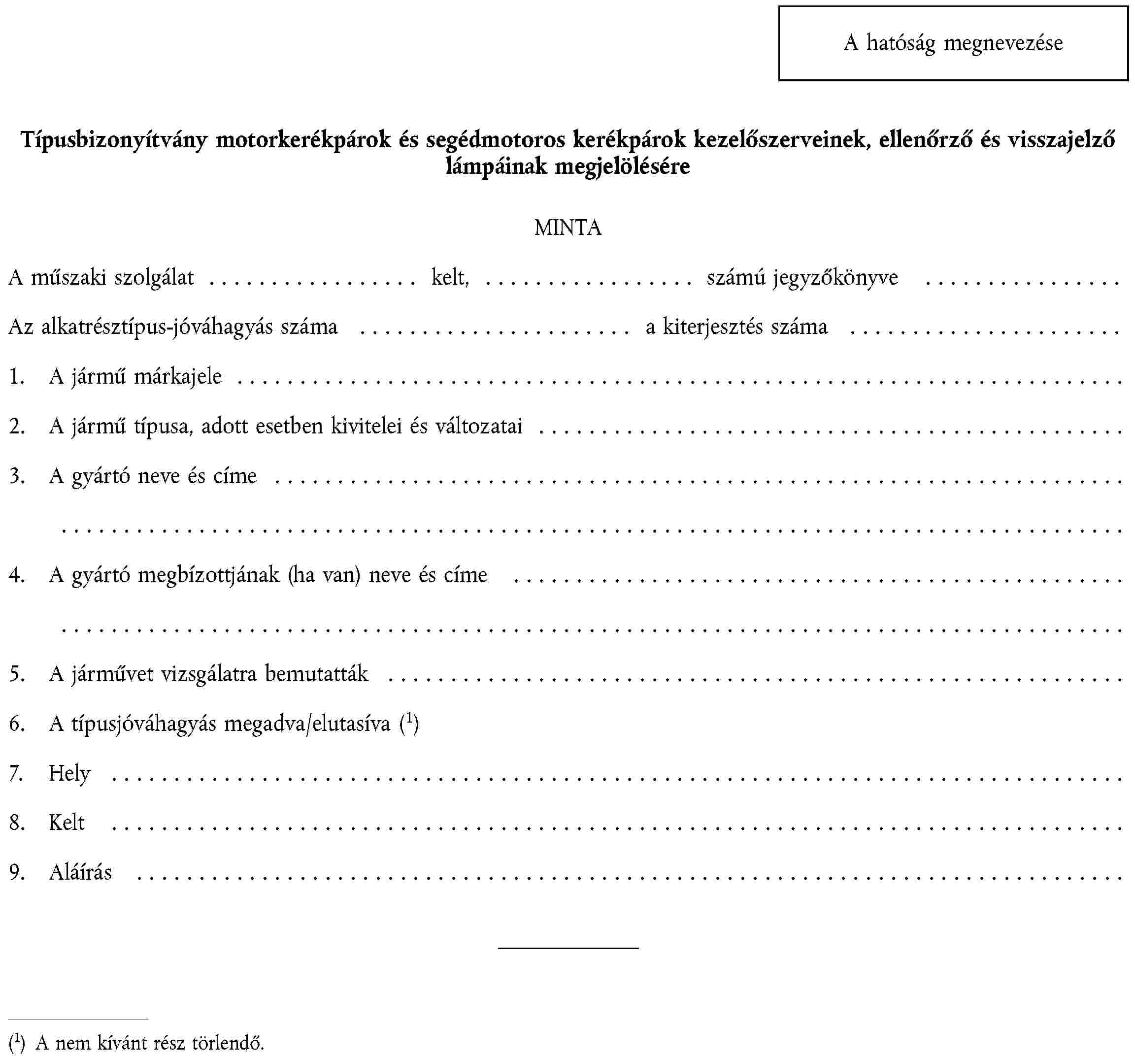 ELŐÍRÁSOK A MOTORKERÉKPÁROK ÉS SEGÉDMOTOROS KERÉKPÁROK KEZELŐSZERVEINEK, ELLENŐRZŐ ÉS VISSZAJELZŐ LÁMPÁINAK JELÖLÉSÉRE VONATKOZÓAN