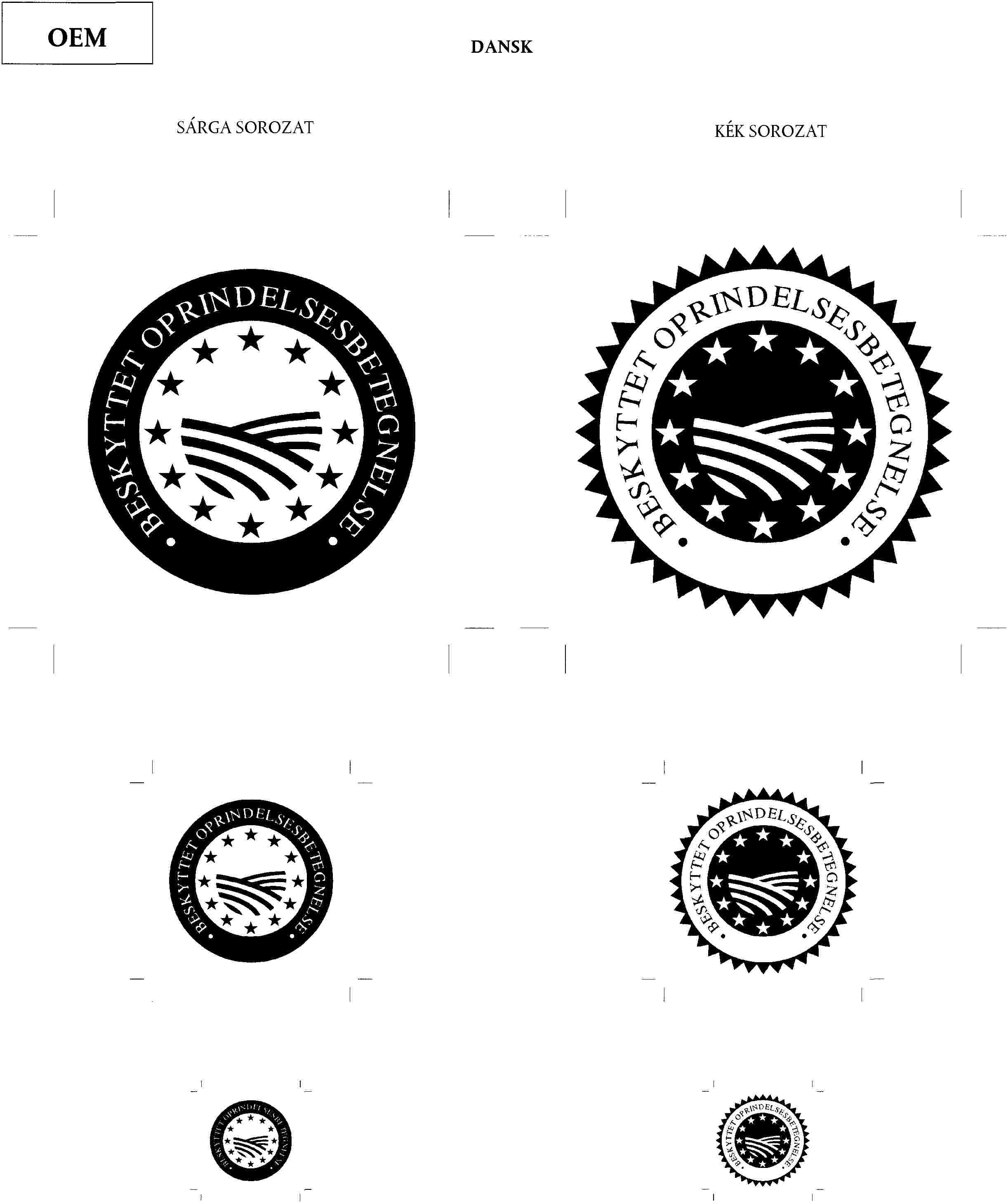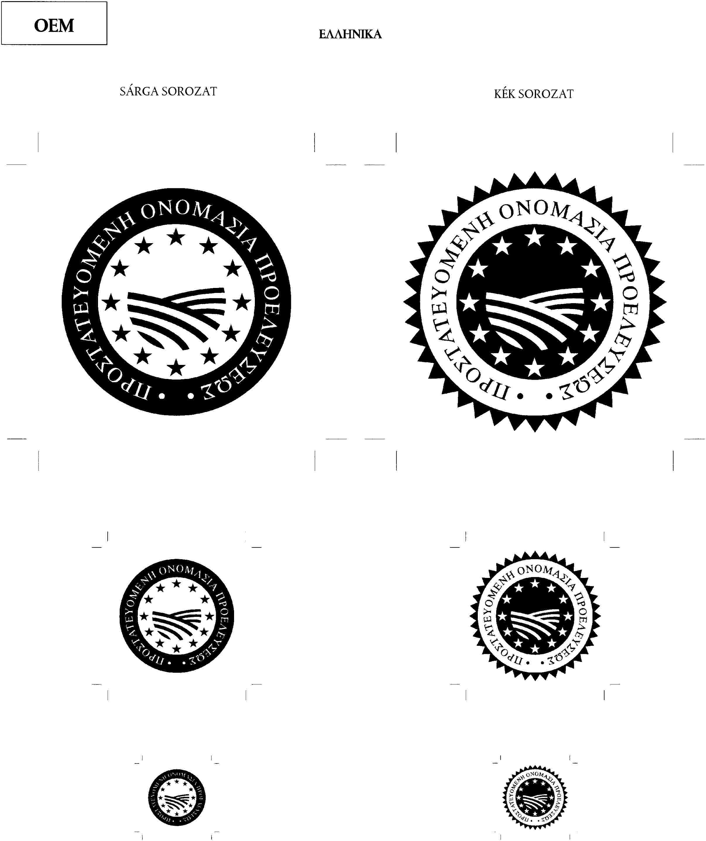 (1) Az oltalom alatt álló eredetmegjelölésként (OEM) vagy oltalom alatt álló földrajzi árujelzőként (OFJ) bejegyzett elnevezések mellett fel lehet tüntetni a 2081/92/EGK rendelet 15. cikkében megállapított eljárásnak megfelelően meghatározandó közösségi jelzést.