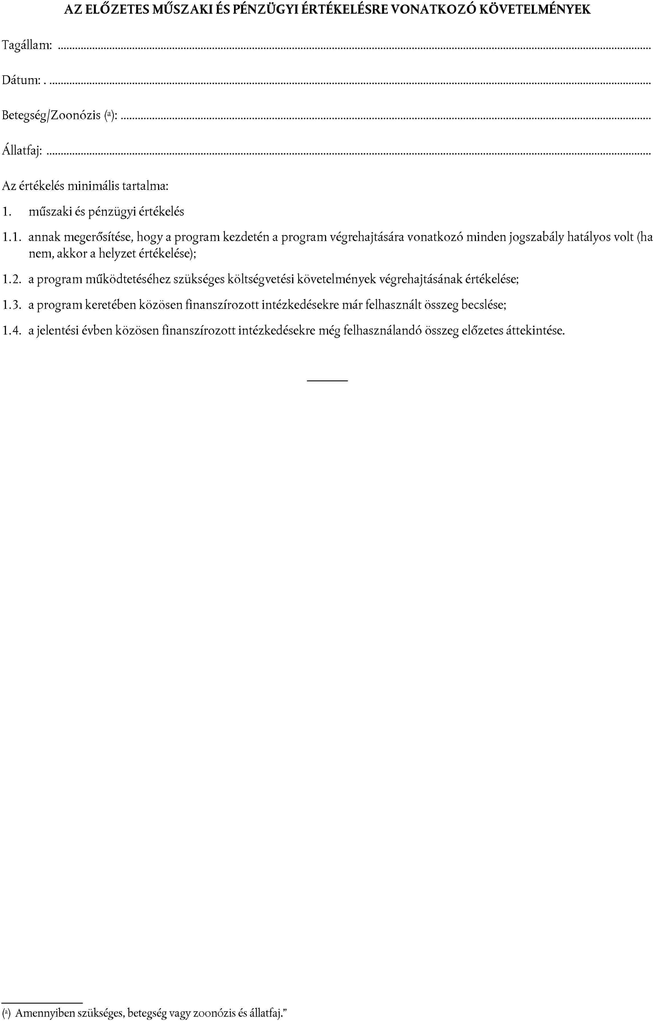 A közös finanszírozásra jóváhagyott program előzetes műszaki és pénzügyi értékelése tartalmazza legalább az I. mellékletben meghatározott információkat.